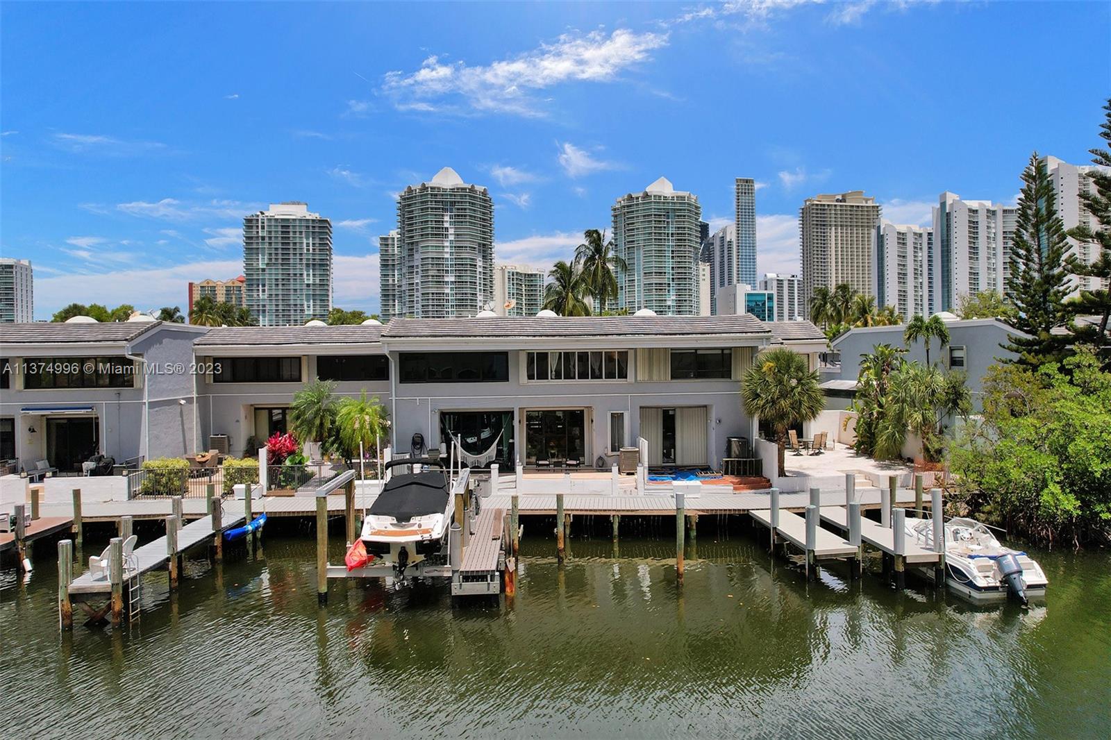 Please See Broker's Remarks: Exceptional Location & Value: Owner relocating overseas... after owning this home for the past 32 years... must part with this Clean, Well Maintained Waterfront Town Home. Featuring: freshly painted 3 bedrooms, 2 1/2 baths plus garage (2265') in a private gated community "just across the street from the Ocean" located on the Intracoastal Waterways at 161st Street & Collins Ave... across from the popular "Turnberry Ocean Colony" Brand new Kitchen with new/newer appliances. Community recently replaced the roofs, tiled first floor & newly installed wood 2nd floor. High end Furniture/Furnishings are negotiable, as are certain light fixtures. Community boasts: tennis, docks, pools, exercise, sauna, + with only 180 total residences. Best Schools & Parks !