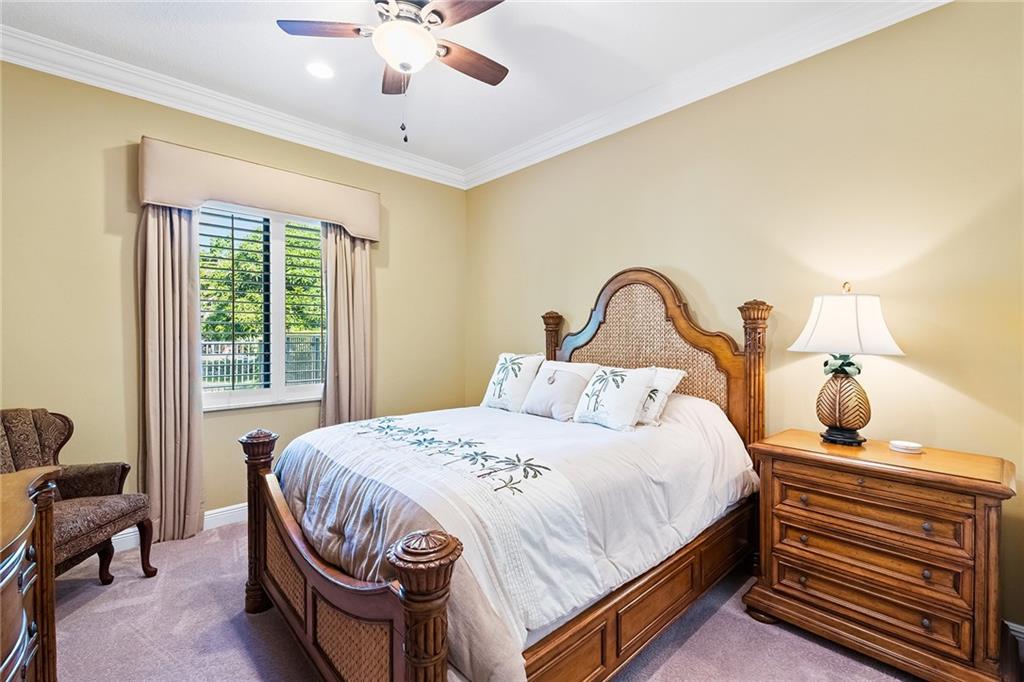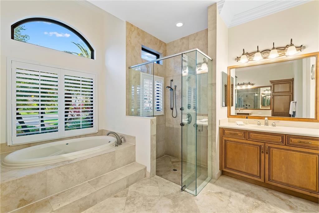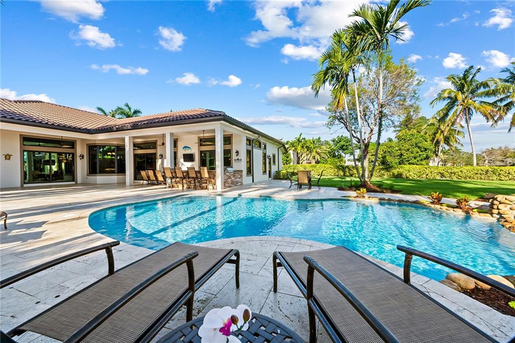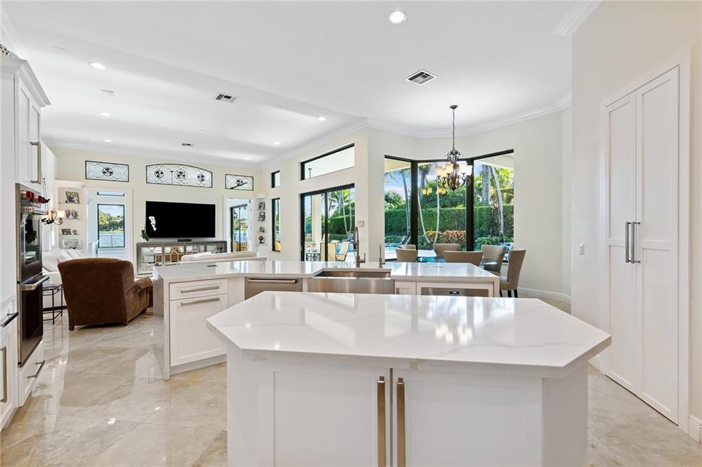 PRISTINE estate home on a premier lot beautifully captures the sparkling long lake views!! Upon entering this rarely available single-story, expanded 6 bdrm /4.5 bath residence, one is greeted w/soaring ceilings thruout living areas, flooding the home w/natural sunlight & spectacular vistas! The newly renovated kitchen is bright & inviting w/white quartz counters, top-tier Sub-Zero & Wolf appliances w/walk in pantry. Casual dining alcove & joyful family room w/party room extension overlooks the glistening free-form htd pool w/waterfall spa & sensational summer kitchen. Master bdrm is a sumptuous retreat! High-impact windows/doors, polished travertine in living areas. A new roof, full home generator,3 bay garage, EV charger, water softener system & gorgeous landscaping enhance this home.