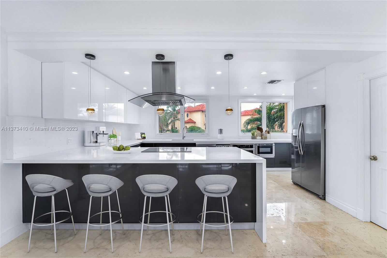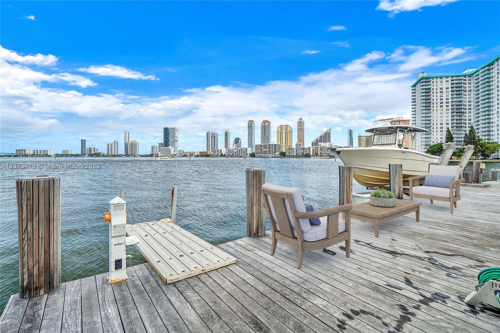 BOATERS PARADISE. Breathtaking million-dollar views day and night. Dock and private pool. Stunning 3 bedroom + den/3.5-bath bayfront townhouse with private elevator, situated in the gated community of Eastern Shores. Boasting 35 feet of private dockage, this property offers unparalleled access to the water. The location is unbeatable. Minutes to Haulover Inlet, less than 2 miles to the beach, a bridge away from Sunny Isles, and only minutes away from the best restaurants and shopping in Aventura and Bal Harbor. The property also offers a 2-car garage and 2 additional parking spaces up front. Unique opportunity to own the best views of the bay and stunning nighttime vistas of the Sunny Isles skyline, this townhouse offers a unique opportunity to experience the ultimate waterfront living.