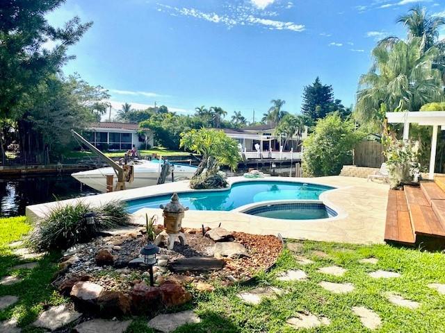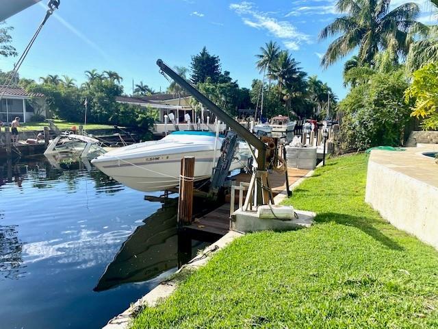 Step into the Tropical Paradise of SW Ft Lauderdale known as LAUDERDALE ISLES. This waterfront 3 bedroom 2 Bathroom Tri-Level home comes with circular driveway, Pool and patio deck over looking Ocean Access canal with boat dock. The covered patio area features a built in Barbeque that makes this home superb for outdoor parties and entertaining. The wood deck beside the below ground pool is perfect for sunbathing and relaxing in the S Florida Sunshine. Boat Owners will love the NO FIXED BRIDGES deep water and their own private dock behind the house just yards from the New River. Width of property on canal is ~65'. Existing Wood Dock is ~35'. EZ access to 595/95/Turnpike, 1 car garage, Tile Roof 2006, HW Heater 2022 A/C is 2016 Call to schedule a Showing today. This home wont last long.