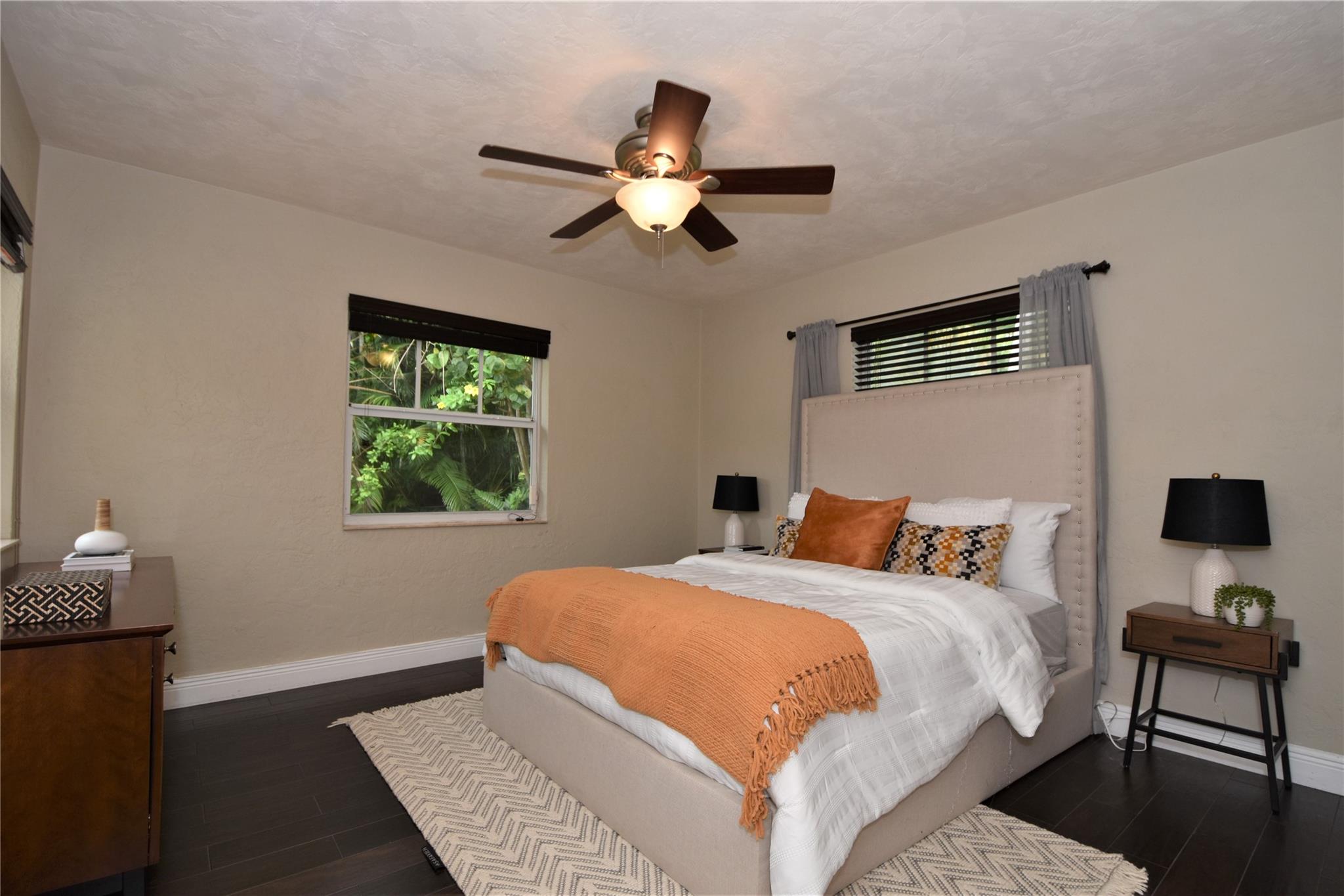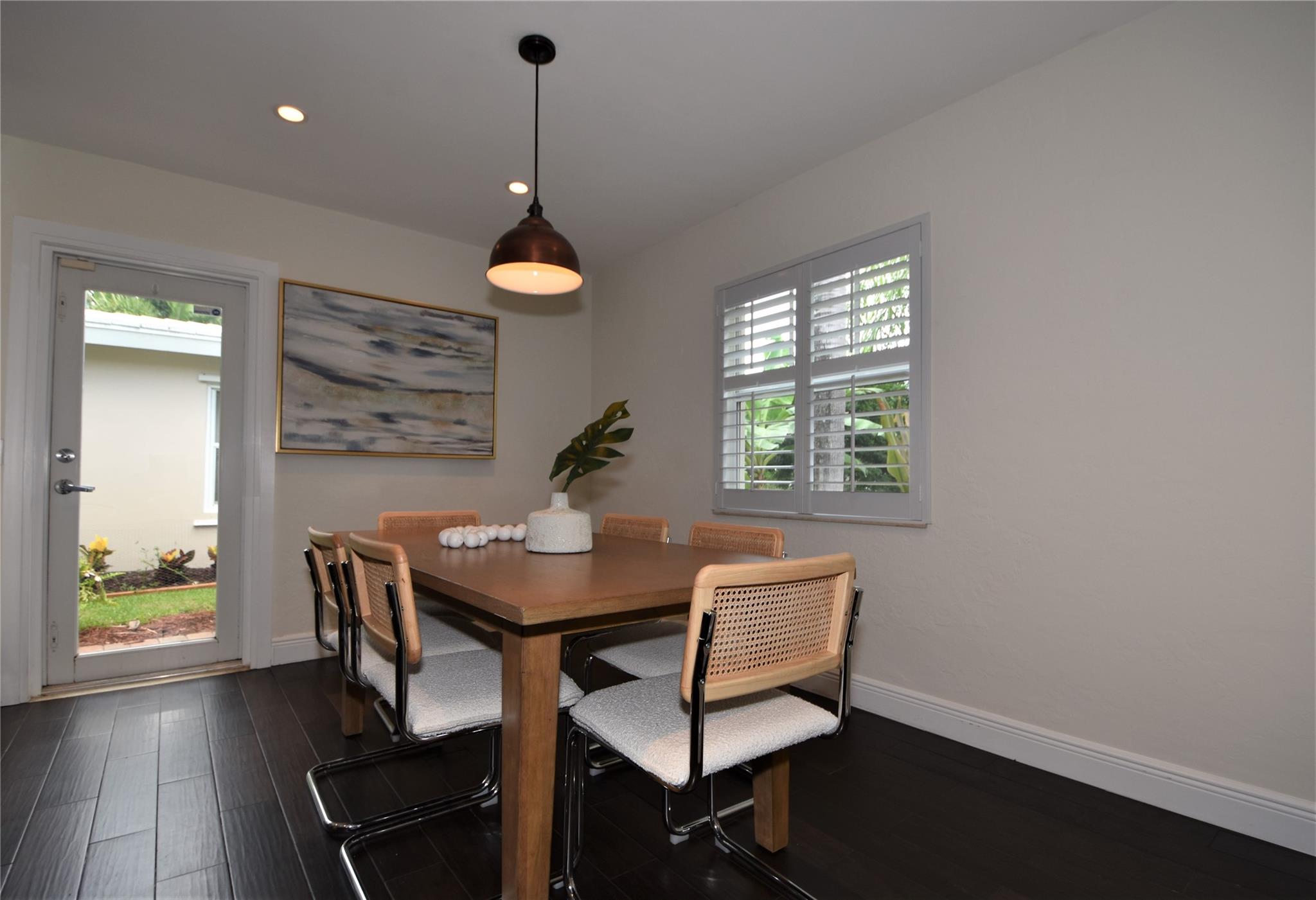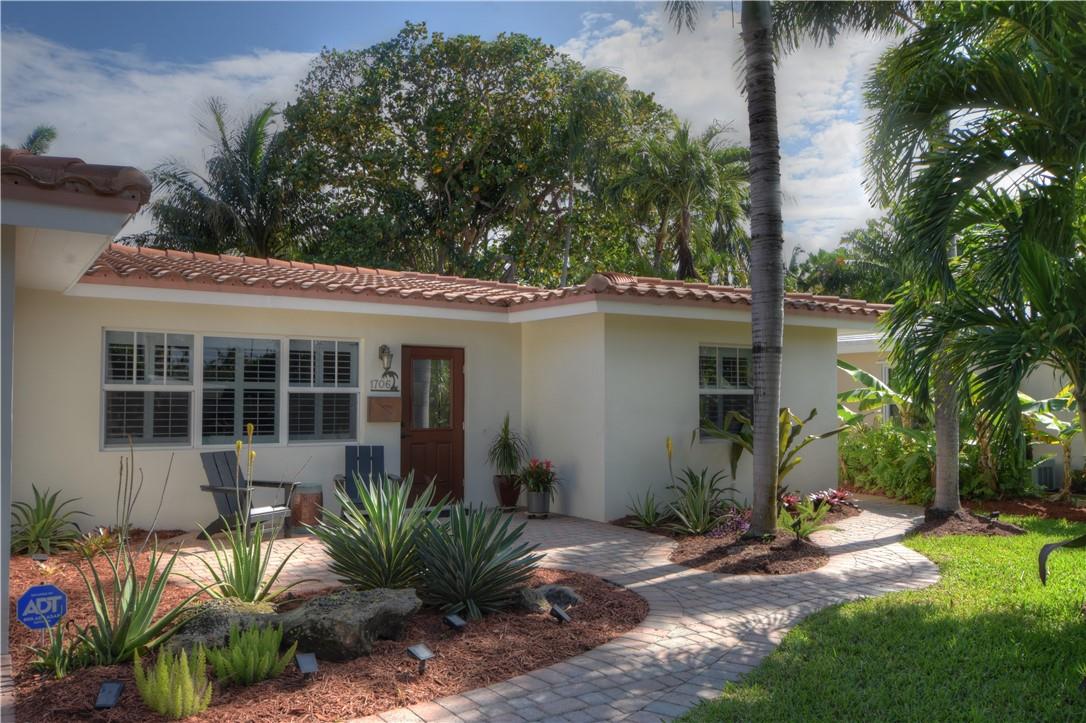This updated home is located on a quiet, tree-lined street in beautiful Poinsettia Heights just blocks from the action of Wilton Manors, fabulous restaurants and aquatic fun on the river. Both the interior & exterior of the home is tastefully designed! This home features an open floor plan w/ a spacious kitchen overlooking the dining and living area w/ a decorative vintage fireplace. The kitchen features Martha Stewart cabinets, stainless steel appliances and quartz countertops. This home is nestled among fruit & native Florida trees, professionally landscaped & beautifully lit at night. The primary bedroom has French doors to a wonderful screened patio in the lush tropical backyard. The home also features a tankless water heater, newer appliances, & HVAC system. Pool plans are available.