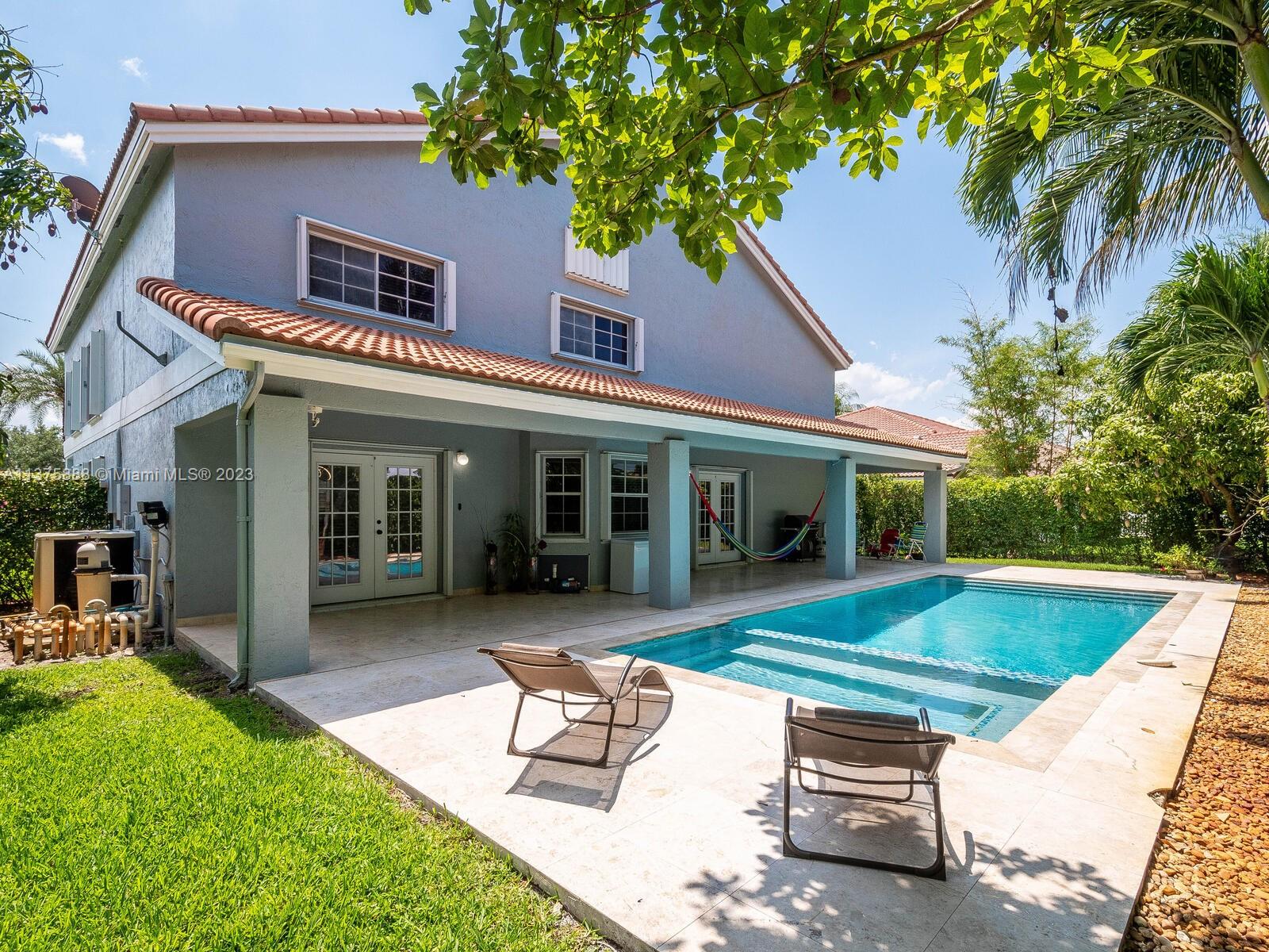 Single family 4br/3ba in Pembroke Pines, FL. 20’ high ceilings. New wood laminated floors, Remodeled Kitchen with majestic quartz island and new SS Appliances. The master bedroom is upstairs, featuring a very spacious totally remodeled bath with both shower and tub, it also has a cozy lounge/Bar area with new cabinets and quartz countertop with access to an inside balcony overlooking the foyer. Upstairs also twin bedrooms which share a full bathroom, with a double vanity and a separate toilet area. 3 car garage with high quality cabinets all around it, with quartz countertops an plenty of space for storage. The laundry area has plenty of cabinets including quartz countertop. Newer Roof with concrete tile. Accordion Hurricane Shutters. Patio with newer pool and many mango and avocado tree