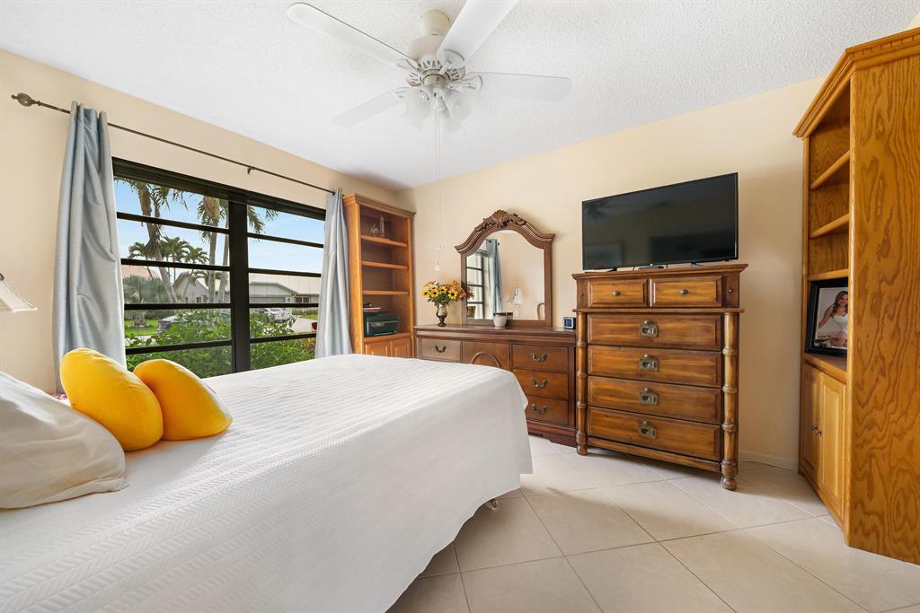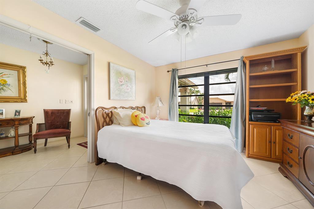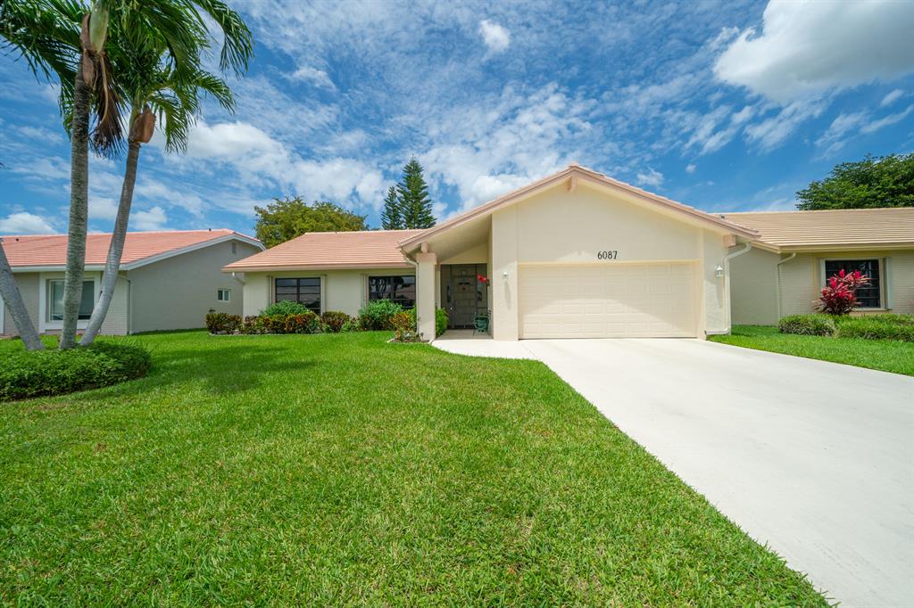 Welcome to this secluded highly desired 55 + community in Boca Del Mar, Camino Woods II with 49 single family homes. Vaulted Ceilings***Well maintained 3 bedroom house with 2 baths, open floor plan overlooking beautiful and relaxing pond. Neutral tiles throughout the living areas installed on diagonal. Accordion shutters, large kitchen with a lovely eat in dinette. Separate laundry room with a sink. Plenty of closet space and cabinets. Air conditioner is a Carrier 2017 with a 2 stage compressor w/variable speed indoor motor*2003 ROOF*washer/dryer/stove 2015. House shows extremely clean and ready for new owner . HOA is $ 335 P/ month includes roof cleaning, exterior painting, lawn care, sprinkler and cable. Some furniture is available for sale. Close to Boca town center/restaurants