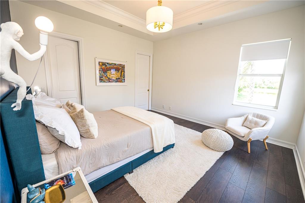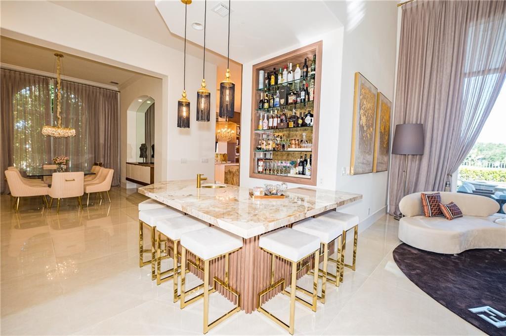 NEW ROOF AND POOL HEATER INSTALLED IN 2022! Introducing this stunning estate in The Oaks. This beautiful lake front corner home boasts 5 bedrooms, 6 and 1/2 baths, home office, loft, extra large circular driveway, & 3 car garage. Steps away from the clubhouse this home was recently completely renovated with professional designer appointed custom details throughout including high end decorative stone finish isles and porcelain flooring, custom decorative moldings, fireplace, custom bar, chef inspired gourmet kitchen and architectural details throughout. Home office with custom built-ins and an oversized loft. Tropical landscaping enhances the unobstructed lake views and the backyard area is perfect for entertaining with its pool, spa and expansive patio.