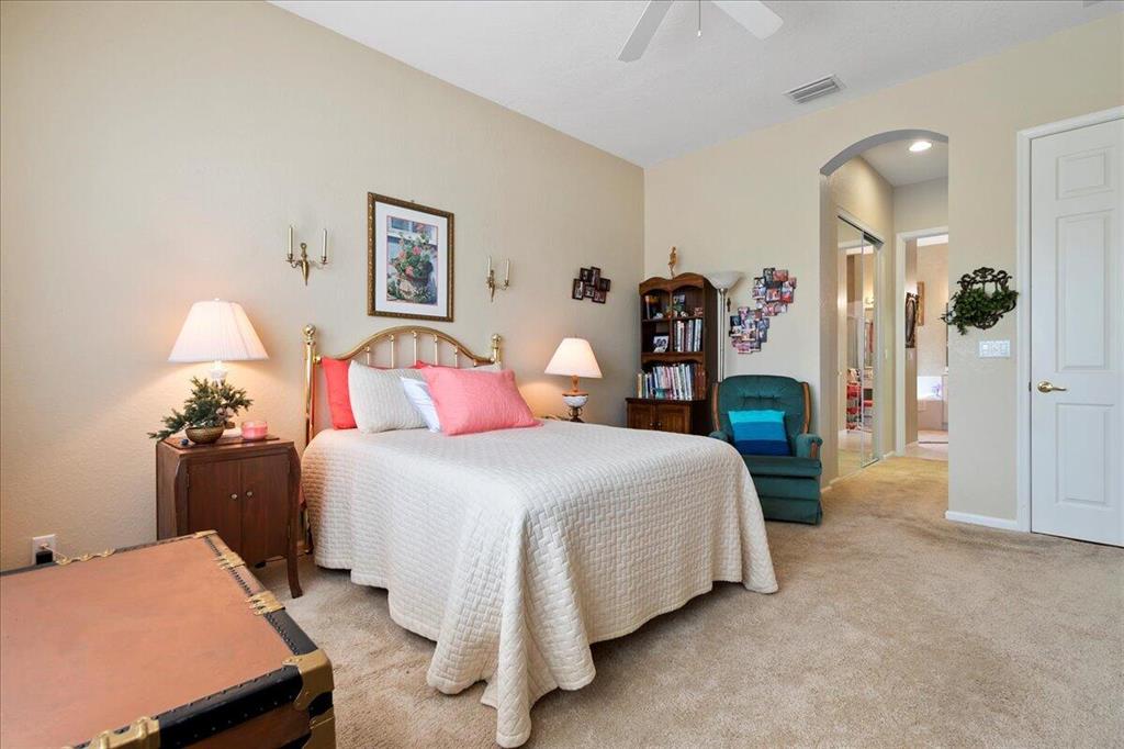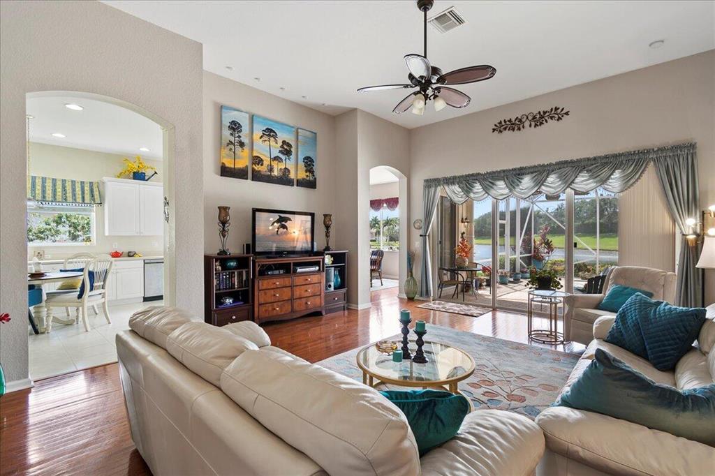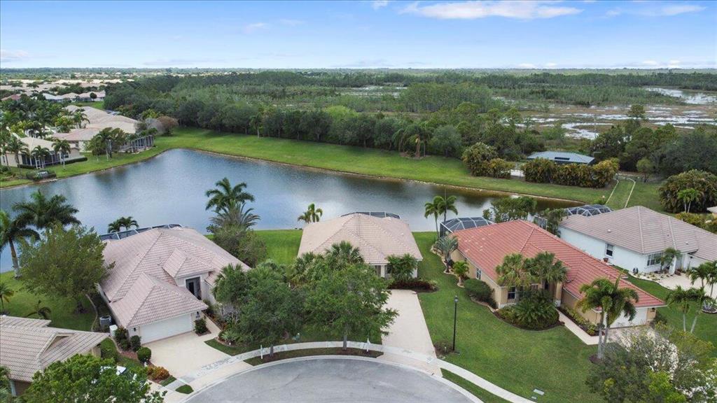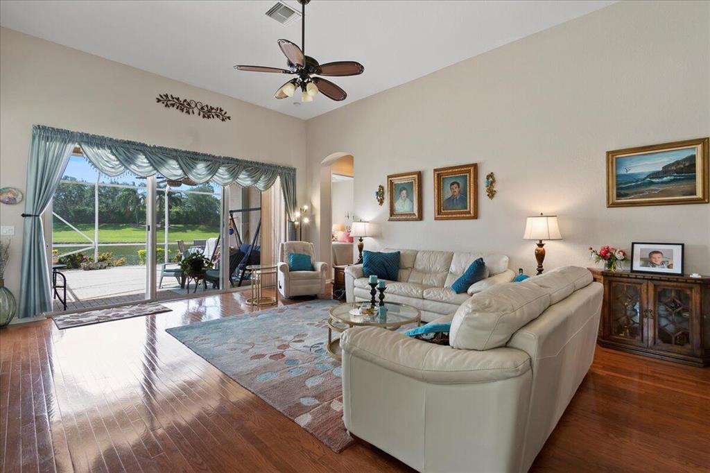 Paradise awaits ! Nestled on a quiet cul-de-sac, this charming home offers a breathtaking and private view of the lake. Insideyou'll be greeted by lovely hardwood floors that flow throughout the living room, dining room, and den.The kitchen features a pantry and a cozy dining area, and a formal dining room. The spacious master suite has a view of the lake & boasts his and her walk-in closets, dual sinks, and a luxurious garden tub. The office could easily be turned into a guest room by adding a small closet. There is also a utility room with a sink, washer, and dryer, and a garage with built-in cabinets and a workbench, providing ample storage for your needs. The screened back porch is the perfect place to relax and enjoy Florida living at it's finest . Watch he sunset from your backyard.