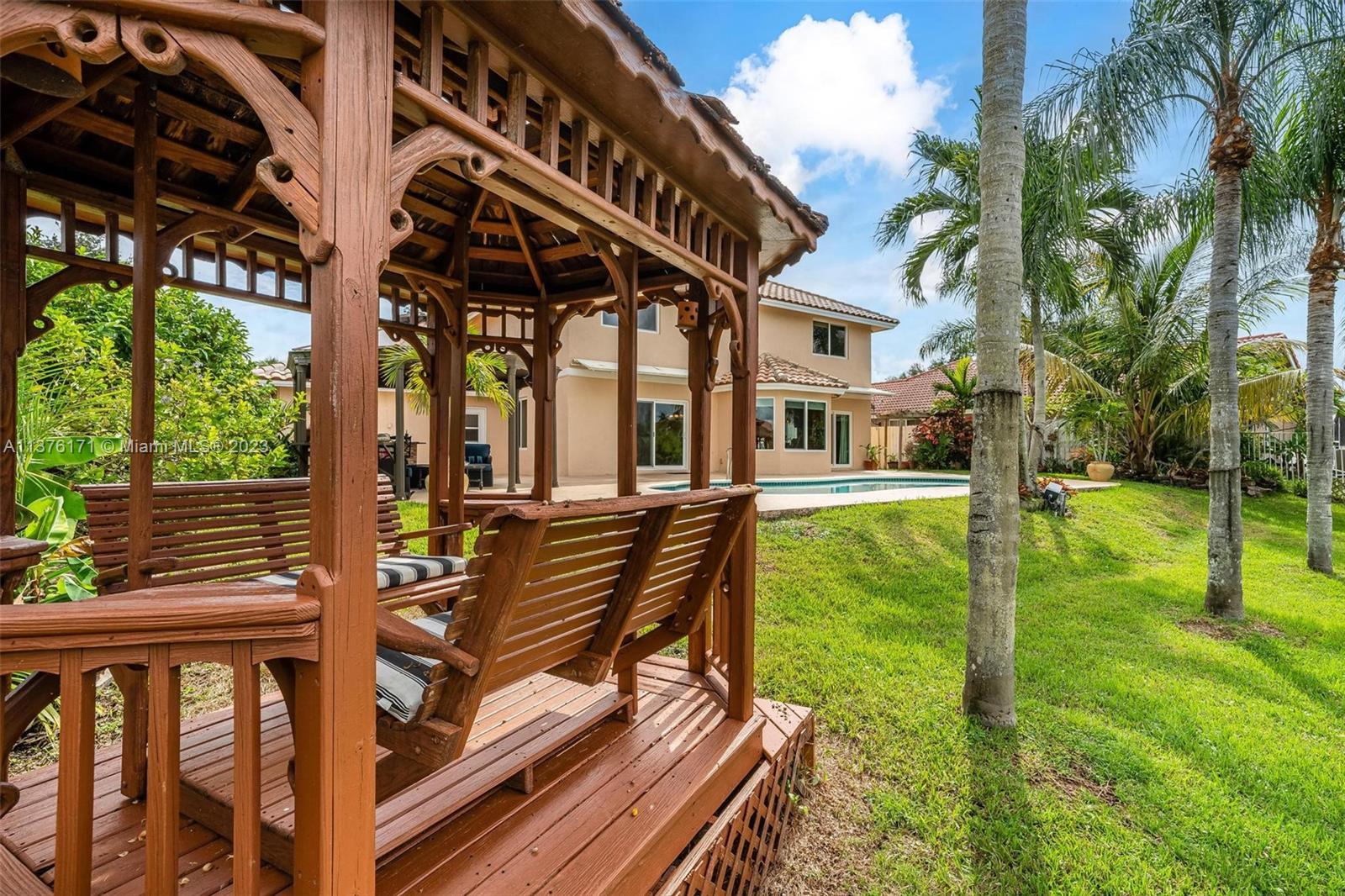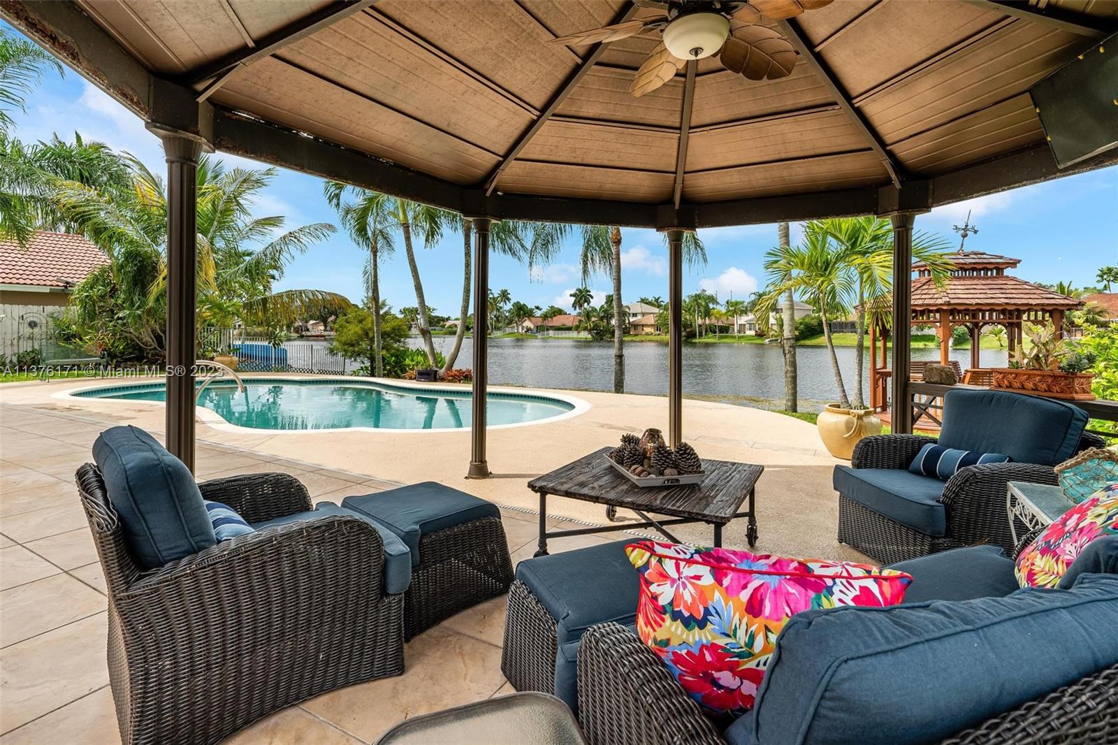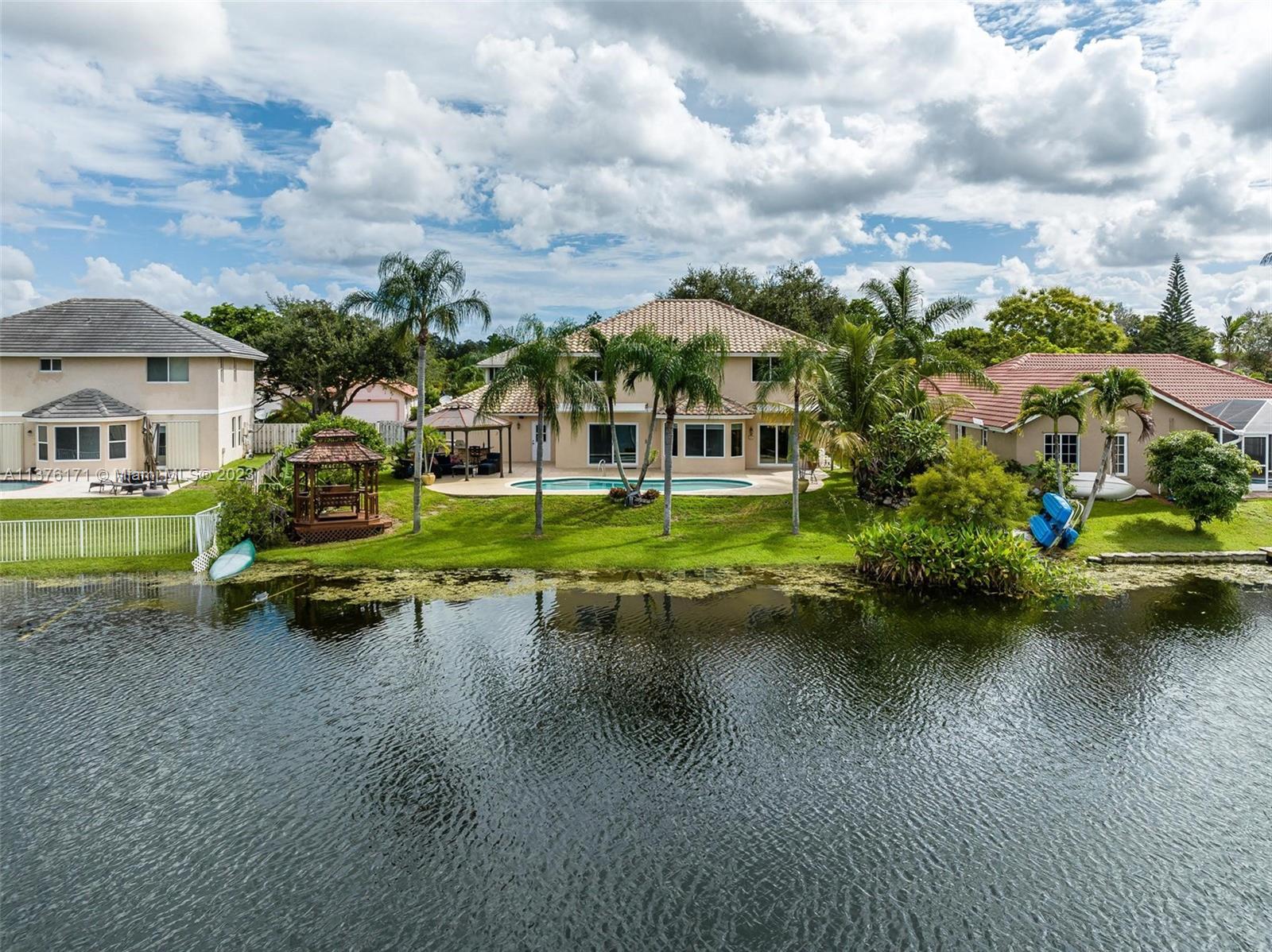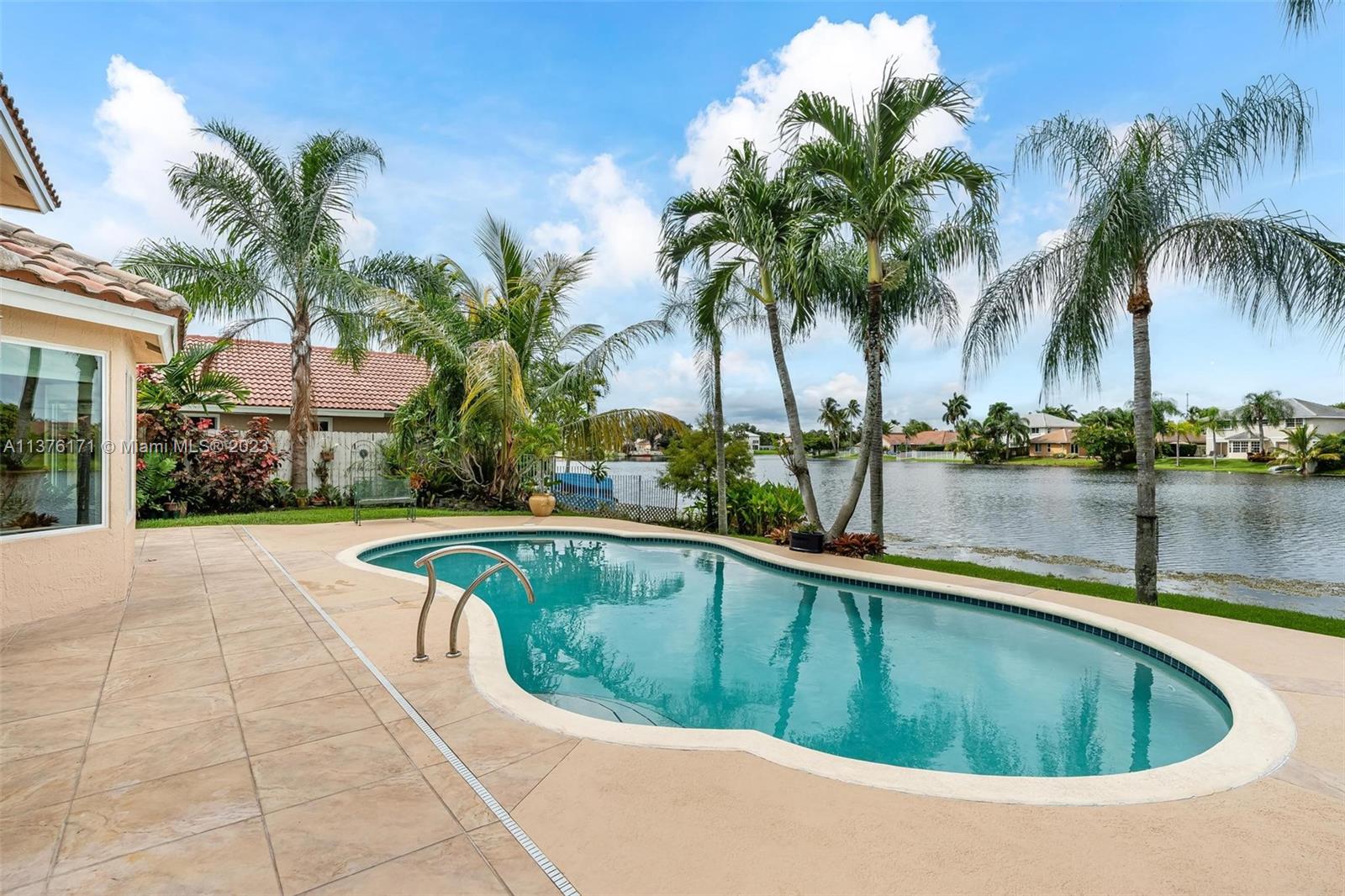 One of the prettiest views in Shenandoah! Enjoy breathtaking sunset & tropical breezes from the wide lake. Canoe or fish from your own yard. Sparkling pool, big patio & built in BBQ to splash & entertain. Big side yard has room for your boat or garden. Step inside to this large Harrisburg model complete with 4 bedrooms, 2.5 baths. Kitchen has been upgraded with wood cabinets, granite & stainless package and opens to the substantial family room. Bedrooms are large. Handy interior laundry room. Home is light & bright from the many high grade impact windows & doors. Rated garage door & 2008 tile roof for deep insurance discounts. Walk to Shenandoah Park with play area & splash pad. Walking path along parkway. Friendly, established development close to highways, shopping & TERRIFIC schools.