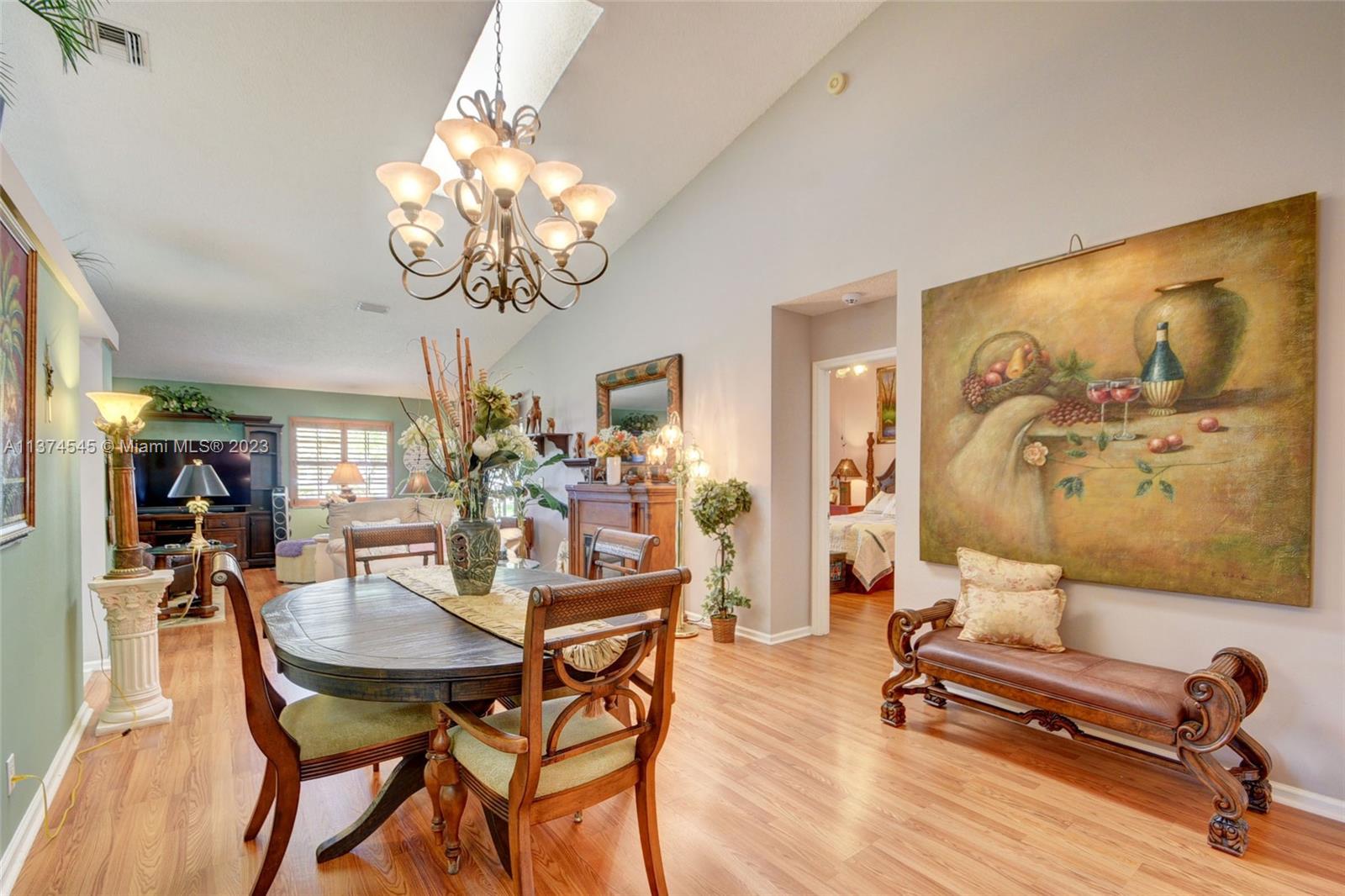Just Gotta see it! Granada Design. This model rarely comes on the market & does sell fast. 2/2 SF w/2 car garage, Split Bedrooms both have renovated showers. has huge attic space w/ pull down ladder & flooring for extra storage. Features extra room for office or den. Extra living area accesses thru glass door to patio. Also, separate patio with Grill. Impact Windows & doors. Outside house freshly painted, Tile floors thru out. Volume ceilings thru out, sky lights, oversized kitchen, new appliances, granite counter tops & back splash. Added Filtration system under sink. AC about 5 yr. New HWH.