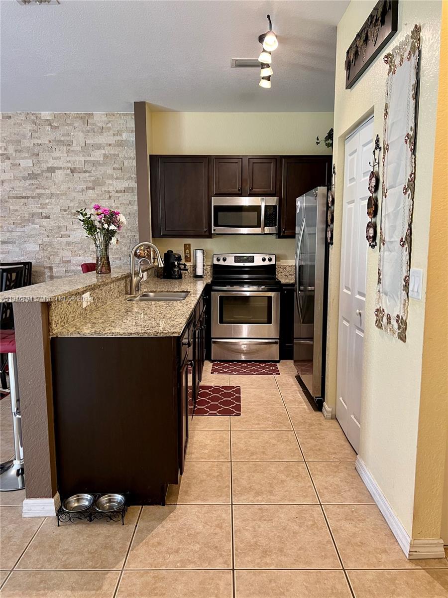Make this beautiful gated community in Miramar your home. Drive through the manicured property to your 3/2 and half bathroom townhouse. This two-story townhouse is tiled throughout the first floor, with high ceilings and fans which open up to a spacious and flexible floor plan. The kitchen is has top of the line Kenmore, stainless steel appliances and solid wood cabinetry. There is plenty of storage space downstairs, as it has a pantry and two extra closets. Also, there is a half bath downstairs for your guests. The wood laminate stairs which are throughout the second floor, lead you to an office space, 2 bedrooms, a bathroom and the master room and master bath. The washer and dryer are upstairs as well. The large master bedroom has a tray ceiling and views to the courtyard. Hurry!!!