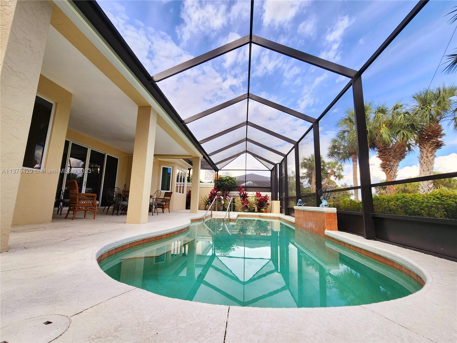 Stunning 3 bedroom, 3 full bath detached single story villa with heated pool overlooking sugar-white sands and palm tree lined golf course vistas of Creekside golf course. 16 foot tall soaring ceilings reveal light filled rooms. Newer roof and screened pool area in 2020. Partial (six) newer impact glass windows. This home with tile roof is expanded model with larger than typical rooms and expanded roomy 2 car garage. Fireplace, built-ins, large screened lanai on lushly landscaped lot. The pool is equipped with a ramp for easy access and Hurricane rated garage door. Bonita Bay Club is member owned, offering five 18 hole golf courses, 18 tennis courts, state of the art fitness center, resort style pool and spa, clubhouse, private beach, and wet/dry dock space available at marina and more.