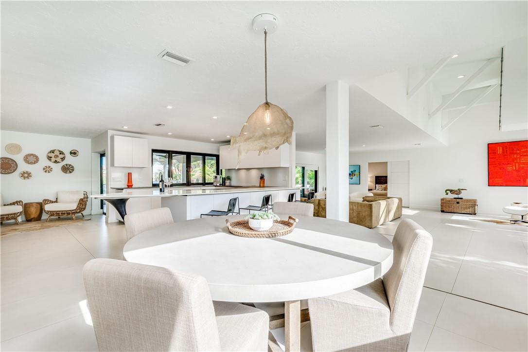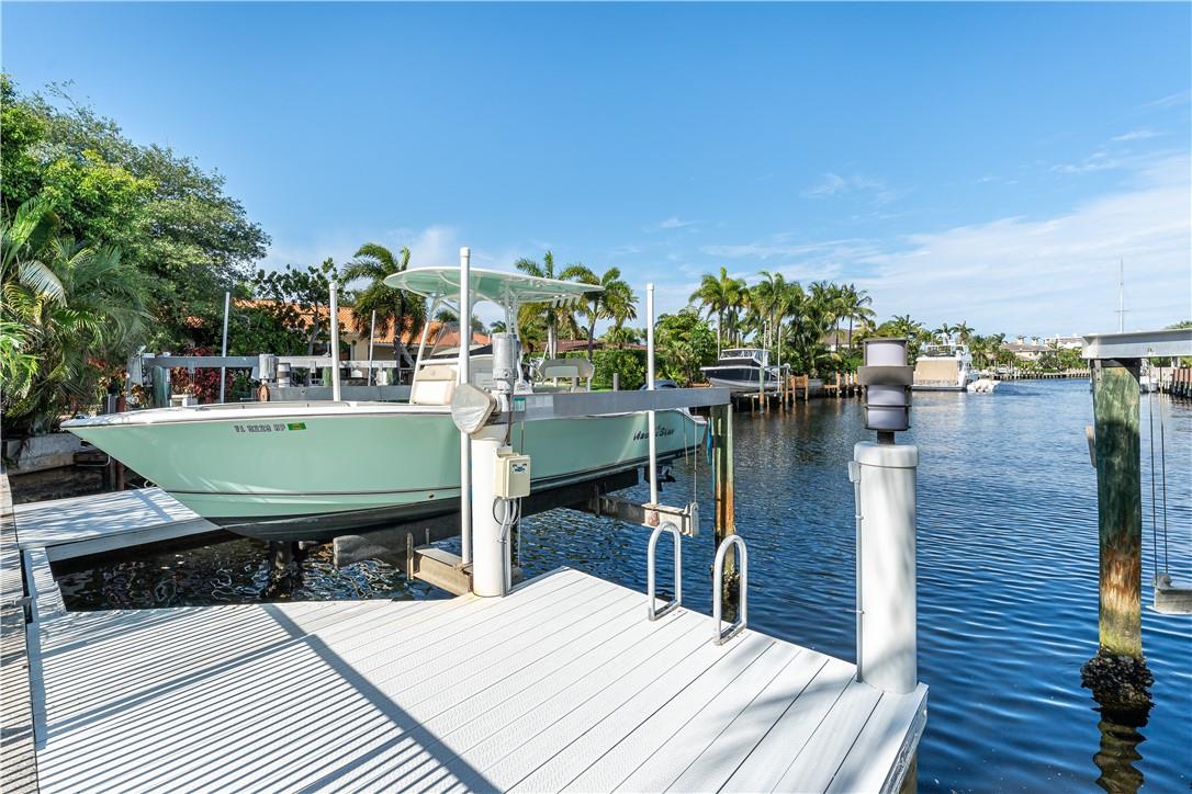 Modern, spacious, open & flowing floor plan, perfect entertaining inside & out. Large, beautifully landscaped waterfront lot, boat lift & very private back yard & pool. Great breezes & easterly view down length of canal. High ceilings & bright interior with impact windows & doors throughout. Huge covered patio & large heated pool. Spacious modern kitchen, island seating & pass through to patio bar. 5 bedrooms include separate guest wing with VIP suite. 3 bedrooms including an office occupy separate wing. Roomy master suite & sitting area opens to private balcony overlooking waterway. Walk-in closet & luxurious tub & shower. New AC, 2 car garage & circular driveway has lots of off street parking. Oversized lot has room for garden & grassed areas provide room for kids playground & dog run.