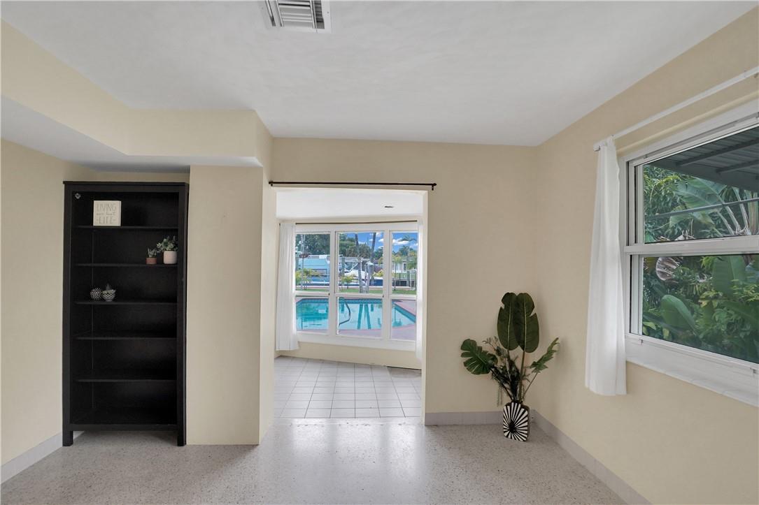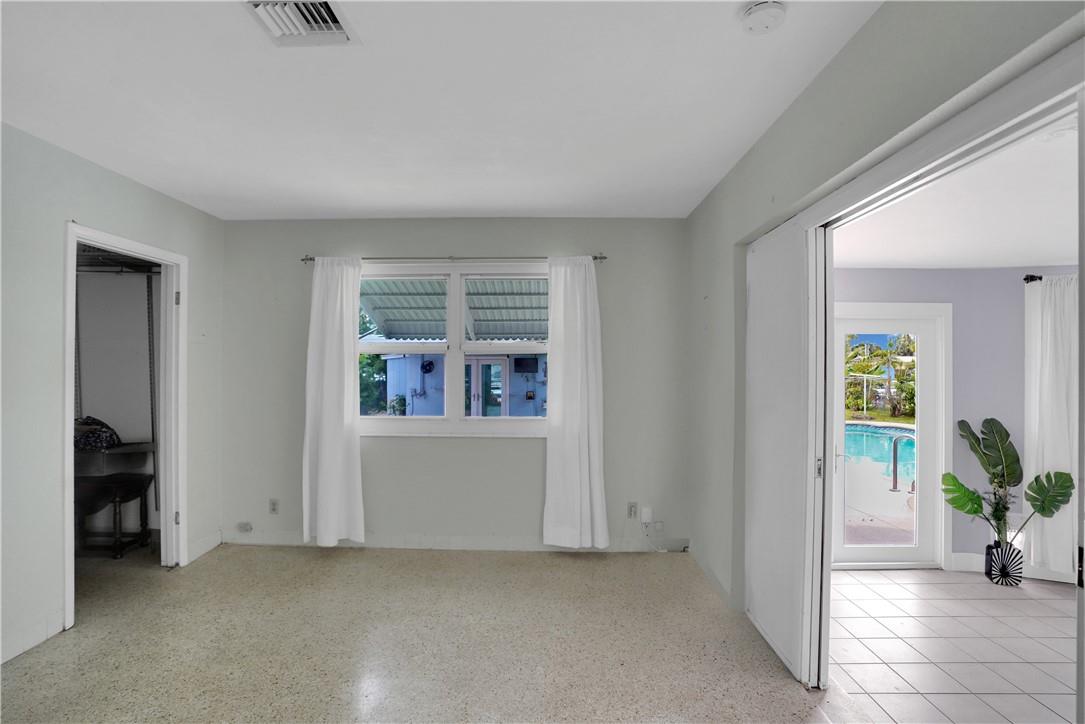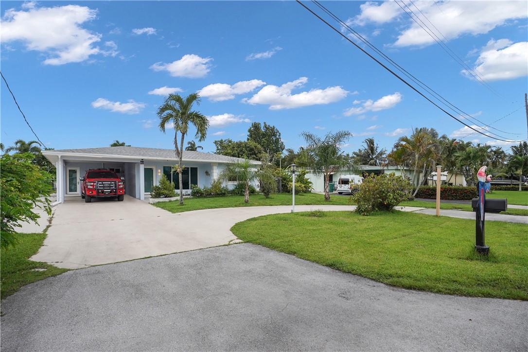This lovely waterfront, pool home has 3-bedrooms/2 baths with circular drive and an open floor plan. Desirable Terrazzo floors compliment most of the house. There is a private master suite with 2 additional bedrooms. Active AirBnB permit for the 1-bedroom guest cottage. Covered patios for indoor/outdoor living. Heated pool with underwater pool light with multiple settings, a built in hot tub with aqua link pool automation on phone app is new in 2022. Blink camera system w remote monitoring. Sound proofing,insulation, impact windows & doors throughout in 2016. New 5 ton AC and AH ducting in 2016. New electrical permitted including mast, panel & power cable into property 2017. New washer w/warranty. New Roof in June 2023. By boat, 30 min to the ICW from new 80 ft dock one 20ft fixed bridge.