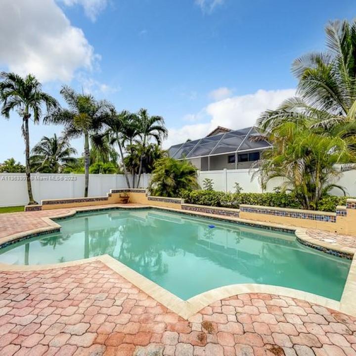 Four bedroom, three bath, 3700 sq. ft home with three car garage and pool located in the highly sought-after gated community of Crystal Bay in Silver Lakes. This community is family-friendly, welcoming, and near the A-rated Pembroke Pines Charter schools.This home features an expansive master with his and her walk-in closets, an oversized tub, and a separate office space. The main floor includes a family room and a newly renovated full bathroom with easy access to the backyard and pool. The backyard includes a built-in bar area with a mini-fridge, custom grill space, and a beautiful pool. Newly installed A/C unit, a new PVC-style white fence, and new convenient accordion hurricane shutters throughout the house. This gem will not last!