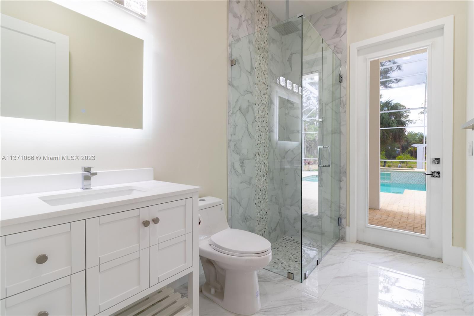 LUXURY ESTATE LIVING awaits in this COMPLETELY RENOVATED residence! Soaring ceilings, 33"x33" porcelain tile, huge walk in pantry, LED lighting, & upscale light fixtures. Master bedroom has 2 large walk-in closets, a spa-like en-suite, dual vanities, soaking tub, lighted mirrors & separate shower. Split plan with 3 spacious bedrooms located on opposite side providing privacy for guests. BRAND NEW stainless steel appliances, waterfall QUARTZ island, wall oven/microwave & wine cooler. Expansive 2.34-acre, partially fenced private lot provides ample space for outdoor gatherings. Relaxing pool/spa area. Prime location close to town, shopping, restaurants & blocks from the new Vanderbilt Beach Rd. extension. Don't miss out on this rare opportunity to own a piece of paradise in Naples, Florida.