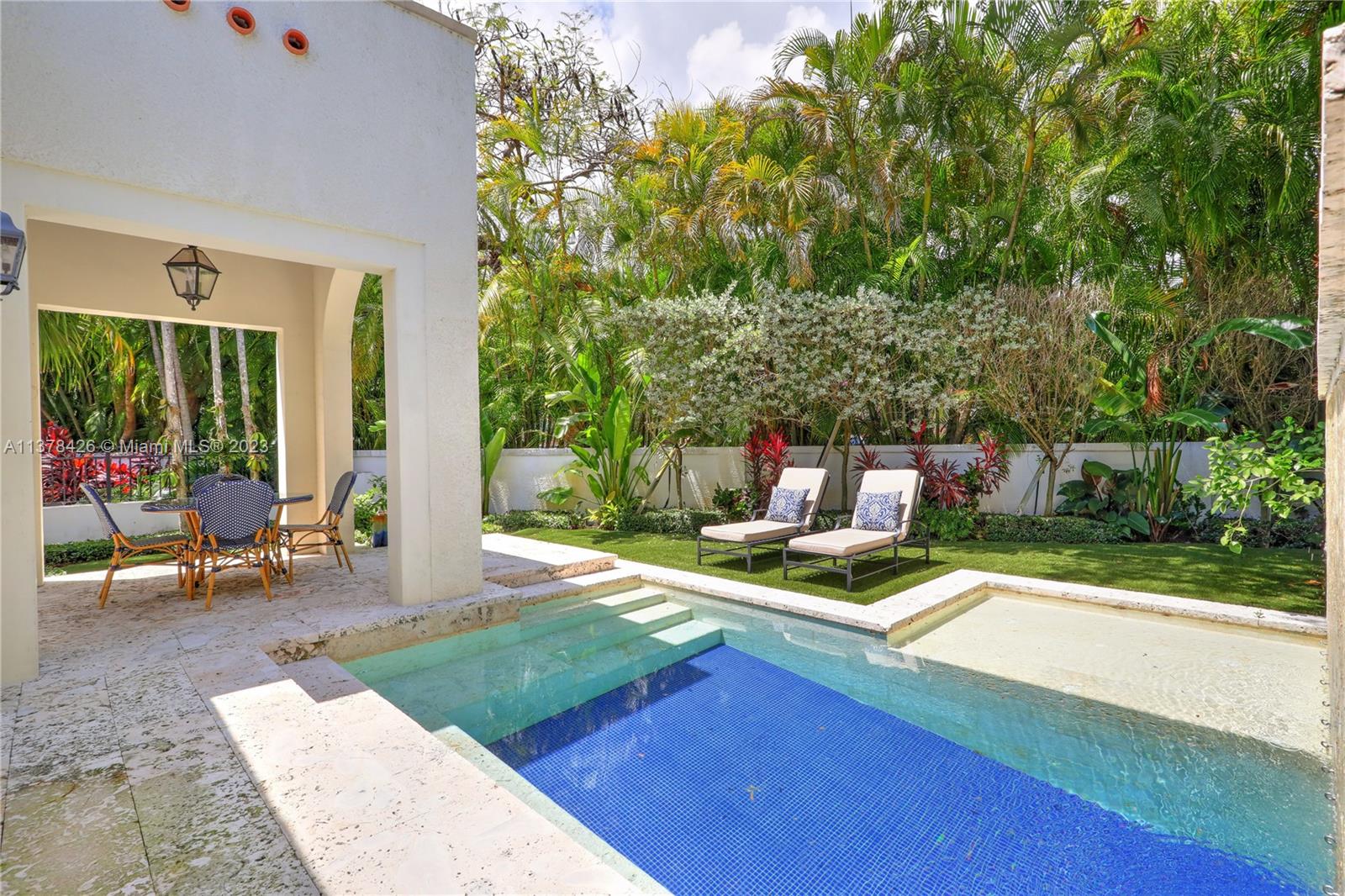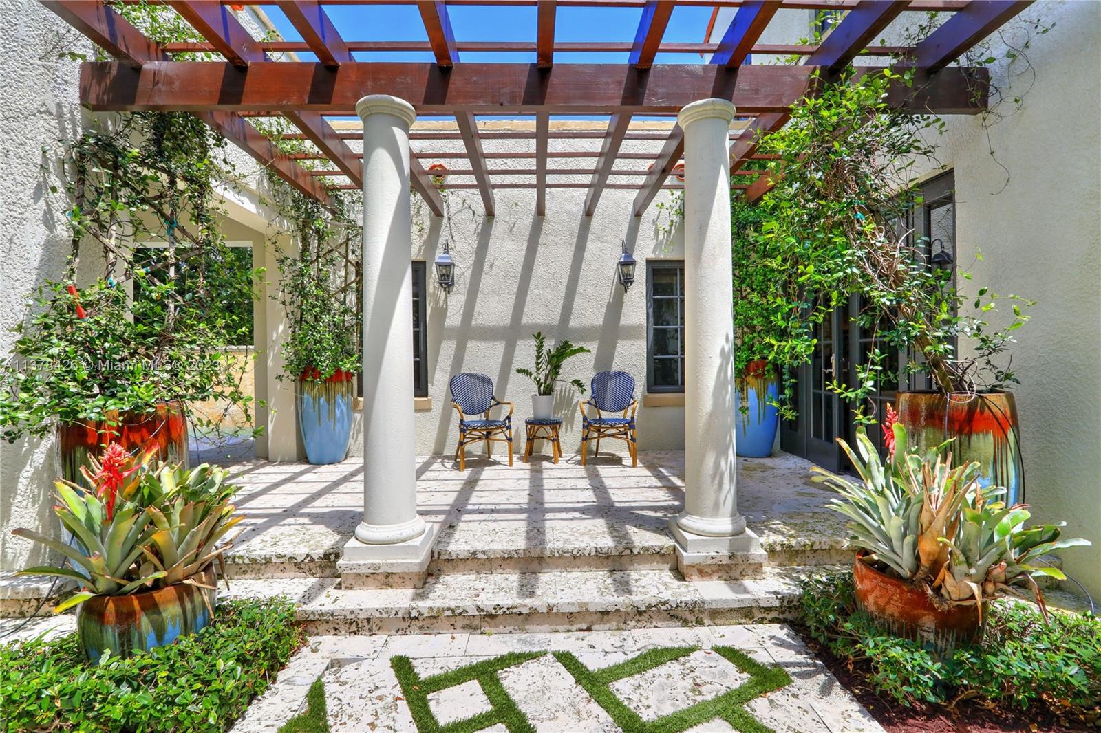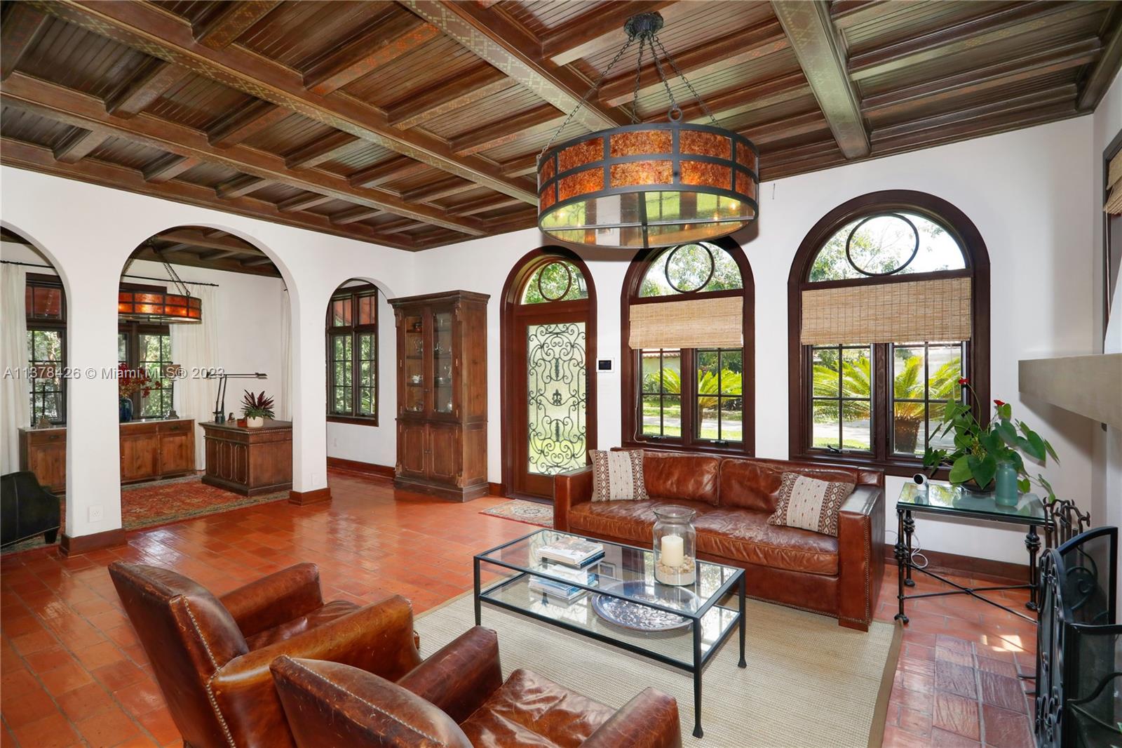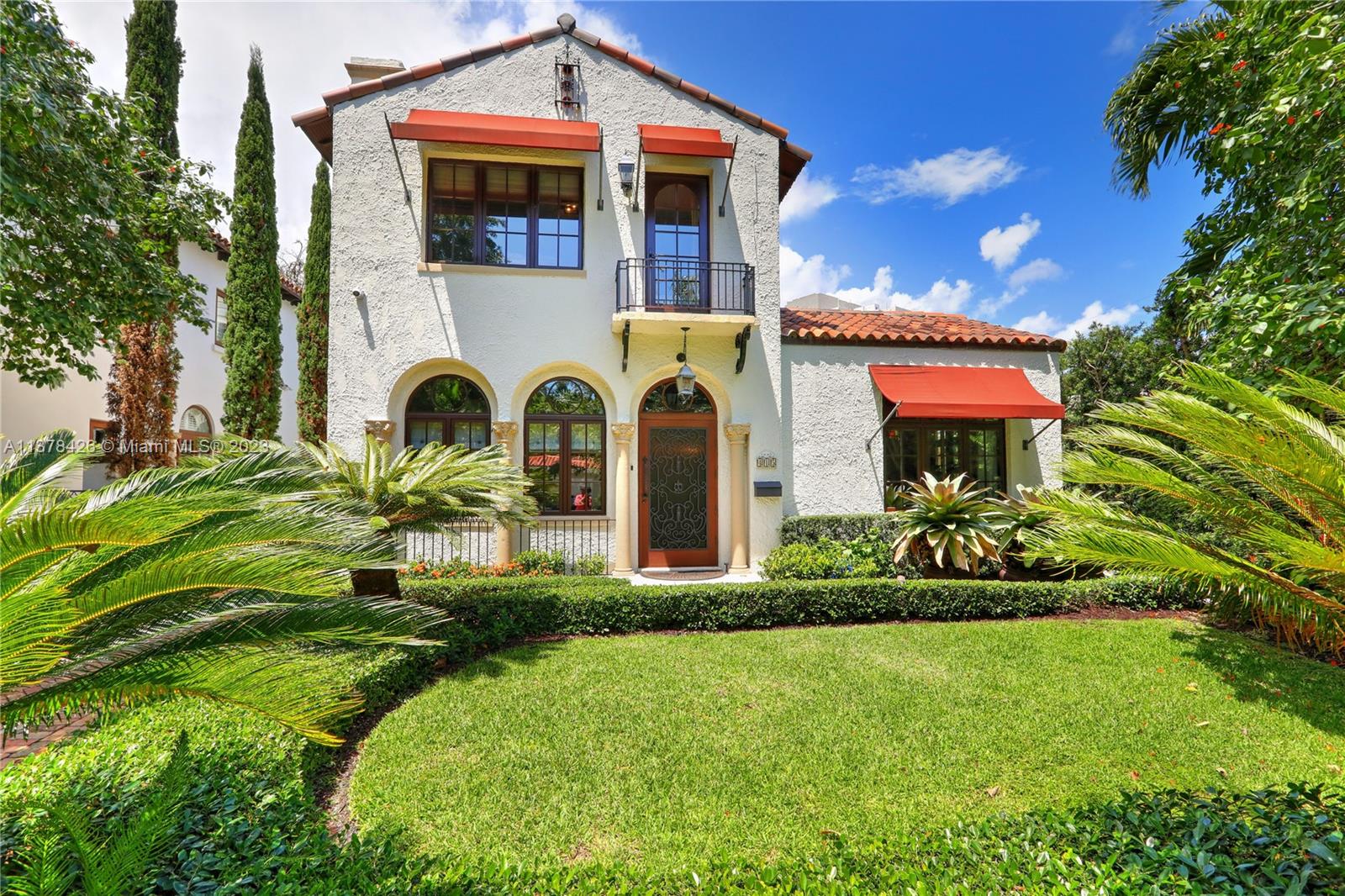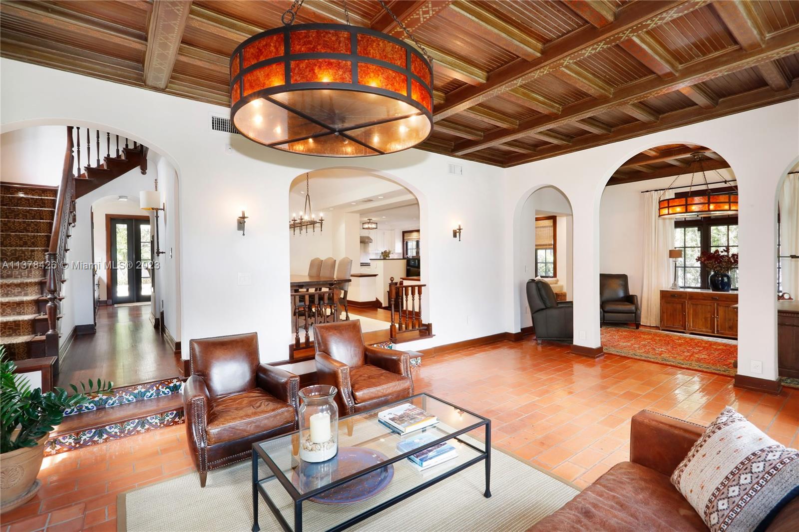 Old Spanish charm meets modern living in this spectacularly updated 3 BR, 3.5 BA, 2,828 SF home situated on an ultra-private street conveniently close to the heart of Downtown Coral Gables! The gracious floorplan lends itself to casual living & formal entertaining & includes a formal liv room w/ fireplace, formal din room, open kitchen, family room, & eat-in area. Outside, a pergola leads to a beautiful covered porch & heated pool w/ fountain, surrounded by a keystone patio. Upstairs, the spacious primary suite has a private, newly-installed roof deck featuring views of the Gables, 2 walk-in closets, & marble BA. There are 2add’l BRs w/ stunning en-suite BAs. Other features incl new Pella impact glass windows, hand-painted wood beamed ceilings, wood floors, unique tiling, & much more!