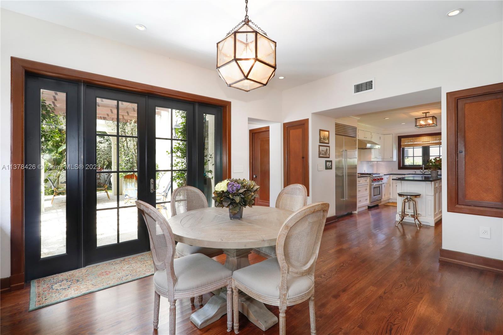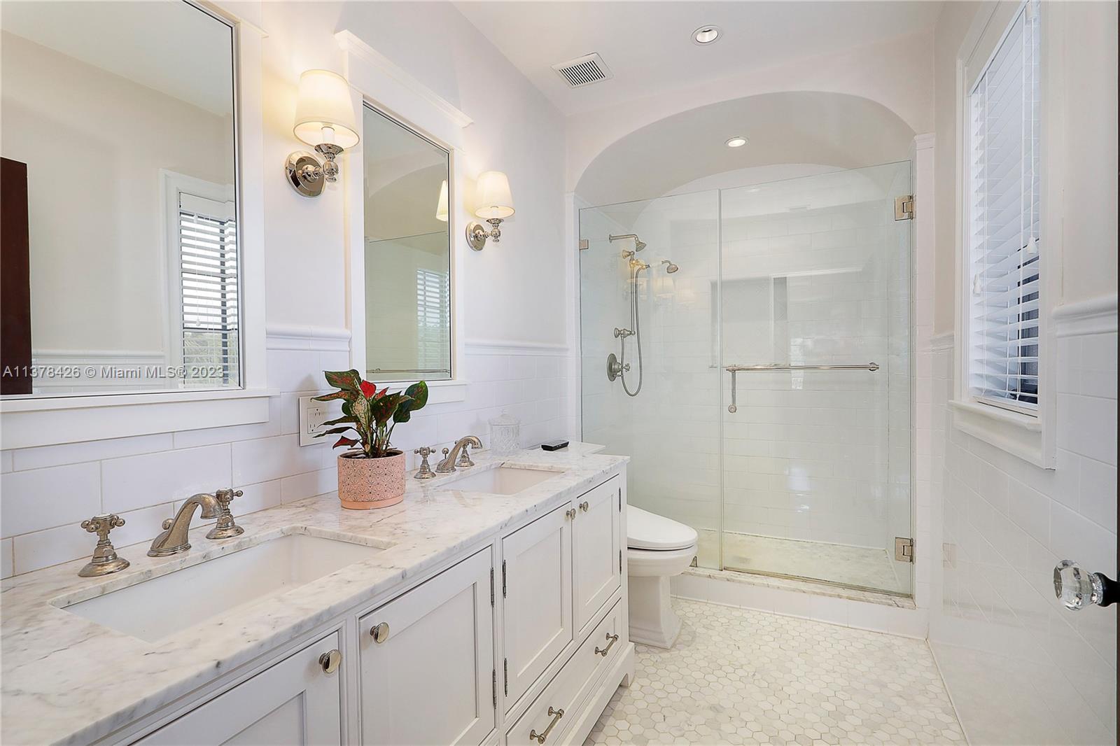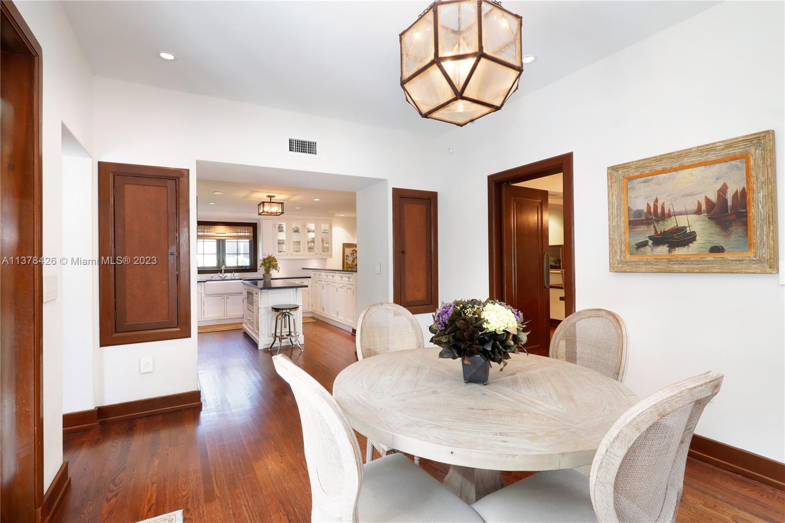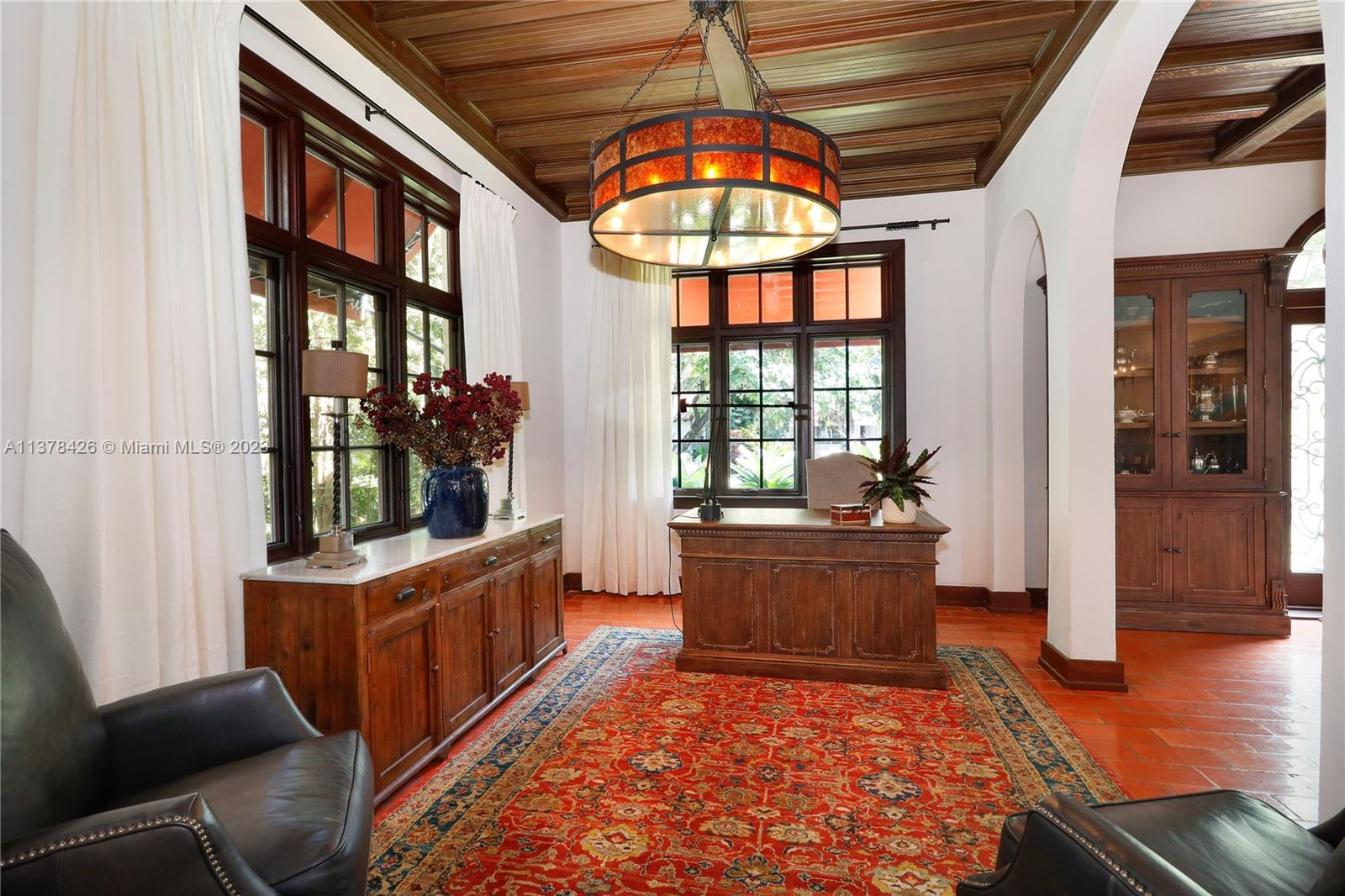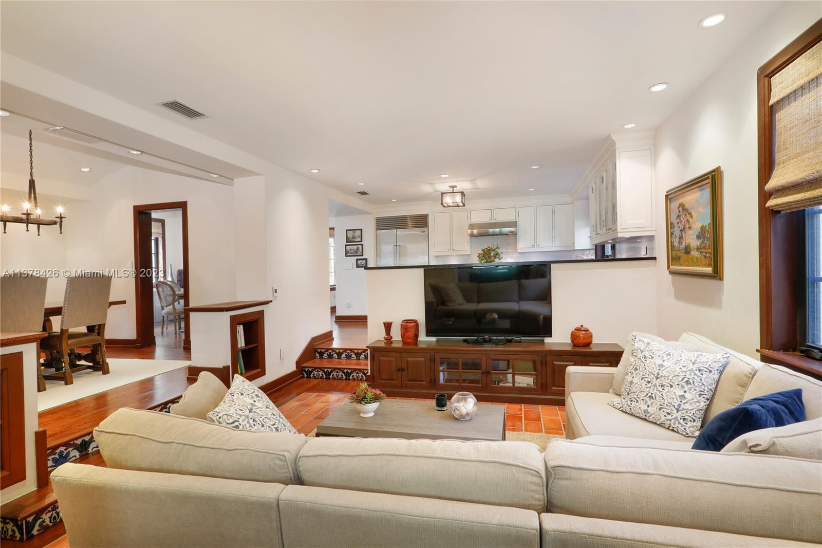 Old Spanish charm meets modern living in this spectacularly updated 3 BR, 3.5 BA, 2,828 SF home situated on an ultra-private street conveniently close to the heart of Downtown Coral Gables! The gracious floorplan lends itself to casual living & formal entertaining & includes a formal liv room w/ fireplace, formal din room, open kitchen, family room, & eat-in area. Outside, a pergola leads to a beautiful covered porch & heated pool w/ fountain, surrounded by a keystone patio. Upstairs, the spacious primary suite has a private, newly-installed roof deck featuring views of the Gables, 2 walk-in closets, & marble BA. There are 2add’l BRs w/ stunning en-suite BAs. Other features incl new Pella impact glass windows, hand-painted wood beamed ceilings, wood floors, unique tiling, & much more!