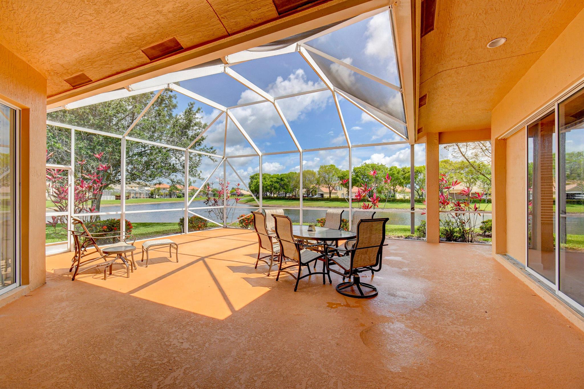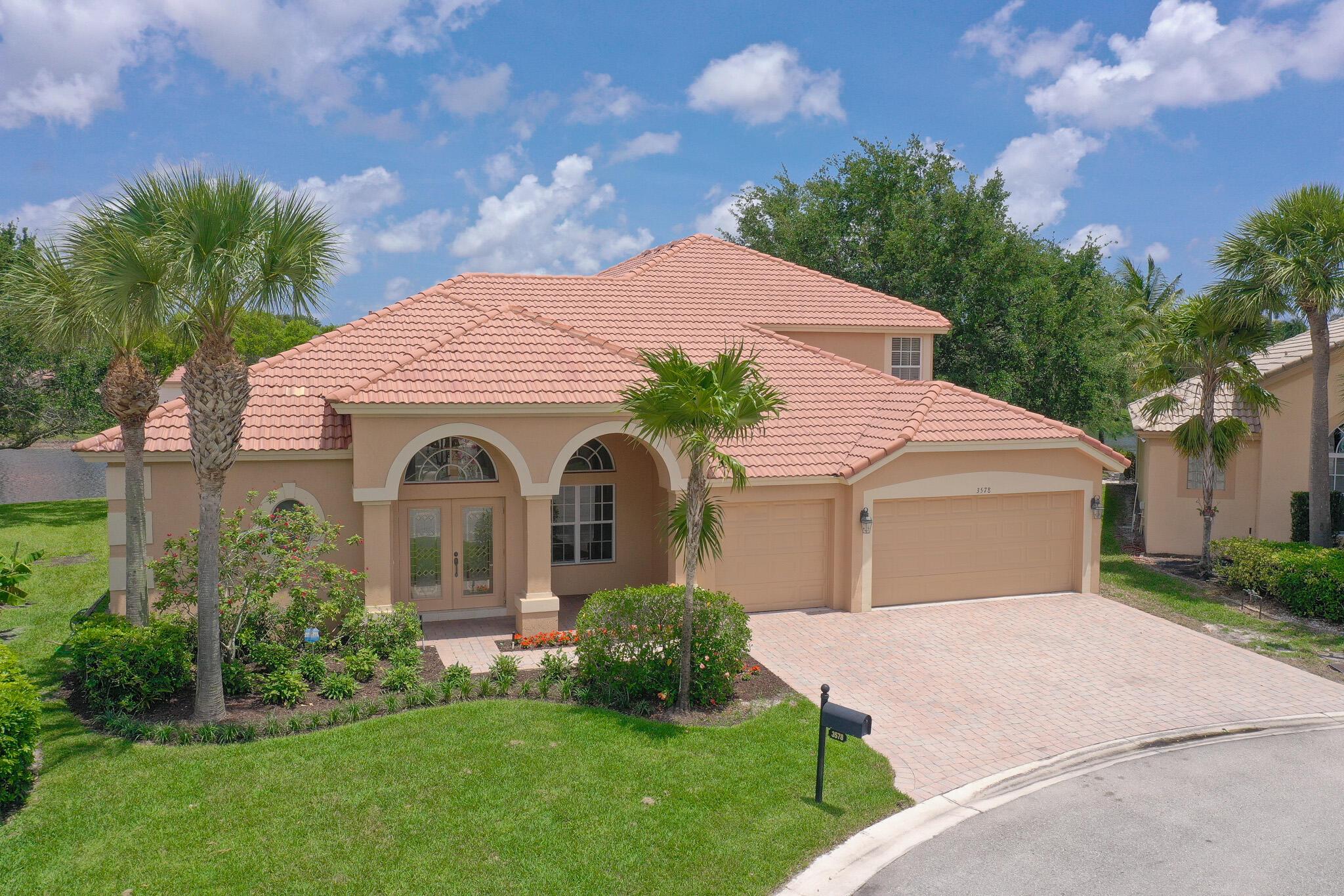 It's all about INDOOR/OUTDOOR LIVING in this spacious Key West model. Lake views are eye-catching, creating a panoramic view. You will surely be the HUB for entertainment with your massive extended 30' x 30' screen enclosure. Sliders in family room pocket into wall bringing the outdoors in. Perfect ambiance for ''Al Fresco Dining.'' Situated on a quiet cul-de-sac, home offers a beautiful streetscape. Brand new front yard sod and freshly planted front landscape bed creates a warm and inviting feel. This well thought out floorplan is so functional perfect for extended families.