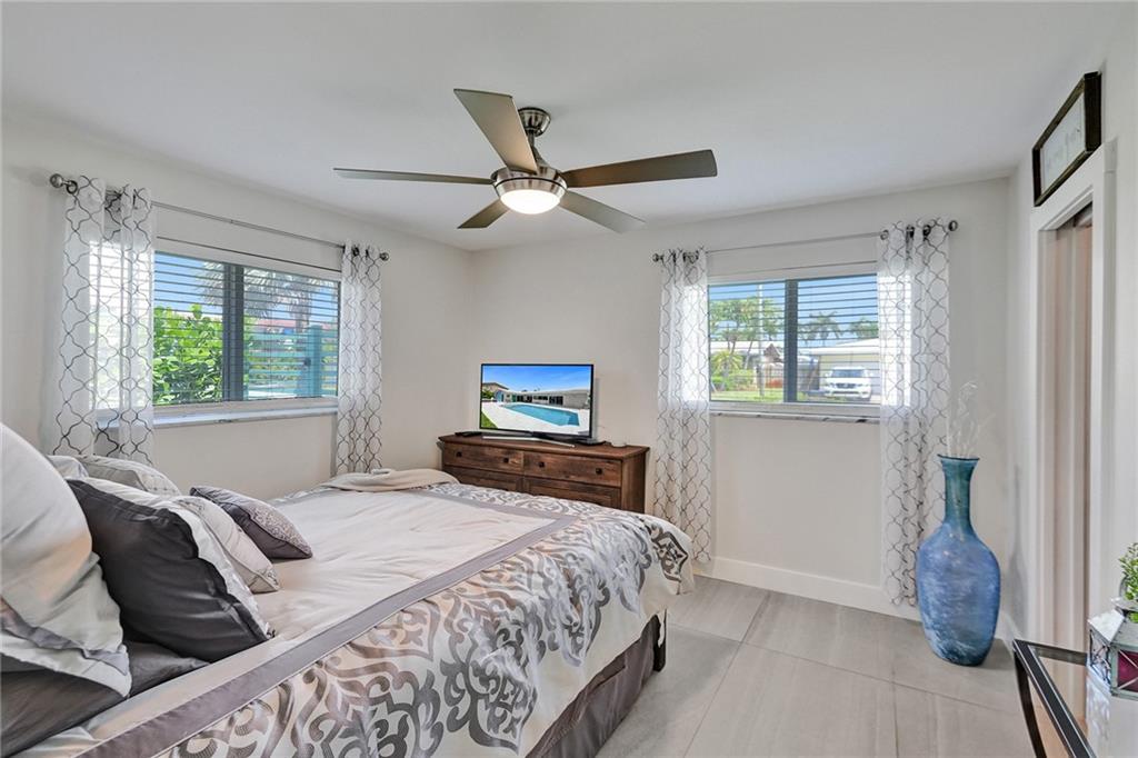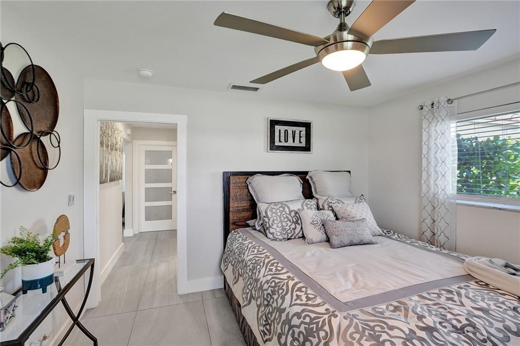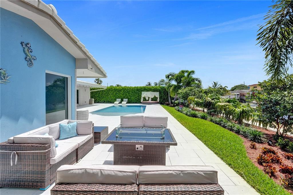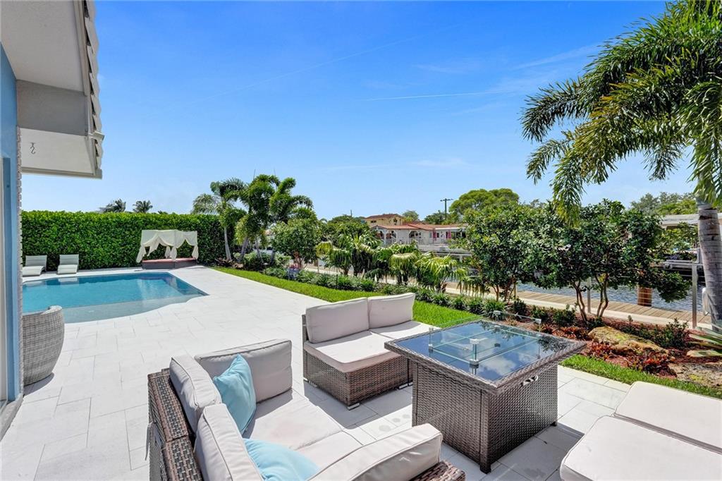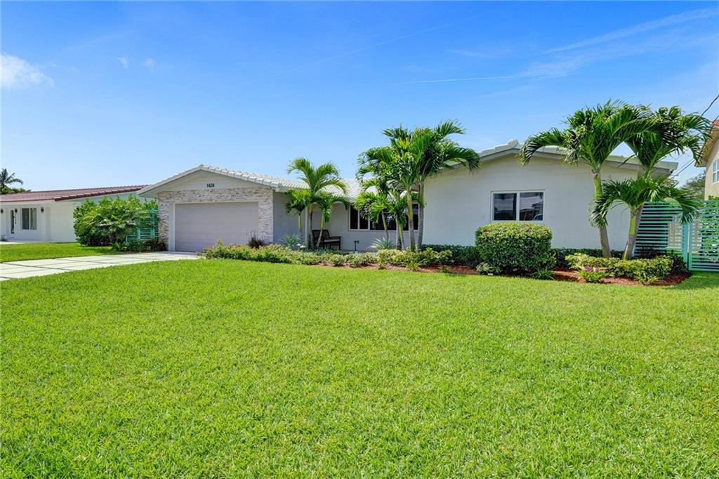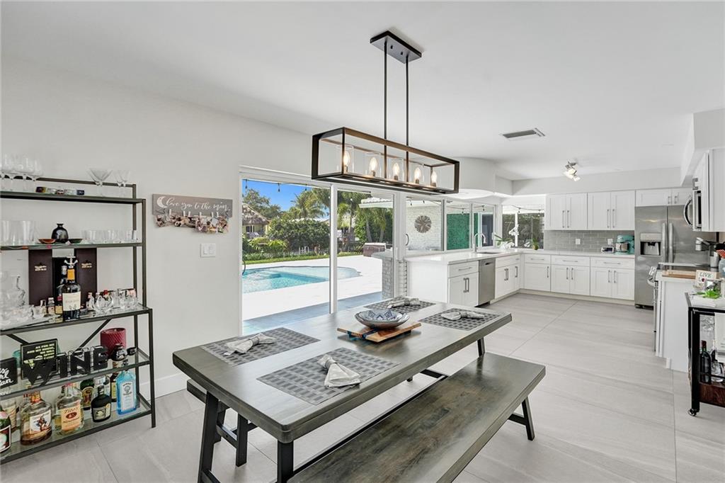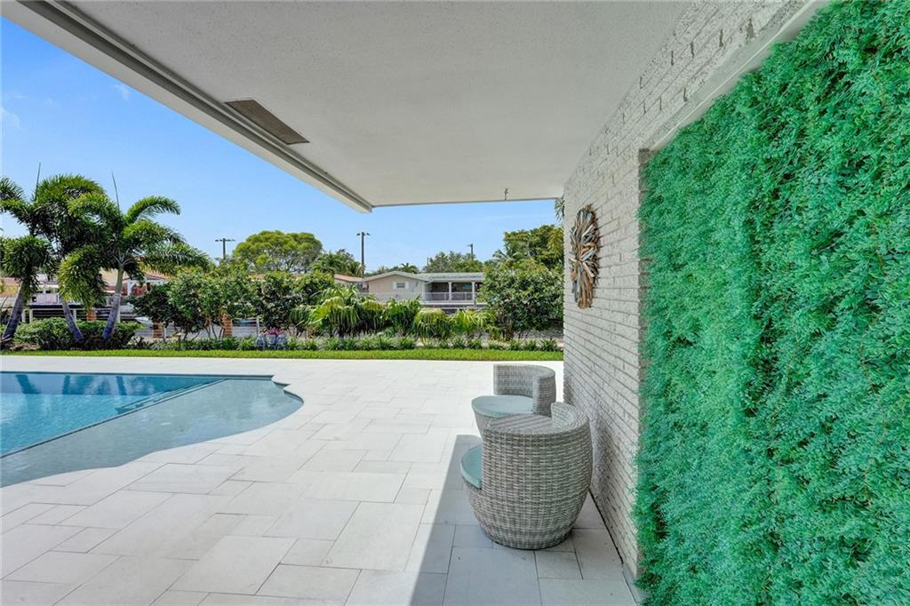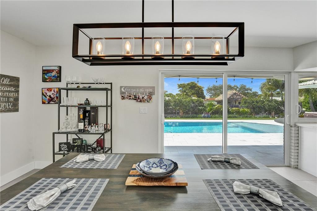 Stunning turnkey Coral Ridge Isles Waterfront property! Over 277k worth of upgrades with current owners, all permitted!! Three sun drenched bedrooms each with walk in closets and 2 oversized bathrooms with dual sinks draped in Calcutta Quartz countertops. 24x48 Porcelain Stone flooring throughout seamlessly transitioning one living space to the next. Large bright kitchen is equipped with solid wood shaker style cabinetry, Calcutta Quartz countertops and top of the line Stainless Steel Appliances. Backyard features 75 linear feet of waterfront, sparkling resort style pool and patio. Brand new seawall and full length dock with electric add extra charm to this already amazing property. Hurricane Impact windows and doors throughout plus 2 car garage. No HOA! Don't walk to this property...run!