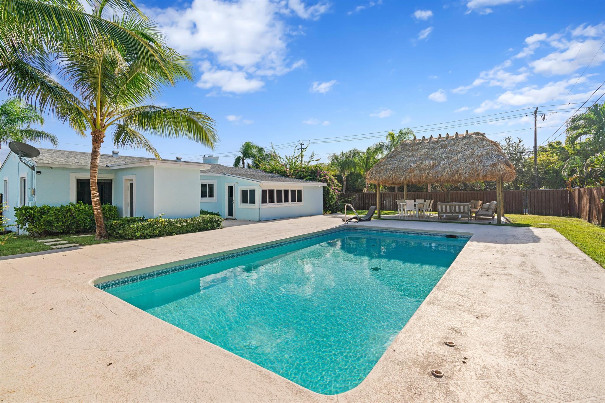Sunny and charming 3 bedroom / 3 bathroom home sits on an oversized corner lot (9,180sf)on a quiet street. The inviting and private backyard includes a large swimming pool, tiki hut and lots of room for future expansion. Other features include hurricane impact rated windows, split bedroom plan and tiled floors. Located in the desirable SoSo residential neighborhood, this home is walking distance to South Olive Elementary School, South Olive Tennis Center and the Intracoastal. Close to beaches, restaurants, airport and all that West Palm Beach has to offer!
