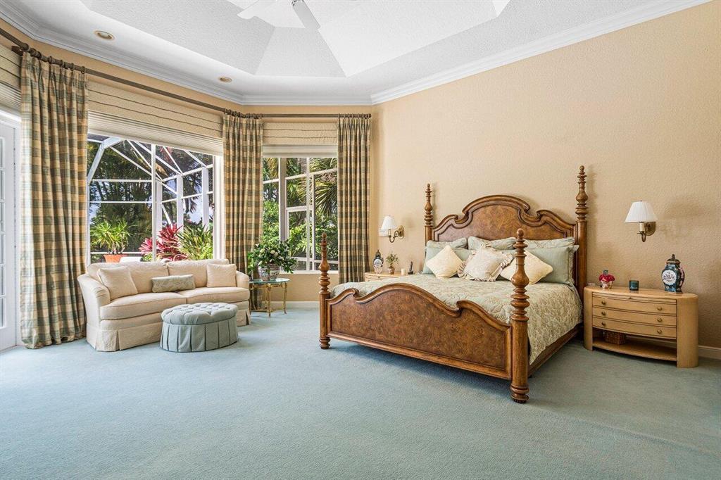 Situated on a beautiful interior golf course lot in the renowned boutique country club community of Bocaire, this one story estate home features a desirable 3 split floor plan, all bedrooms ensuite.The open kitchen with island has white wood lacquer cabinetry with a classic coastal vibe overlooking the family room, breakfast area, bar and vistas of pool, patio and golf course beyond. The primary wing has a den, his & her baths and separate walk in closets. The expansive living & dining room open out to the covered pool area. 2 car plus golf cart garage.The renowned Bocaire Golf Course awaits...!