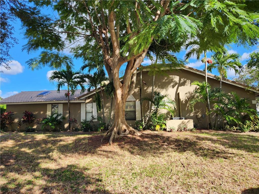 This home is located in The Royal Palm Village the heart of Coral Springs. A single family home with great schools, 4 bedrooms, 2 full bathrooms, 2 car garage. Newer Roof and newer A/C. The home has been been recently painted thoughout a neutral color. The Family room wall where a mirror was removed is the only area that still needs painted. The floors are white ceramic tile. Lots of storage. separate laundry and linen closet. Master bathroom has door leading to backyard. the family room has coral fire place and beautiful french doors. The home has lots of natural Light. Corner lot with one of the largest yards in the area. The community is very well kept, and has a community pool area with small clubhouse.