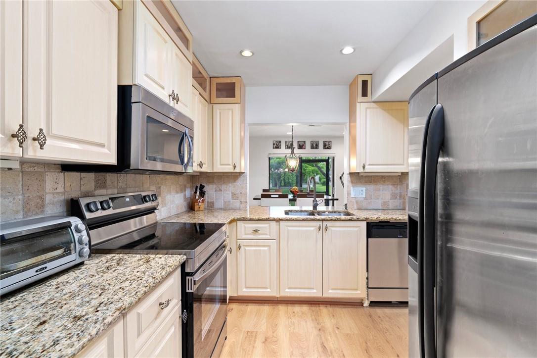 Rarely available Coral Springs 2000 sq ft 3/2.5 Corner Townhouse with water view. Accordion Shutters! Updated Kitchen with Granite Counter-tops, stainless steel appliance. AC 2018, stove/oven 2/2023, water heater 2019, dryer 2/2023. Large Master Suite with its own Balcony looking over the Water. Extended Closet in Master. Master Bath includes double sink vanity, linen closet and separate shower room. Upstairs Laundry - no lugging clothes up and down the stairs. Half Bath downstairs. Formal Dining Room with Water View. Also has a cozy eat-in kitchen dining area. Oversized living room with vaulted ceilings. Lots more...Carport with Storage and 2 driveway spots. HOA includes Building insurance, Roof, water, trash, reserves, common areas and community pool.