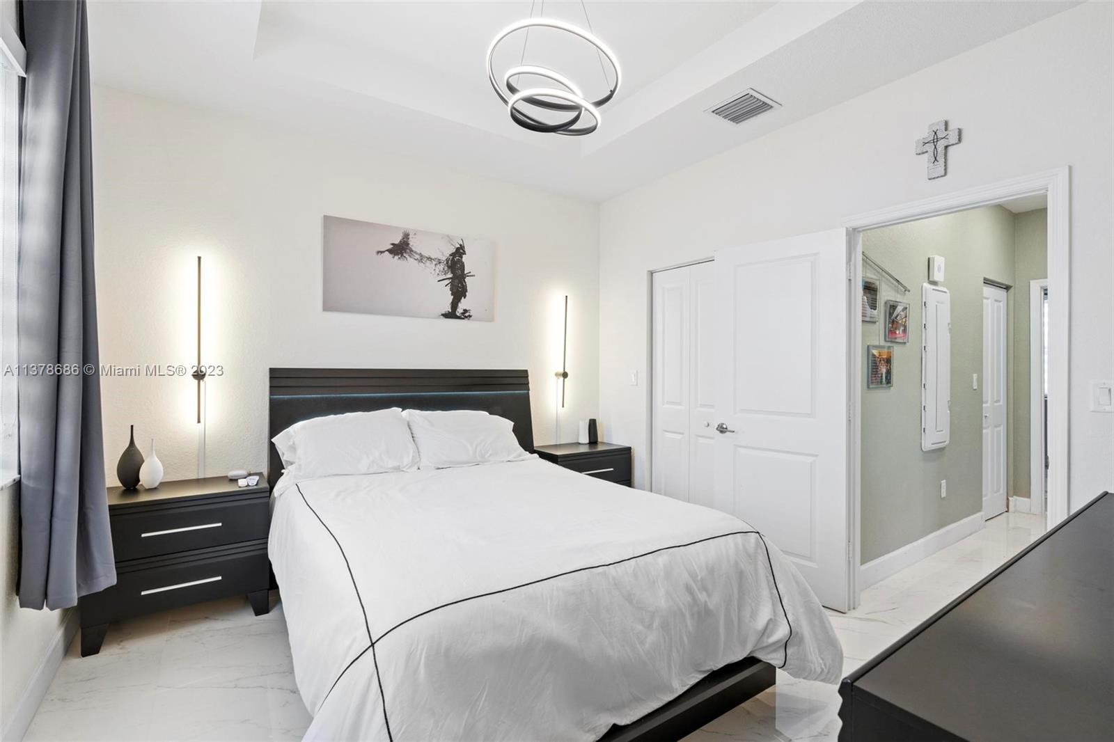 3 Bed, 3 Full bath townhouse in newly built community of Aquabella. This model features one full bed and bath on the first floor, and is completely tiled throughout. Premium location from the builder with extended lot, corner unit, and lake frontage. This home includes complete accordion shutters, zebra shades and elegant light fixtures installed. The patio features stone pavers and artificial turf, along with a gate to keep little ones and pets safe while enjoying the sunshine. This community has two clubhouses with huge pools, a large gym, on-site security and many other features- all in a wonderful location near several of Miami's major highways, shopping, dining and entertainment. Please feel encouraged to ask for more information! OPEN HOUSE 4/29 and 4/30!