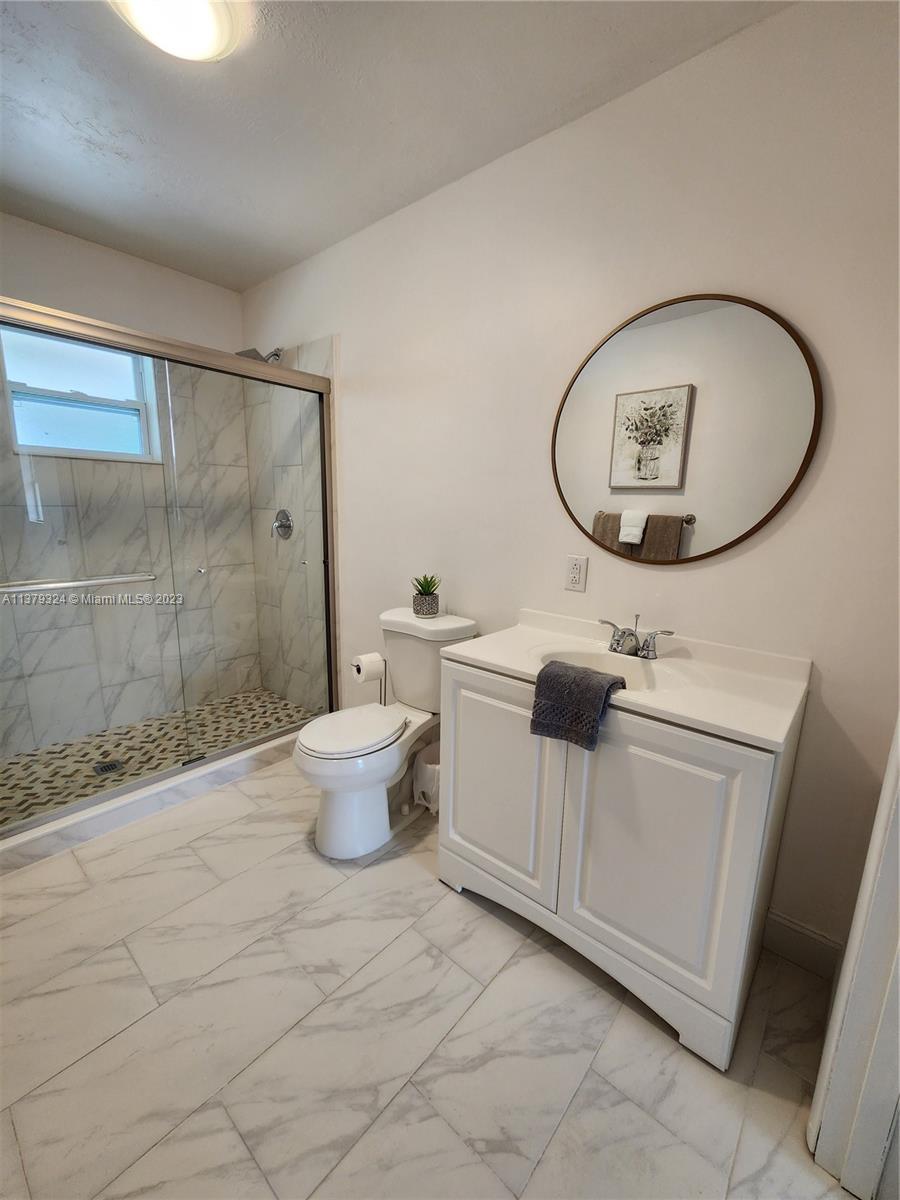 Beautifully remodeled 3/2, with large fenced in! New roof (about 2 years old), Underground drainpipes changed with permits in 2020, partial hurricane impact windows, brand new electric water heater, large driveway, new flooring throughout, remodeled kitchen with stainless steel appliances, master bedroom with beautiful large bathroom. Back yard has avocado tree and is large enough for a swimming pool and large shed. This is a wonderful home for a family! EASY TO SHOW! Text Listing agent!