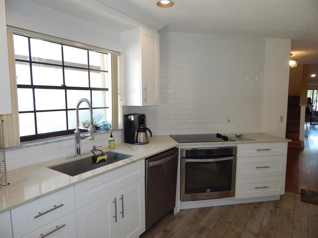 This beautifully renovated Lakefront, 3 bedroom townhouse + 1 car garage has been meticulously maintained. Located in the gated community of Boca Ridge which has a wonderful lakefront community pool. The fully updated kitchen has gorgeous quartz counters, stainless steel appliances and new cabinetry plus there is a bonus eat-in breakfast area. Almost 1900 sf under air plus an oversized screen porch with gorgeous lake views. The primary bedroom is on the 1st floor. Wood flooring on both 1st & 2nd floors. Internet, Cable Tv and exterior maintenance included.