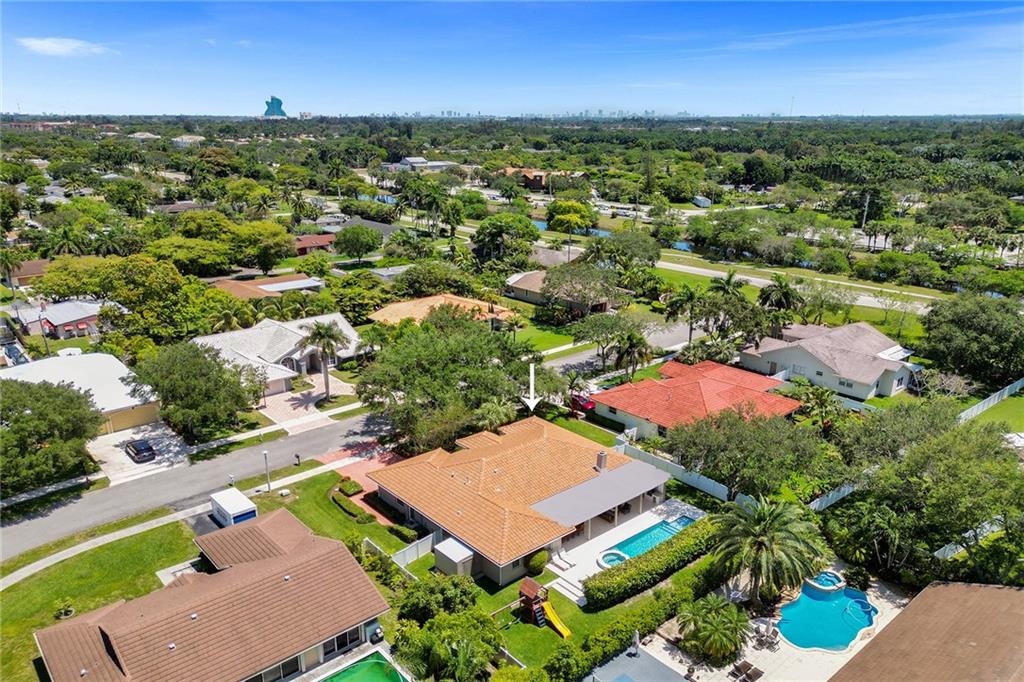 Come enjoy high-end finishes in this classic 4-bedroom, 3-bathroom one-story rancher in Davie Country Estates. Cross the threshold into an impressive entryway, plantation shutters throughout, and a gas fireplace in the living room. Fresh updates, two built-in ovens, and an attractive island layout make for an inspiring kitchen. The primary bedroom includes two walk-in closets and an ensuite bath. In this split floor plan, two bedrooms have large walk-in closets, and the fourth bedroom is currently an office. The piece de resistance is the backyard which boasts a heated pool with a hot tub, a beautiful outdoor kitchen with a built-in gas grill, and a charcoal egg. This home is a safe haven during storms with plumbed gas, impact windows, an impact garage door, and a new roof (2020).