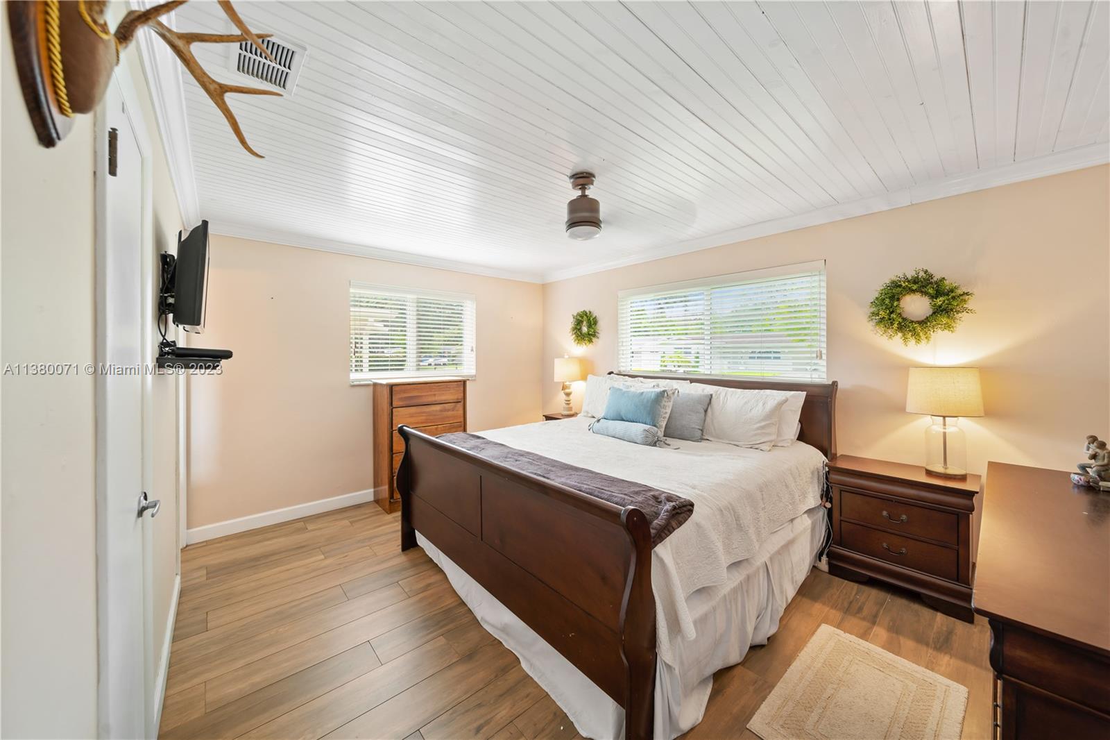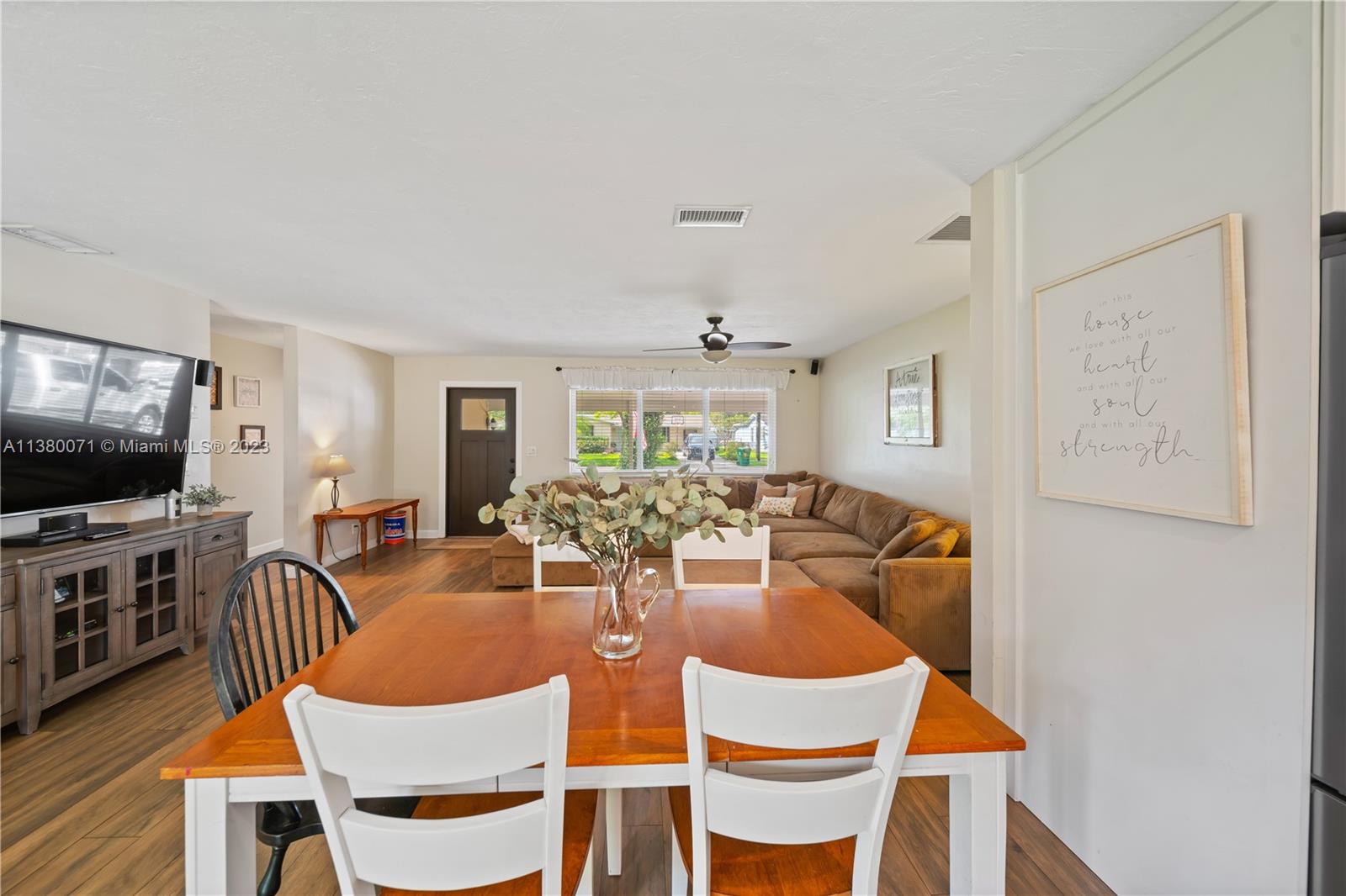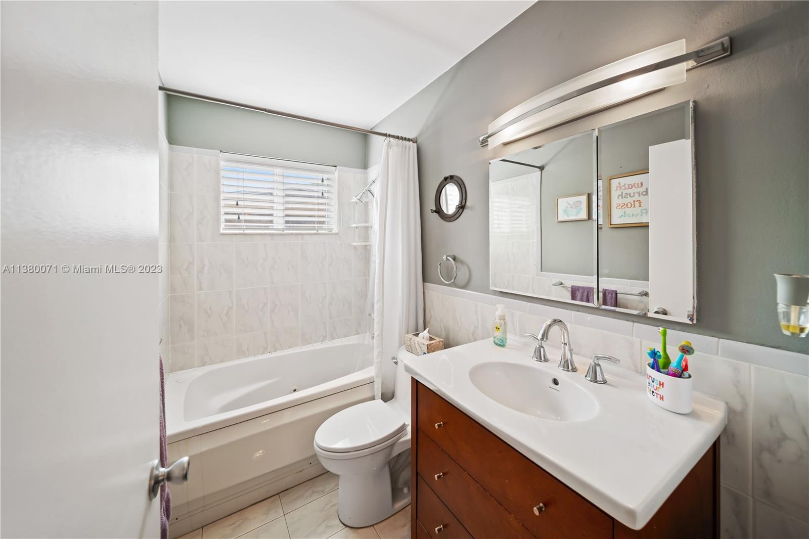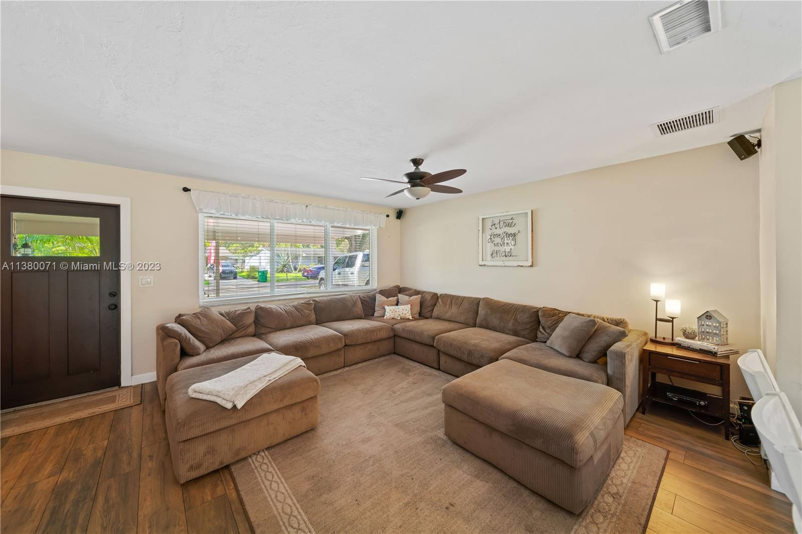 Beautifully updated family home in the heart of Cooper City! Open floor plan highlights the sleek kitchen with white quartz countertops, farmhouse sink, stainless appliances, and built-in office area. Spacious living/dining room with French doors to patio. Primary bedroom has wood slat ceiling, crown molding, and walk-in closet. Both bathrooms have been renovated, with a spa tub in the hall bath. Tile floors (with wood look) throughout. Interior utility closet. Newer A/C system. IMPACT GLASS windows and doors. Big fenced back yard with gazebo-style patio and storage shed ... and plenty of room for a pool. Double wide driveway. Covered front patio. Roof replaced in 2014. EXCELLENT SCHOOLS ... all A-rated. Nearby shopping, restaurants, access to highways.