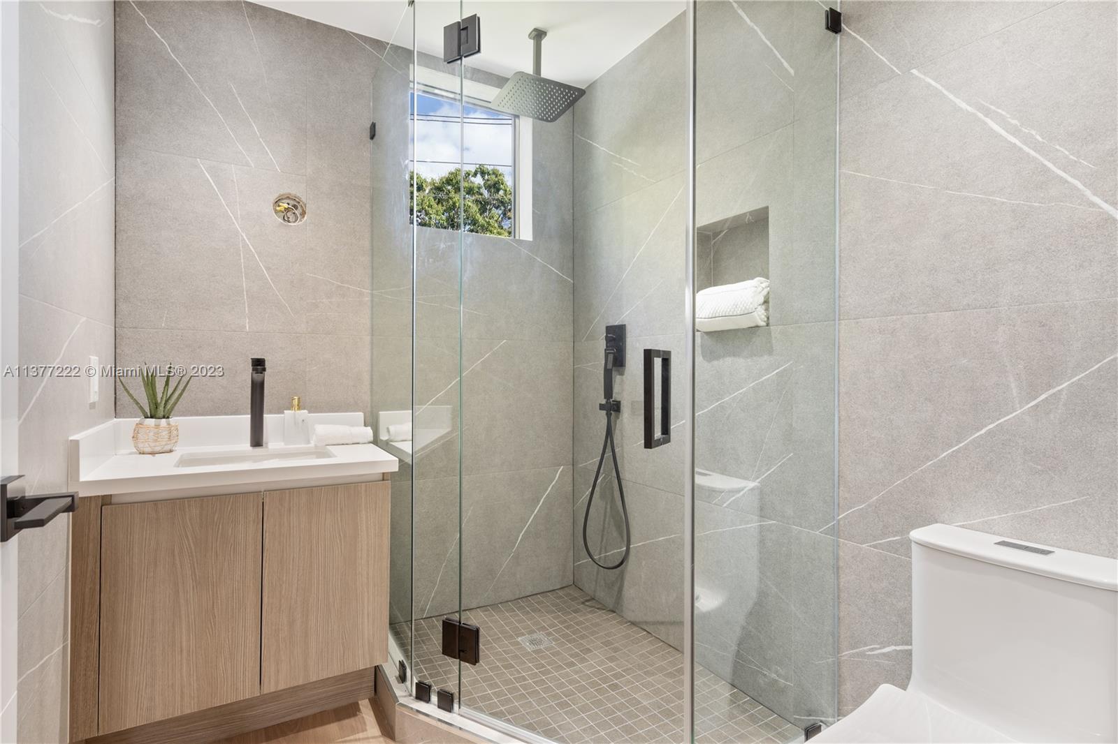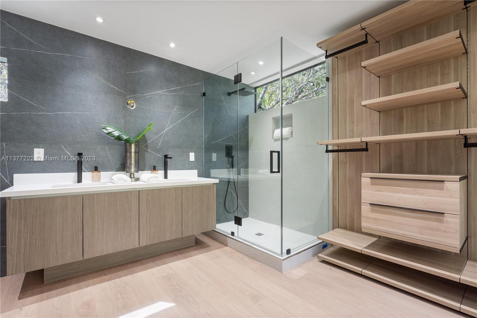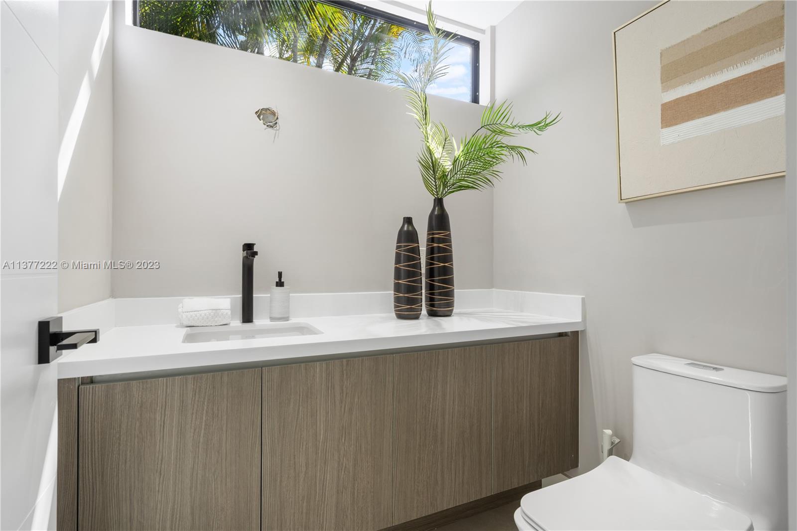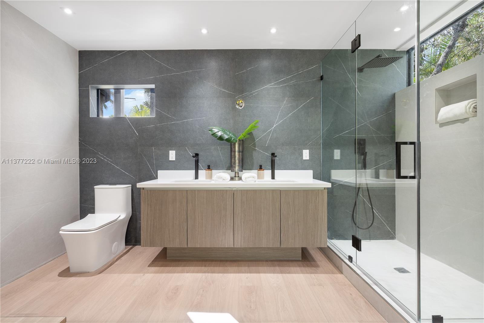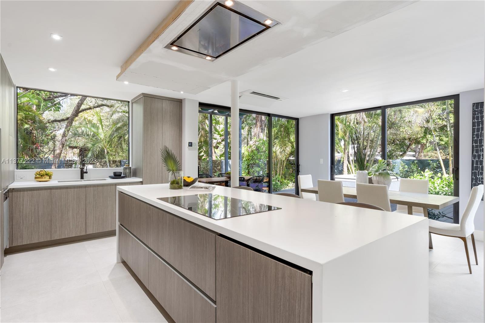 **Pinecrest Schools with Coconut Grove vibe & walkability** A stunning modern oasis in the heart of Pinecrest. Magazine quality renovation with 3 bedrooms and 2.5 baths. Ready for occupancy. Built for the most discerning homeowners, this house is equipped with only the finest: a 7-zone VRF a/c system (w/ individual temperature control), high-end Bosch appliances, fully landscaped with lush tropical vegetation and trees & high-impact windows & doors throughout. Welcome your guests with a dramatic entry through electric gates to this urban oasis. Entertain your guests w/ extensive outdoor decks, a covered terrace area & a 6-person spa while cooking in your kitchen w/ custom wood cabinets & quartz countertops, within walking distance of restaurants, shopping & top schools in Pinecrest.
