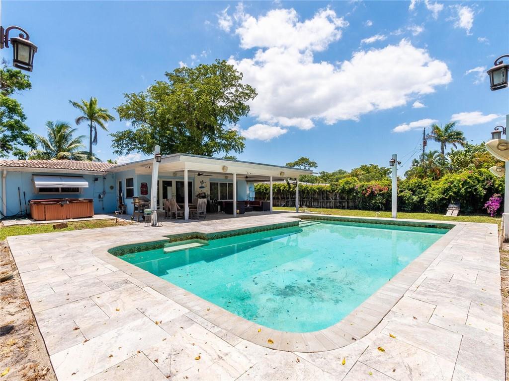 Live east of 95 in beautiful Pompano Beach in this 3 bedroom 2 bath salt water, heated pool home with a spa and 2 car garage and impact windows. Split floor plan with lovely open floor plan upon entry to living space and family room. Newly redone kitchen with granite counters and stainless steel appliances perfect for any foodie and for entertaining in your family room or Florida room both overlooking the pool and patio. This lovely home sits on an oversized lot with plenty of room to garden or just enjoy a great outdoor space. Much sought after neighborhood.