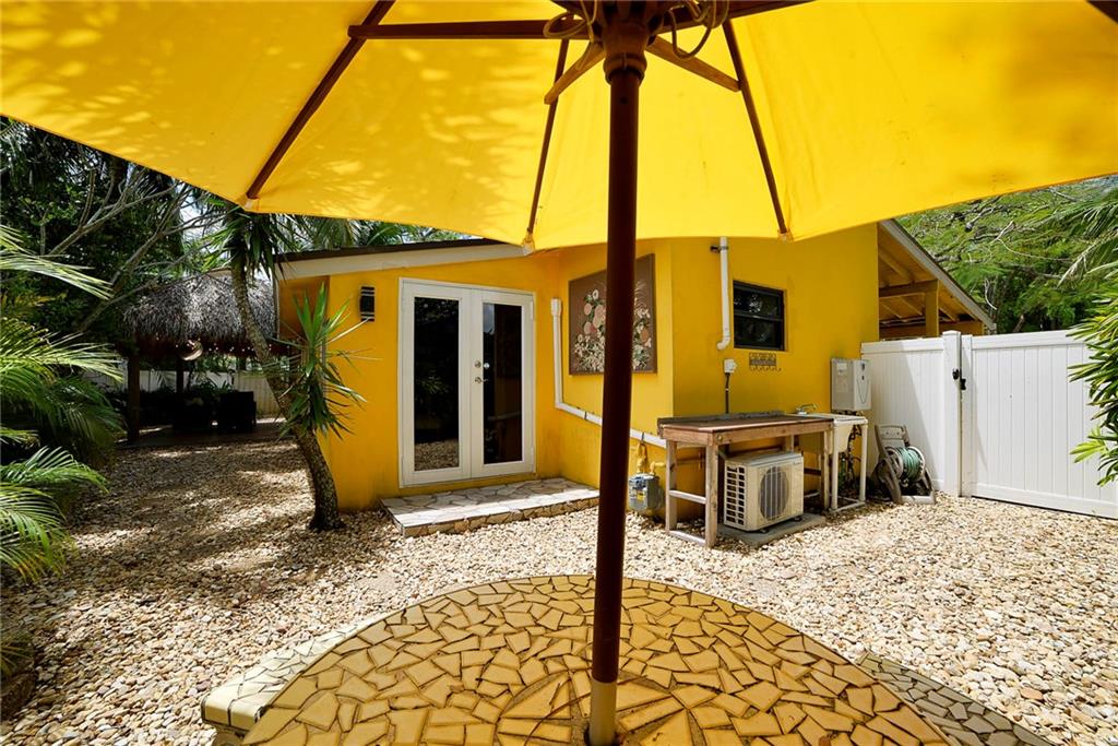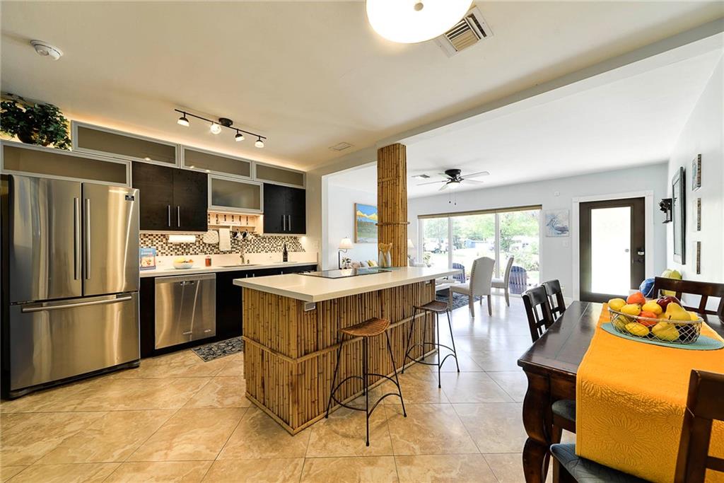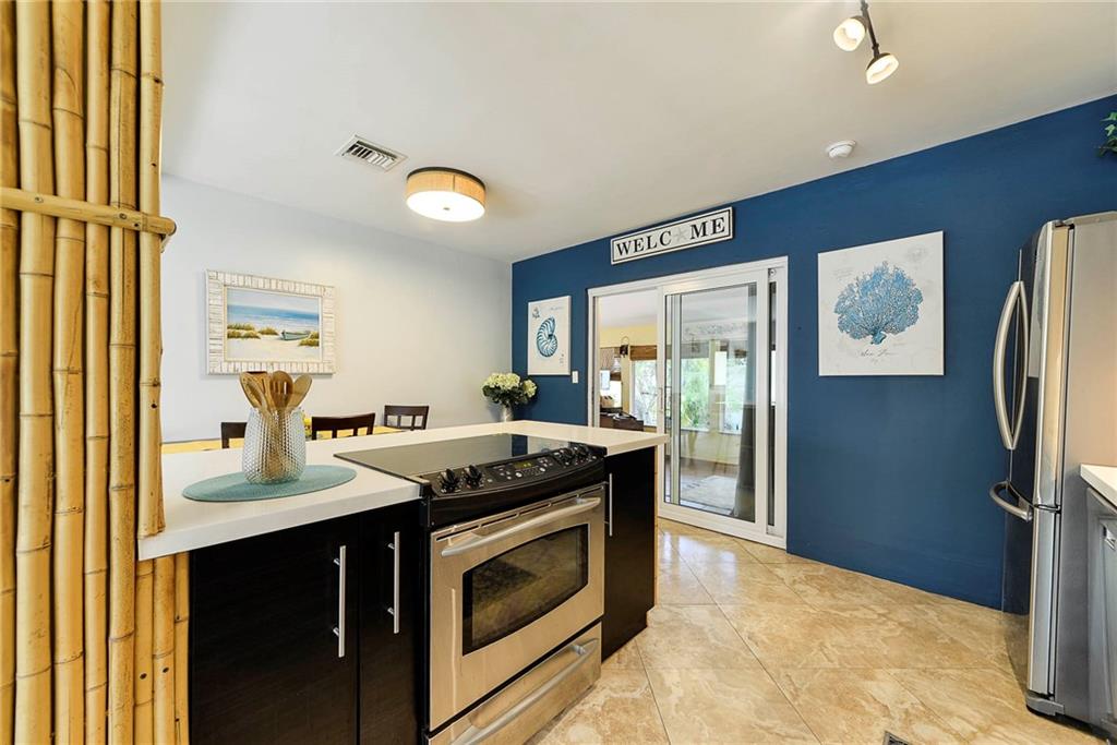 Tropical paradise home! Makes you feel like you are on vacation everyday! Live the Florida lifestyle with this remodeled home. Located on a corner lot, this property boasts of lush landscaping and many fruit trees and exotic plants. Kitchen has modern black cabinetry, stainless steel appliance package, and quartz counters, along with a large center island. Tiled throughout and has full impact windows and doors for protection. The piping under the home has been replaced with PVC pipe. So many extras: gas tankless water heater, gas dryer, custom closets, water filtration throughout the home. The yard is so inviting---a 10x15 Tiki hut sits amid a 20x 20 stamped concrete patio, with outdoor lighting. The yard is fully fenced and has a 10 x 10 hurricane approved shed, electric ready.