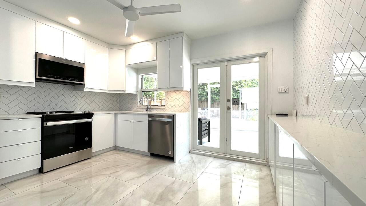 Completely Renovated, Stylish Pool Home is on a large fenced lot. Enter Hurricane French Doors, to Main Living area w/Large Tile Floors, enjoy the Sleek Kitchen w/High Gloss White cabinetry w/ Deco countertops, Stainless Steel Appliances & waterfall edge. Then Walk out to the large Screen enclosed Patio & large private fence backyard w/pool. Home boosts 3 Bed / 2 Full baths. Main bath has Walk in Glass enclosed shower with stylish finishes & vanity. Home includes Impact Hurricane Windows & French Doors. Carport has Utility Storage Room with Laundry Hook Up and Tankless water Heater. City has just put in new Sewer and Drainage throughout the neighborhood. Located Central Lauderdale, just minutes to Airport & Downtown Fort Lauderdale.