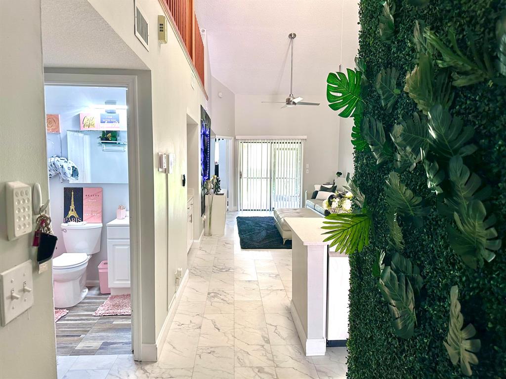 2/2 with a upstairs Loft that's conveniently located in a quiet neighborhood with open front porch as well as a screened in back porch. Excellent location, close to restaurants, entertainment & shopping. Elegantly furnished, updated bathrooms, and spacious master with Loft and More.