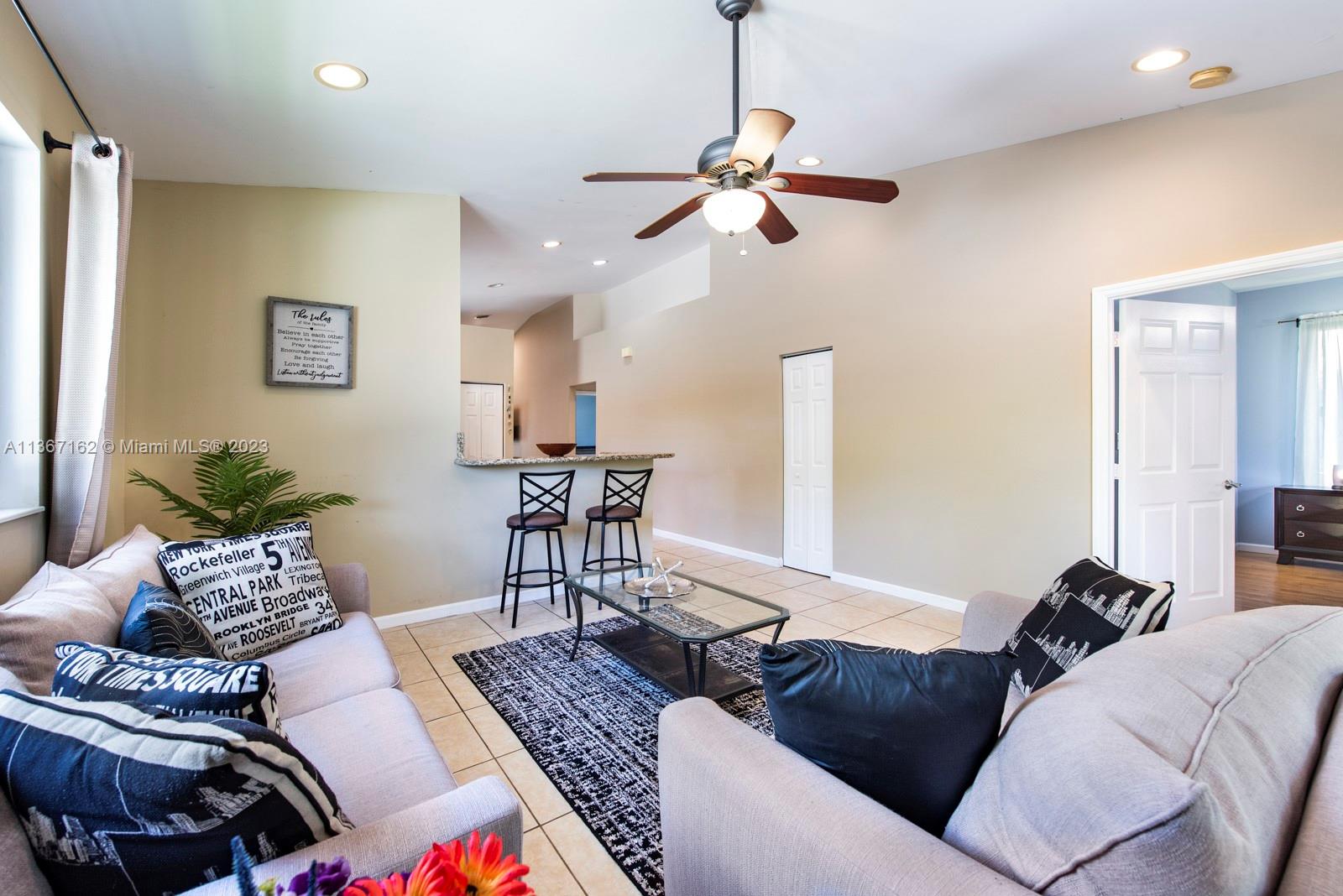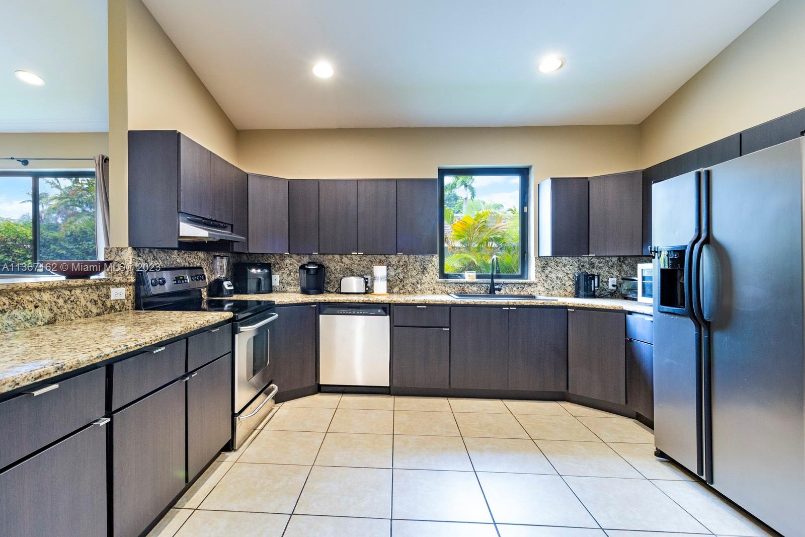 3 bed/2 full baths on a quiet no-through street in Miami Shores.Large kitchen with SS appliances & granite counter tops.Large bar/counter top for stools & entertaining. Formal living/dining room, big family room open to kitchen. High ceilings, separate laundry room, large master with his & hers walk in closets. Master bath has soaking tub/shower combo & dual sinks. Attached 1 car garage, covered patio, fenced backyard. Call us or text TGKFL at 59559 to schedule an appointment!