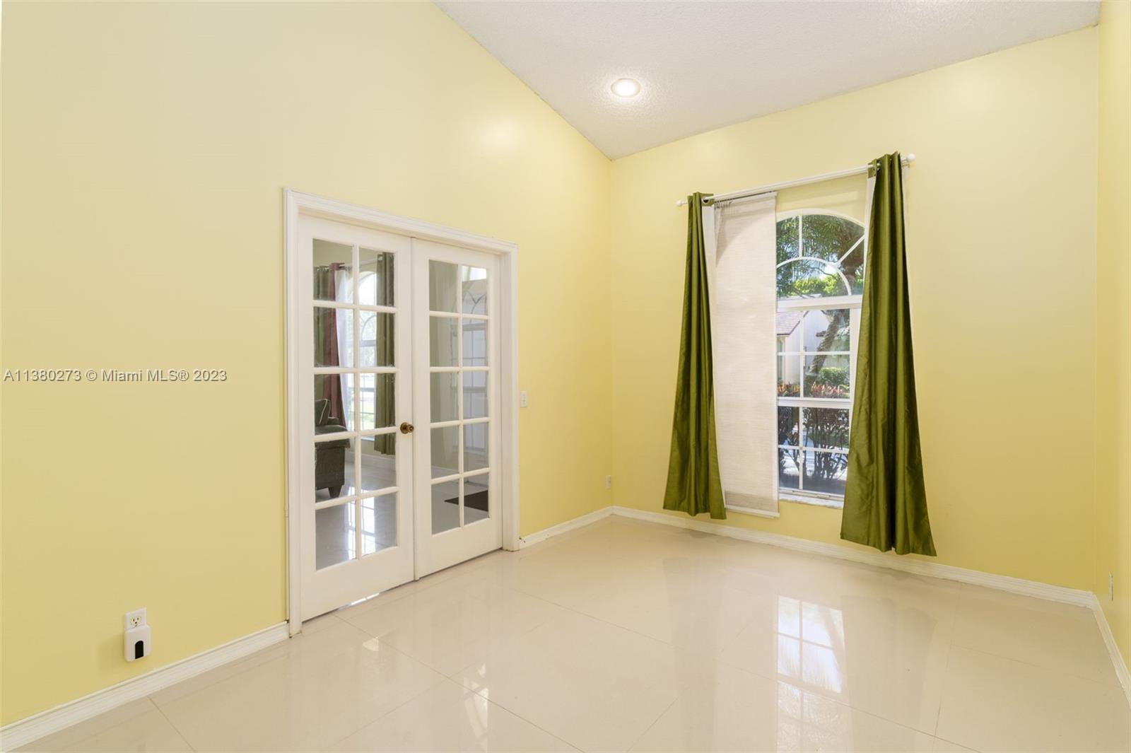 Well-maintained and Spacious home is an ideal choice for anyone. Boasts four bedrooms, 2.5 bathrooms with high ceilings, along with a generous living area that's perfect for hosting guests. Recently renovated kitchen features stainless steel appliances and includes an eat-in area, while an additional dining area and living room provide additional space for relaxation and entertainment. Master bedroom is massive, offering a large walk-in closet, two sinks with cabinet storage, and enclosed shower. Backyard overlooks a beautiful lake with a fountain and features a swing for ultimate relaxation. 2016 roof, accordion shutters, wiring for an alarm system, two car garage, parking for three cars in driveway. $100K+ in upgrades. Low HOA, Close to Shopping Centers, Top-rated schools nearby.