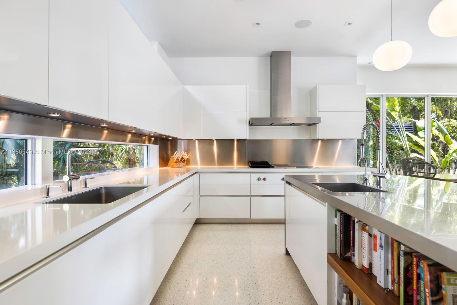 Captivating, Modern home on a corner lot in the exclusive island of Key Biscayne. Acclaimed design team: Bruno Elias Ramos(Architect), Robert Rionda(Interiors) & Michael Thiel(Landscape Design). Dramatic, light-filled living spaces feature double-height ceilings, terrazzo floors, smart home technology, surround sound system and exquisite custom details throughout. Stunning kitchen w/ high-gloss Italian cabinetry, quartz & stainless-steel countertops + Sub-Zero/Gaggenau appliances. Incredible primary suite offers sitting area, private balcony & spa-like bath. Solar panels lower electric bill by 50%. Enjoy views of the Miami skyline from the roof-top terrace w/ enclosed office area and a playroom. Ultra-private, landscaped garden, covered terrace, summer kitchen & heated infinity pool & spa.