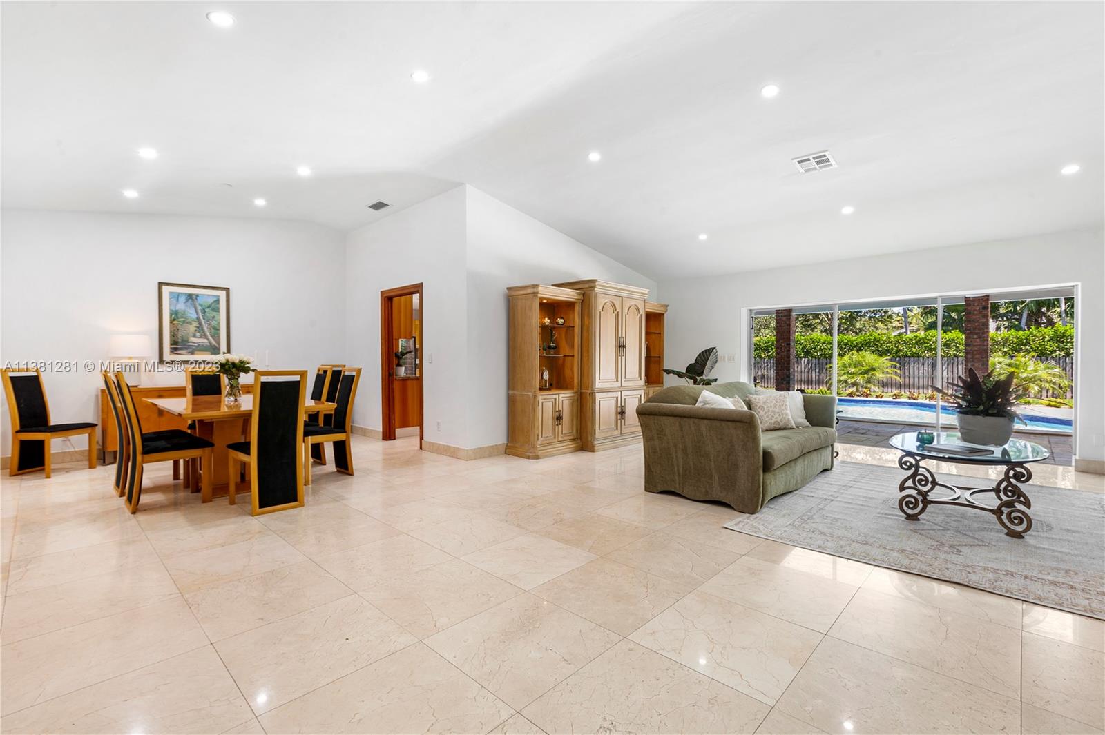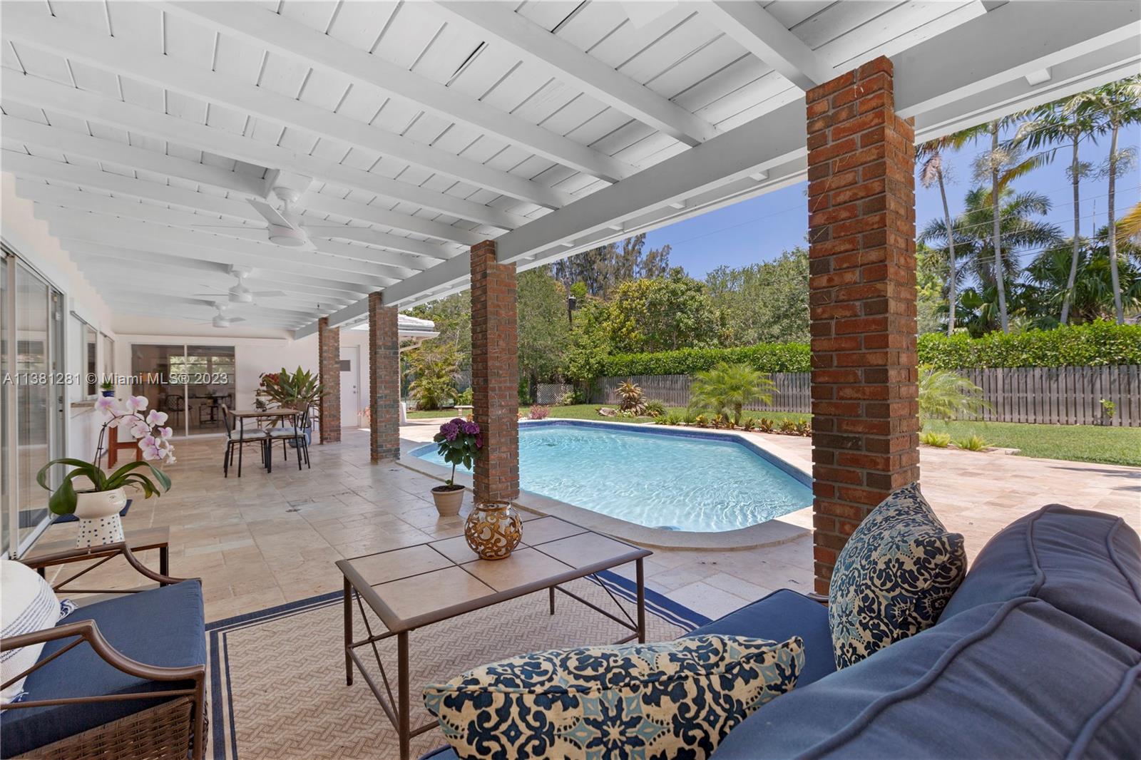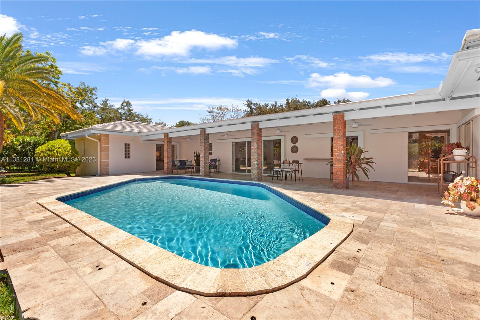 A wonderful Pinecrest home with a timeless floor plan. This one-story residence features high ceilings in living areas, 5 bedrooms/3 baths, an inviting open pool with a large entertaining terrace, eat-in kitchen, laundry room, side-entry 2-car garage w/plenty of loft storage, a circular driveway on nearly a half-acre lot with a private, fenced backyard. Personalize with some modern updates for a superb investment and a wonderful home to proudly own! Located on a quiet tree-lined street surrounded by higher valued homes. Top-rated schools & parks nearby. A pleasure to show & easy appts. Call today!