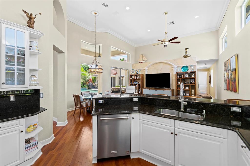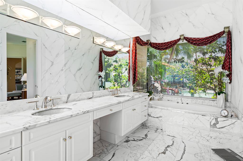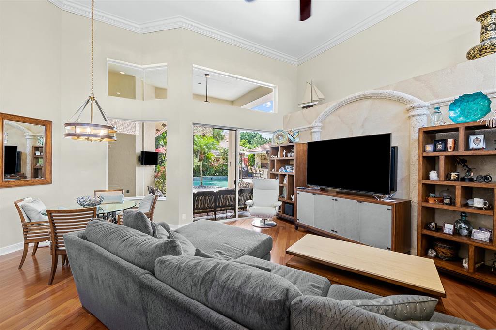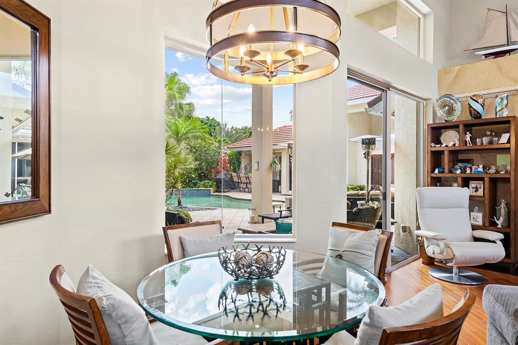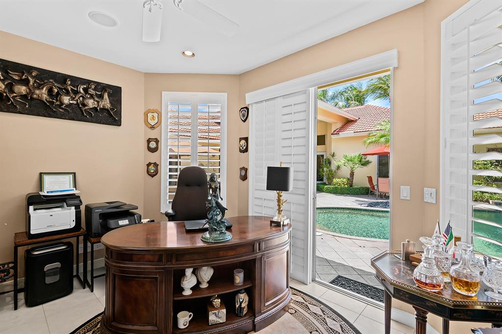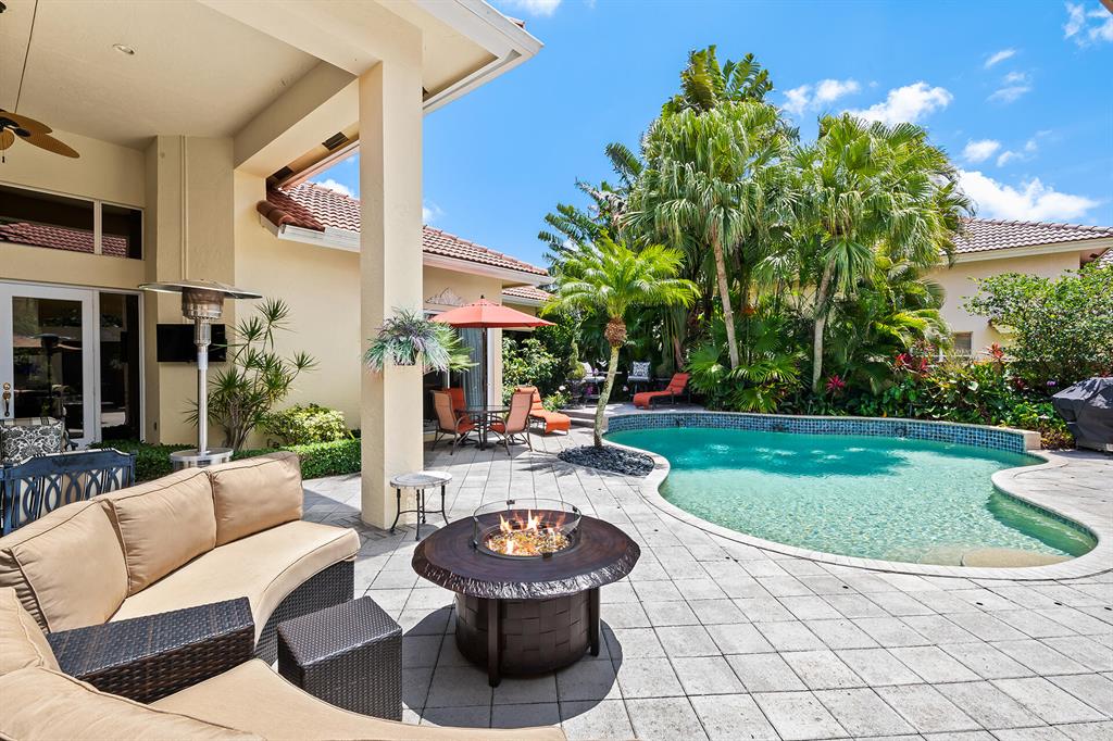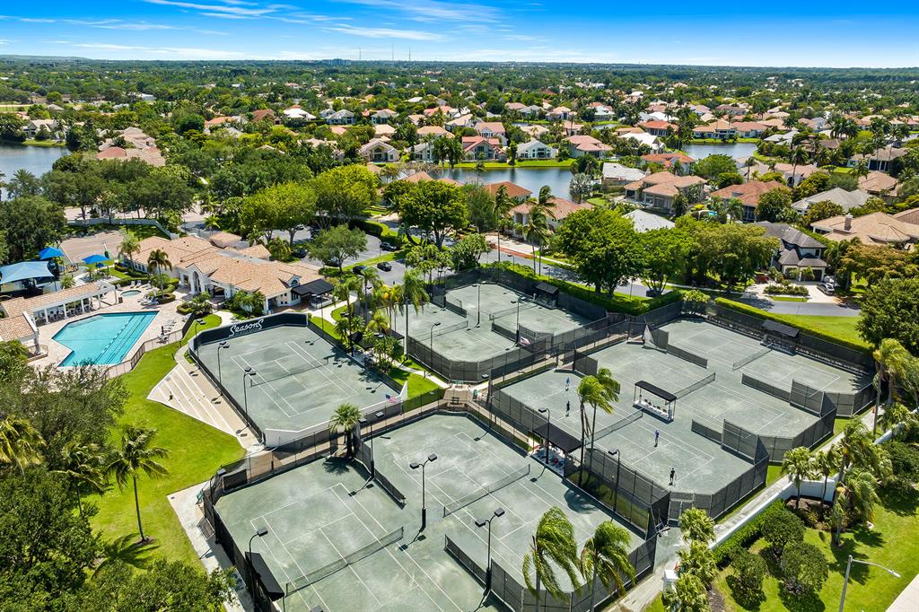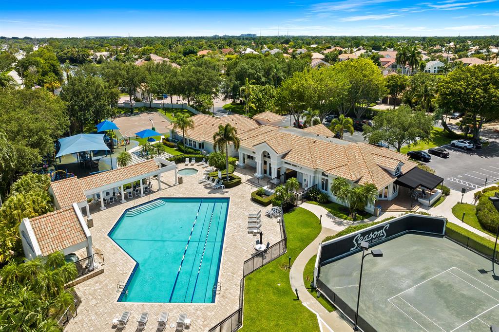 Amazing home with huge spectacular courtyard featuring a heated pool and spa and lush tropical landscaping. Serene lake views from formal dining room, living room and primary suite. Great floor plan with four bedrooms plus office in the main house and a detached guesthouse with full bath. Chef's kitchen with newer stainless steel appliances, white cabinets and black granite counter tops. Wood flooring and crown moldings throughout living areas. Partial impact windows and accordion shutters. Roof replaced in 2016. Great gated family community close to ''A'' rated schools- this home is walkable to the Seasons clubhouse with active tennis program, fitness center, heated community pool, playground, basketball. A perfect central Boca Raton location!