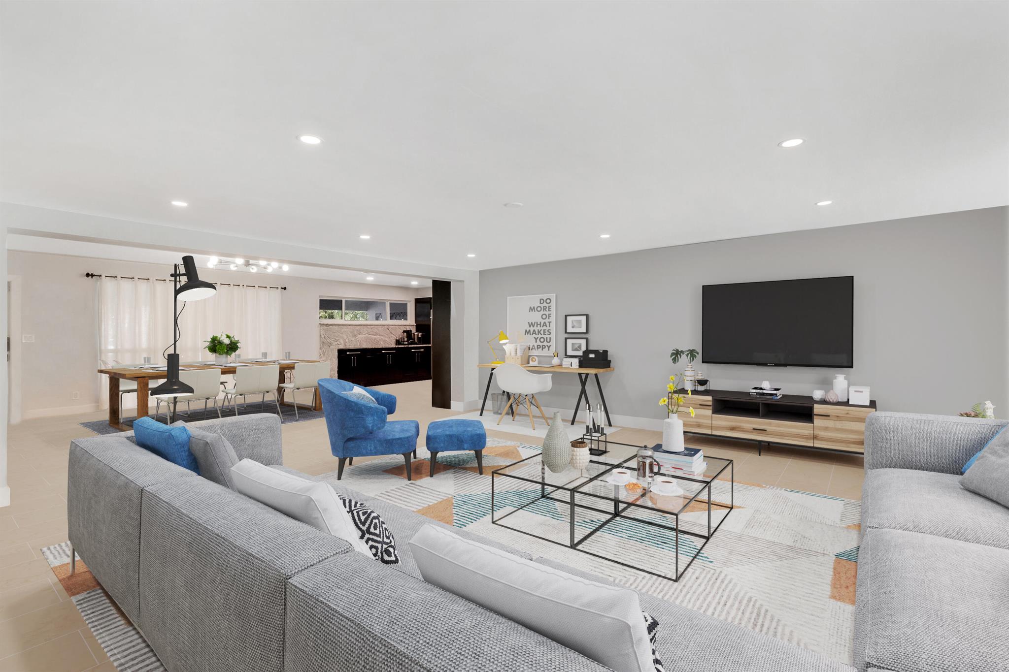 ROOF 2015/AC 2019. ROOM FOR 15X24 POOL. (3 photos digitally staged). THIS Gorgeous FOUR BEDROOM is what you have been waiting for! All the work has been done by PROFESSIONAL DECORATORS WITH PERMITS and DESIGNER FINISHES. Continuous flooring: NO STEP DOWN. IMPACT WINDOWS. Circle Drive, EXTRA PARKING. Beautiful landscaping draws your eye up the brick walkway to the COVERED PORCH w/chairs and flower boxes. STEP INSIDE TO THE HUGE, OPEN CONCEPT FLOOR PLAN ! The DINING ROOM TABLE is already SET TO SEAT 12 but you have more room for all of the friends and family you want to invite :) EXTRA LARGE GREAT ROOM provides for large gatherings, warm colors and decor. The TV CAN BE AS LARGE AS YOU WANT: theater-feel viewing for movies and for sports you will