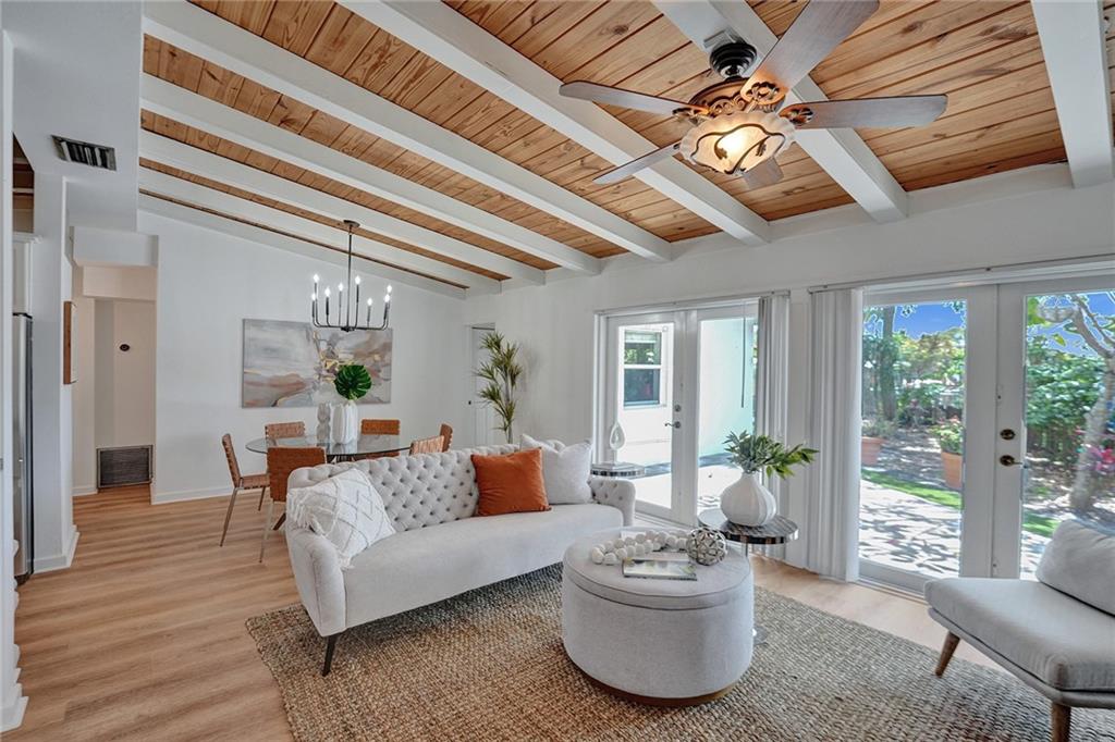 Mid Century 2 Bed 2 Bath Waterfront Home in Sought After Shady Banks. Long Tranquil Water views down the Canal to the New River. Open Floor Plan, Vaulted Exposed Beam Ceilings. Freshly Painted Inside & Out. Large Primary Bedroom with Walk in Closet, Bath w/ Spa Tub, Separate Shower. 21 ft Dock, No Fixed Bridges, Ocean Access. Beautiful Mature Oak Tree, Impact Windows/Doors. French Doors provide Natural Light & Water Views from Living & Primary Bedroom. Enjoy Water Views while having your Morning Coffee & Afternoon Cocktails on the Patio Swings. Stamped Concrete Drive w/ Plenty of Parking & 1 Car Garage w/Separate Utility/Laundry Room. Down the street from 6 Acre Hortt Park w/ Tennis, Volleyball Walking Paths. Secluded Neighborhood Surrounded by the New River with One Way In/Out. A Must See