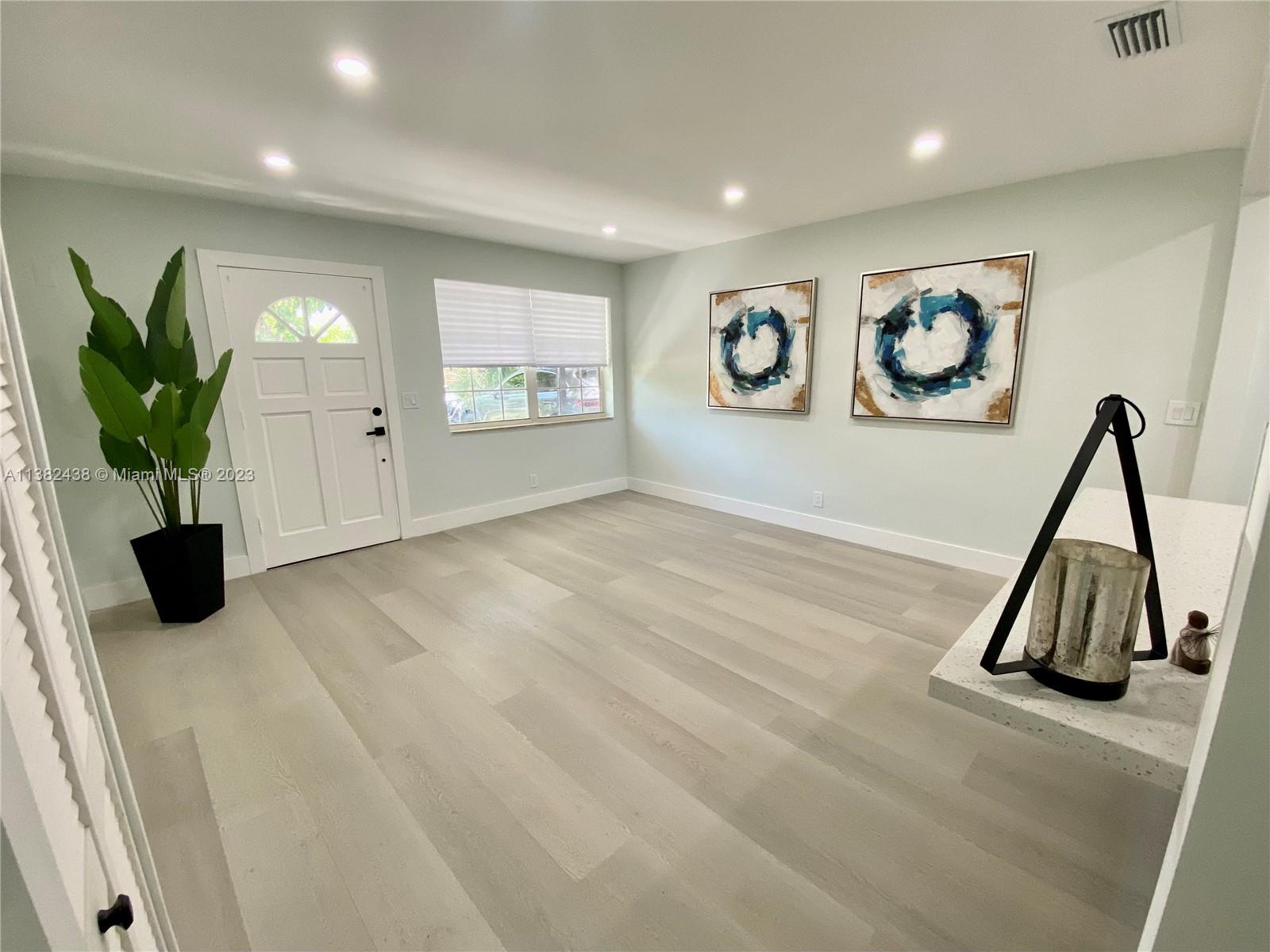 Welcome Home! Stunning 3 beds 2 baths, 1250 Sqft. One-story house. Open concept with great natural light, a huge fully fenced back yard with enough space for a swimmig pool. Modern style kitchen with quartz counter tops, Top-Of-The-Line SS Samsung appliances, touchless faucet and oversized modern sink. Water efficient bathroom in beautiful porcelain tile, the house is energy efficient with LED lightin, tankless water heater and a set W/D. Great location! close to The famous Hard Rock Casino-hotel, Close to I-95 .NO Rental Restrictions and No HOA!!