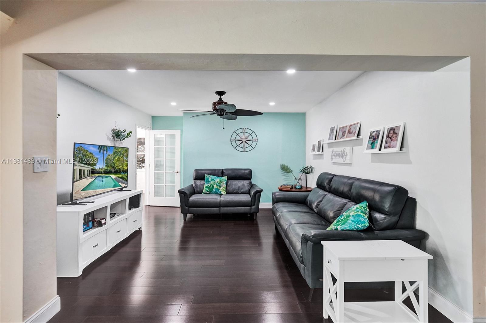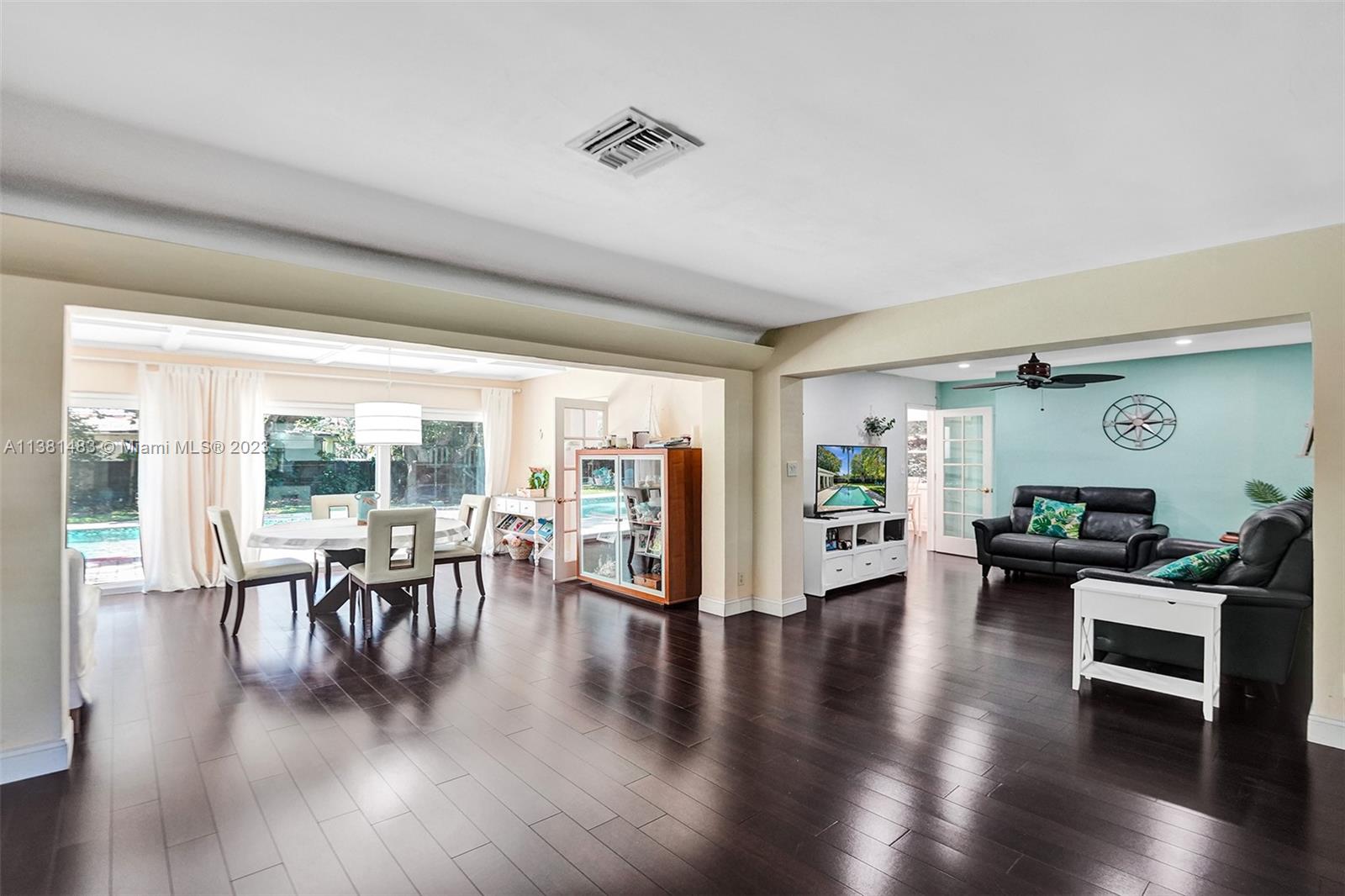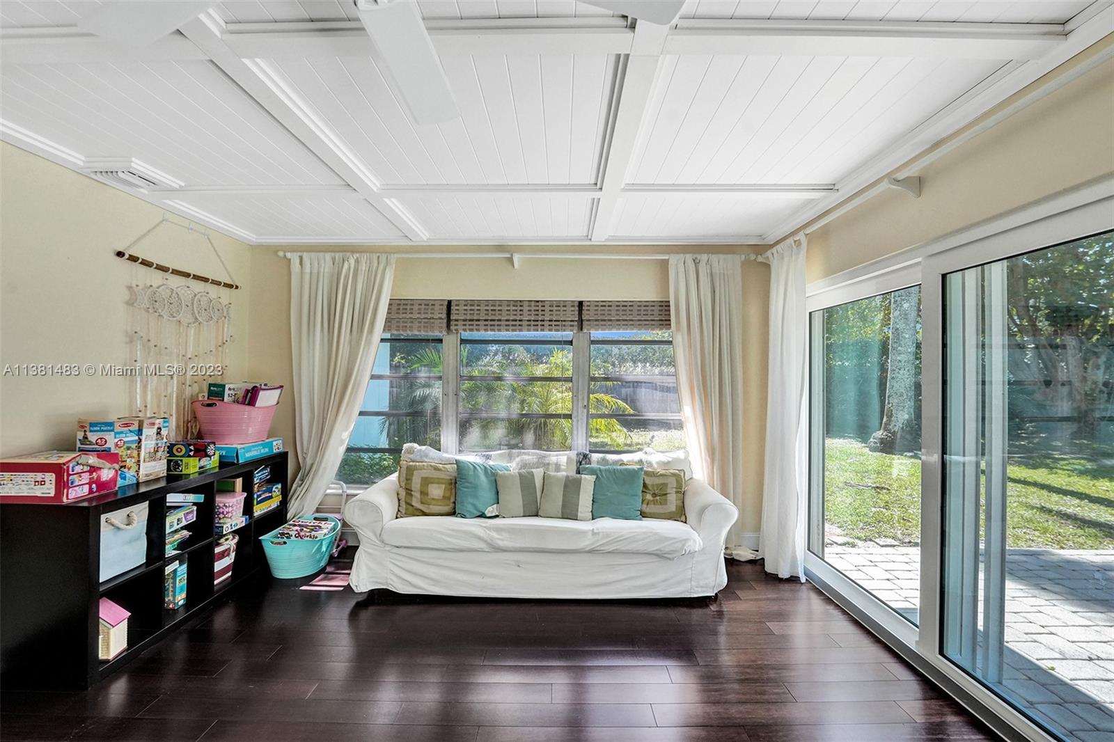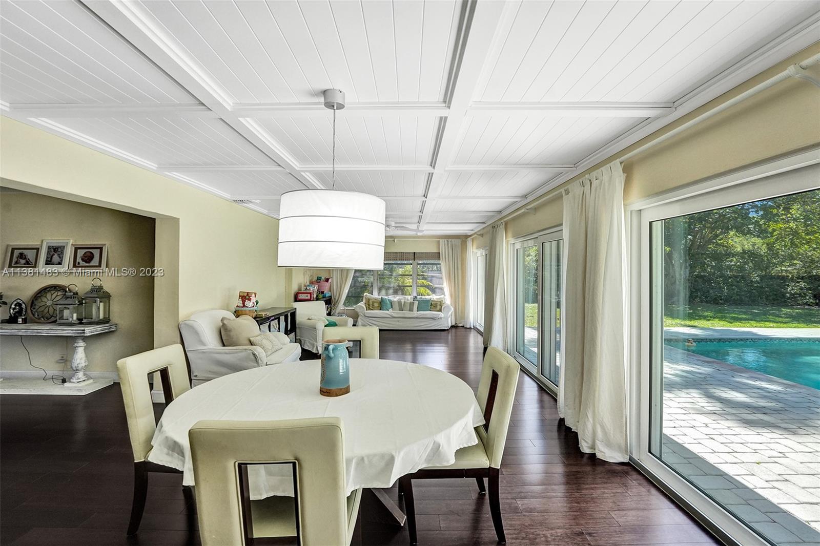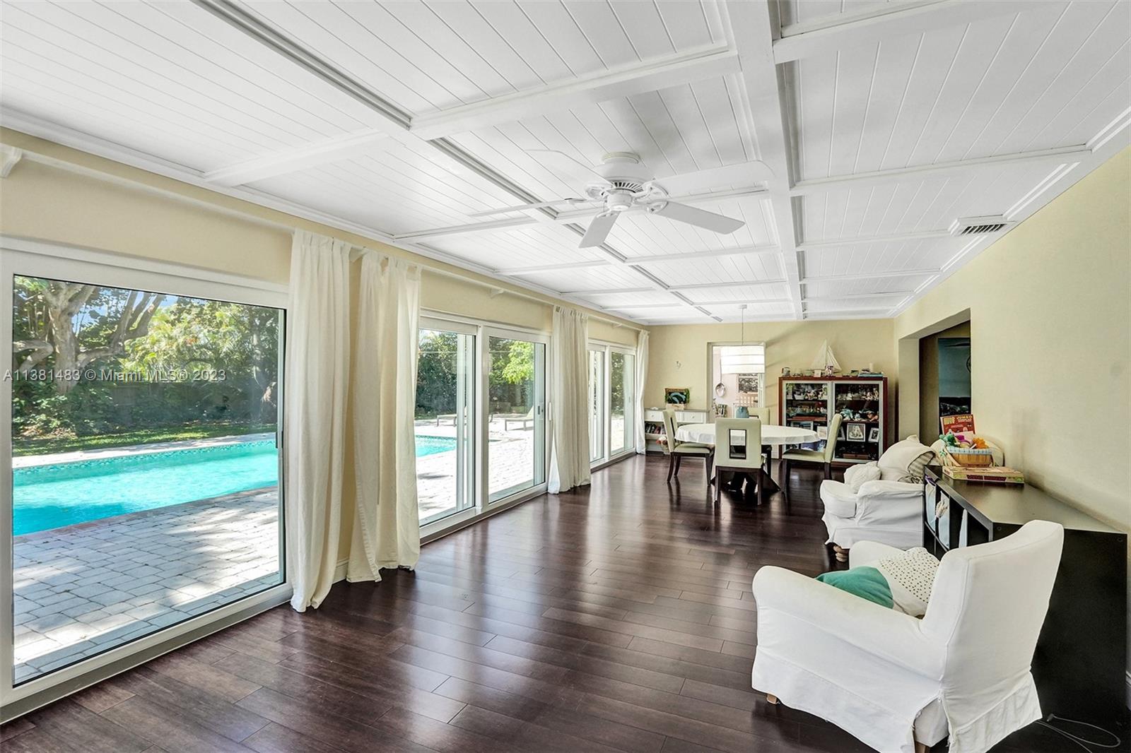 Spacious 3/2 home w/office or 4th bedroom presents spacious floor plan over 2700 total sf*All living areas open to beautiful views of huge pool & expansive paver patio, fire pit area, tree house w/ swings & plenty of green space*3 oversized impact glass doors across entire rear of home provide plenty of light & lead to 16,481 sf yard*Interior offers eat in kitchen, TV rm, living rm, family rm, office/bdrm, & laundry & storage rm w/generous pantry*Engineered wood flooring creates a seamless flow thru-out*2 car garage, tankless water heater, reverse osmosis water system, & roll down storm shutters*Situated on .38 acre oversized corner lot w/fenced yard & lots of trees provide plenty of shade & mangoes*Walk to Fig Tree & Heritage Park*Easy access to highways, shopping, schools & entertainment