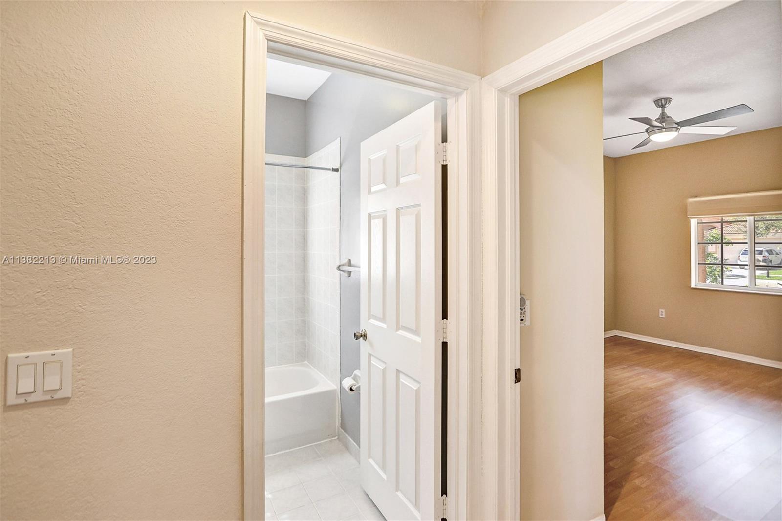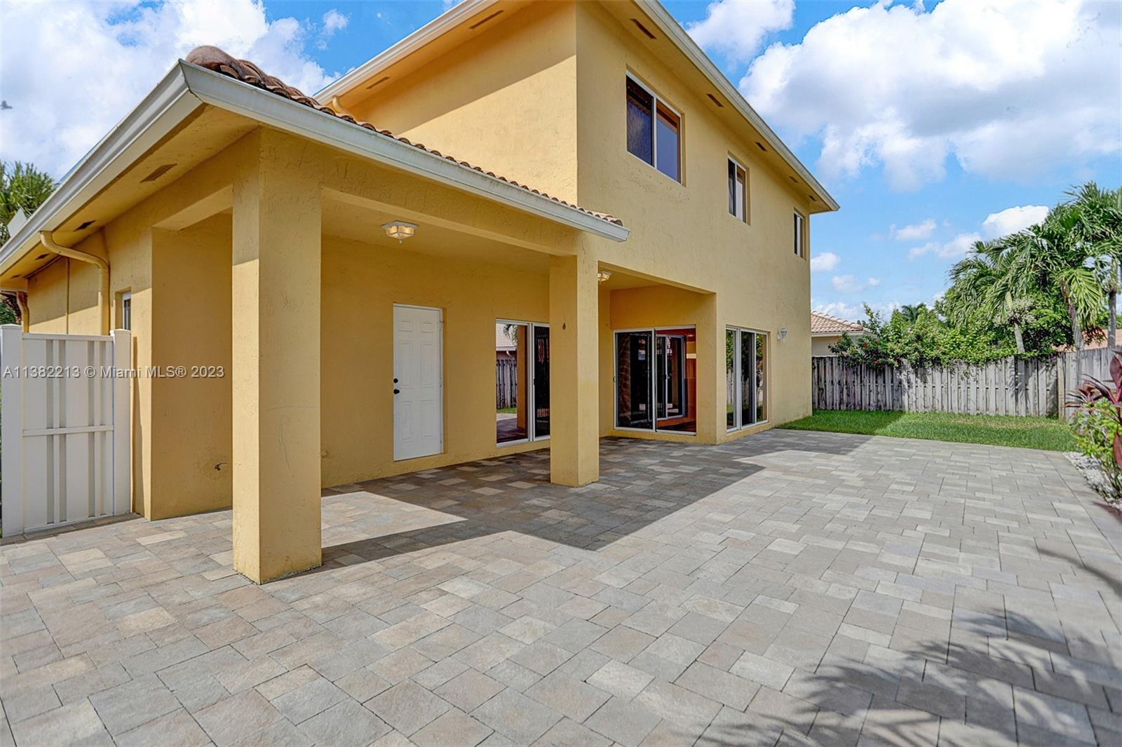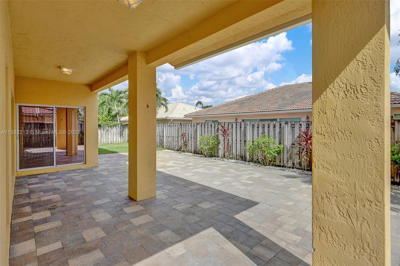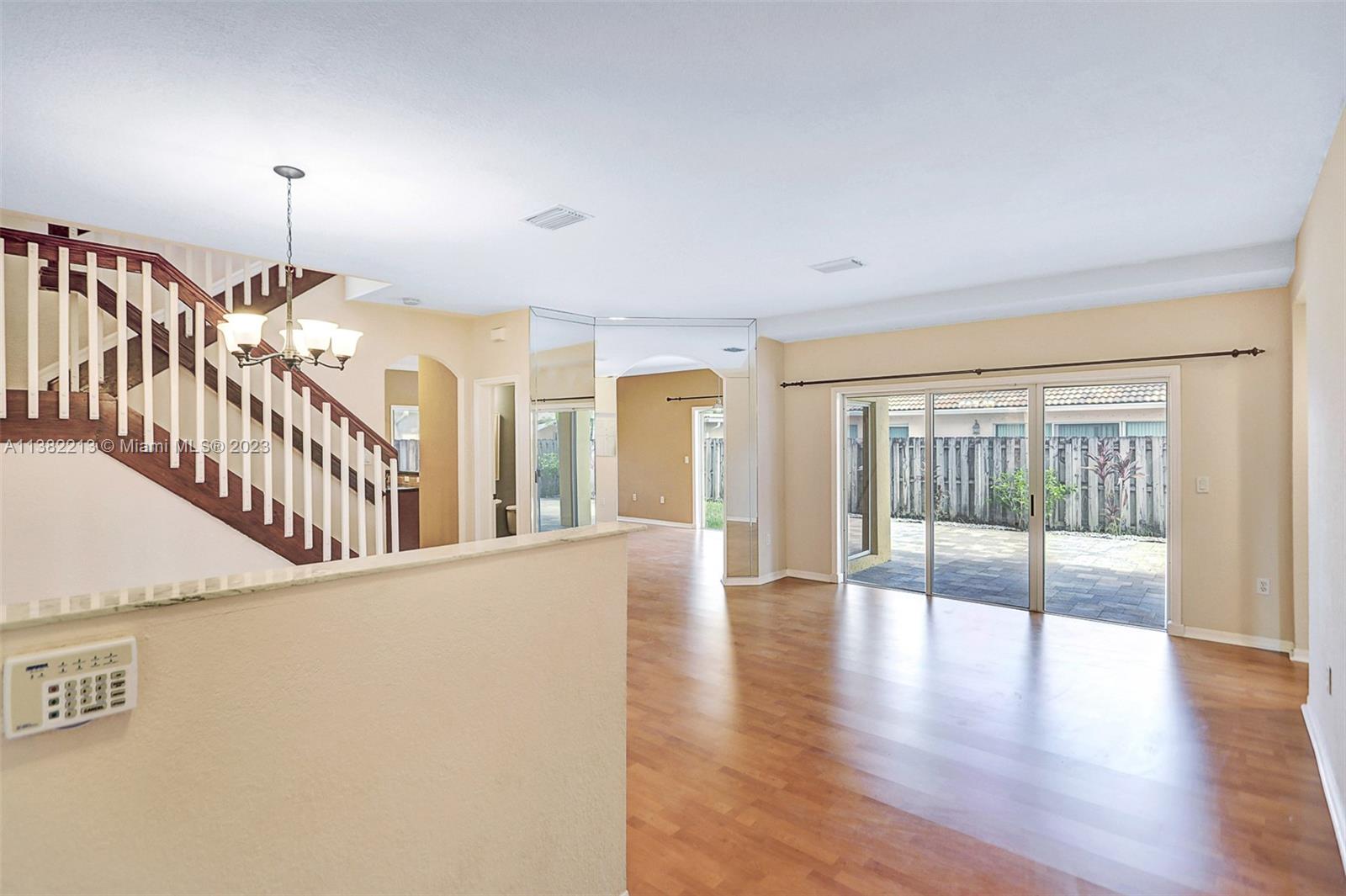 Beautiful home boasting all solid flooring throughout, a convenient downstairs bedroom & full bath, updated kitchen with wood cabinetry, stainless steel appliance package & stone counters. Windows feature energy efficient tint, new "on-demand" water heater. Very private, fully fenced and easy to keep patio with stone pavers. This home is equipped with hurricane protection and is located on a quiet & off the beaten path street, in the Bonaventure area's newest built development with two parks, tennis & basketball courts nearby, minimal HOA dues paid yearly. The property is leased through June 30, 2023. *Select images are virtually enhanced to show proposed interior layout possibilities with furniture placement*