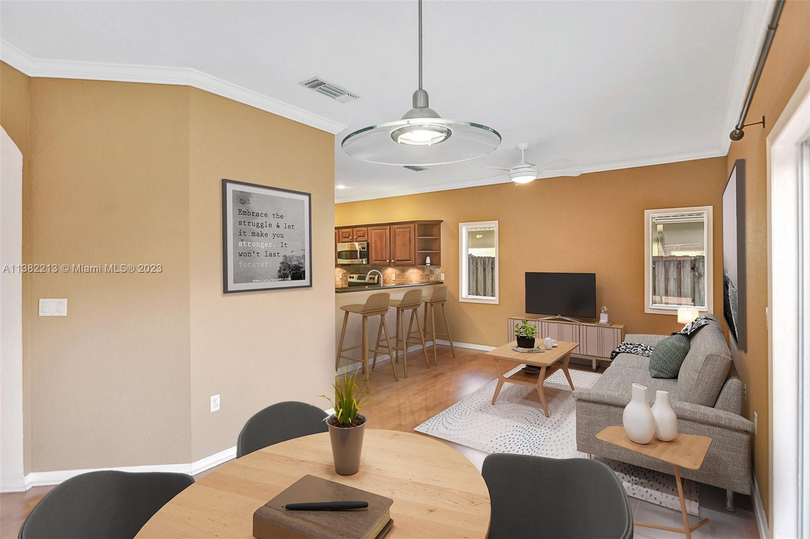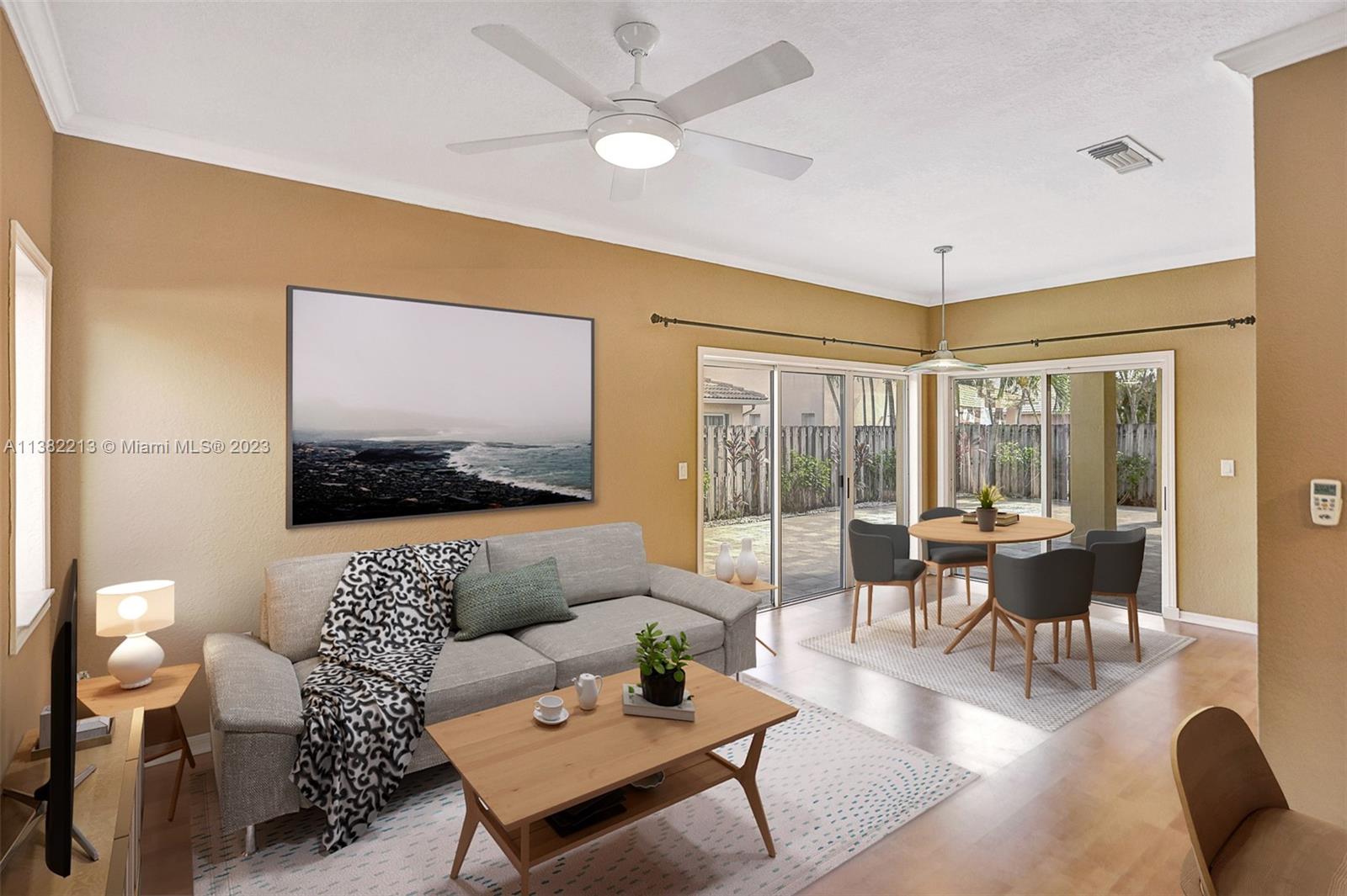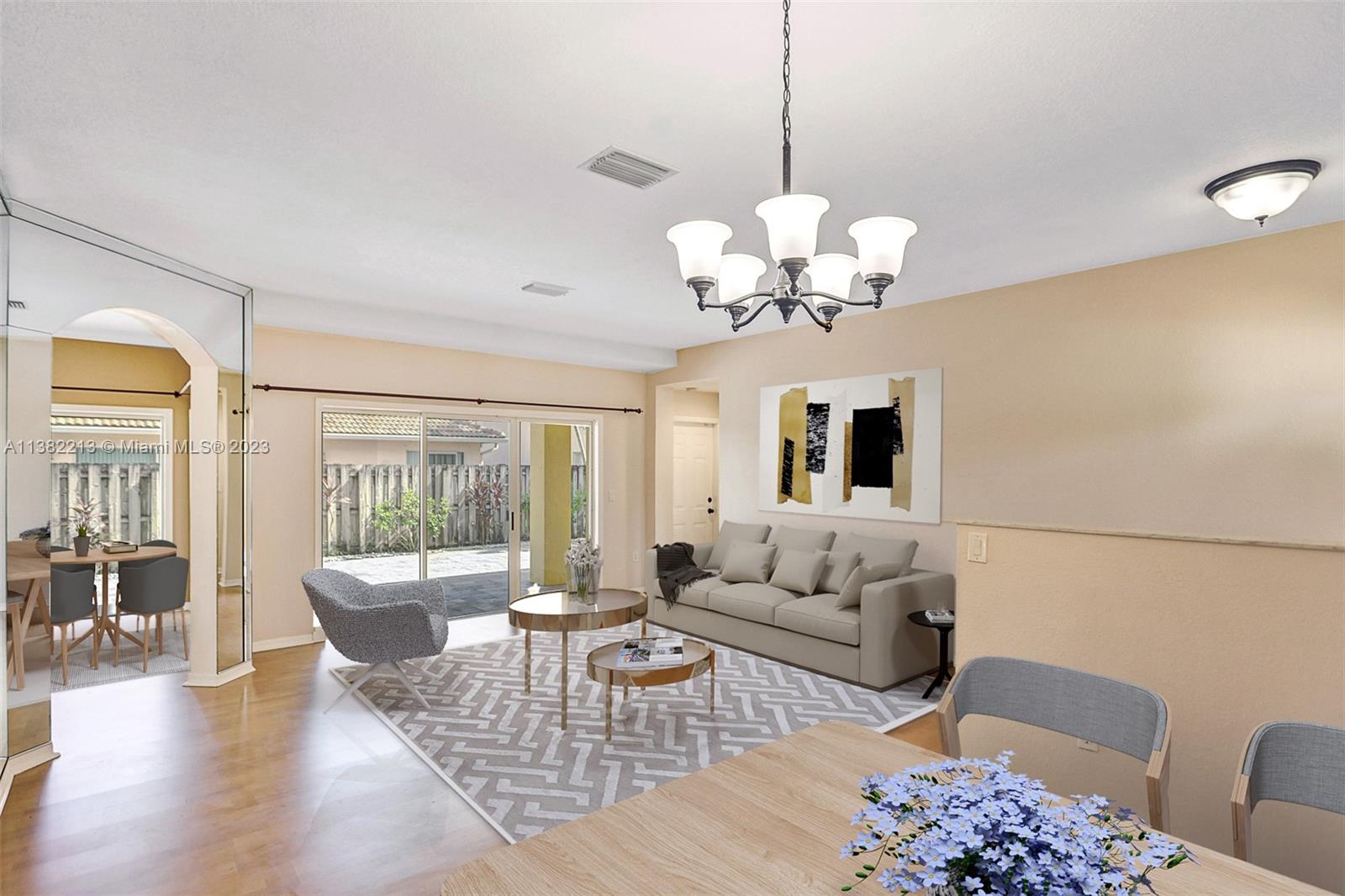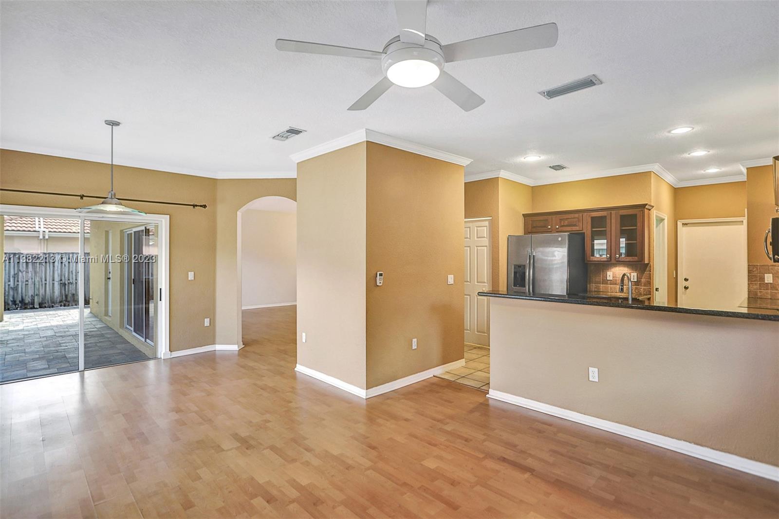 Beautiful home boasting all solid flooring throughout, a convenient downstairs bedroom & full bath, updated kitchen with wood cabinetry, stainless steel appliance package & stone counters. Windows feature energy efficient tint, new "on-demand" water heater. Very private, fully fenced and easy to keep patio with stone pavers. This home is equipped with hurricane protection and is located on a quiet & off the beaten path street, in the Bonaventure area's newest built development with two parks, tennis & basketball courts nearby, minimal HOA dues paid yearly. The property is leased through June 30, 2023. *Select images are virtually enhanced to show proposed interior layout possibilities with furniture placement*