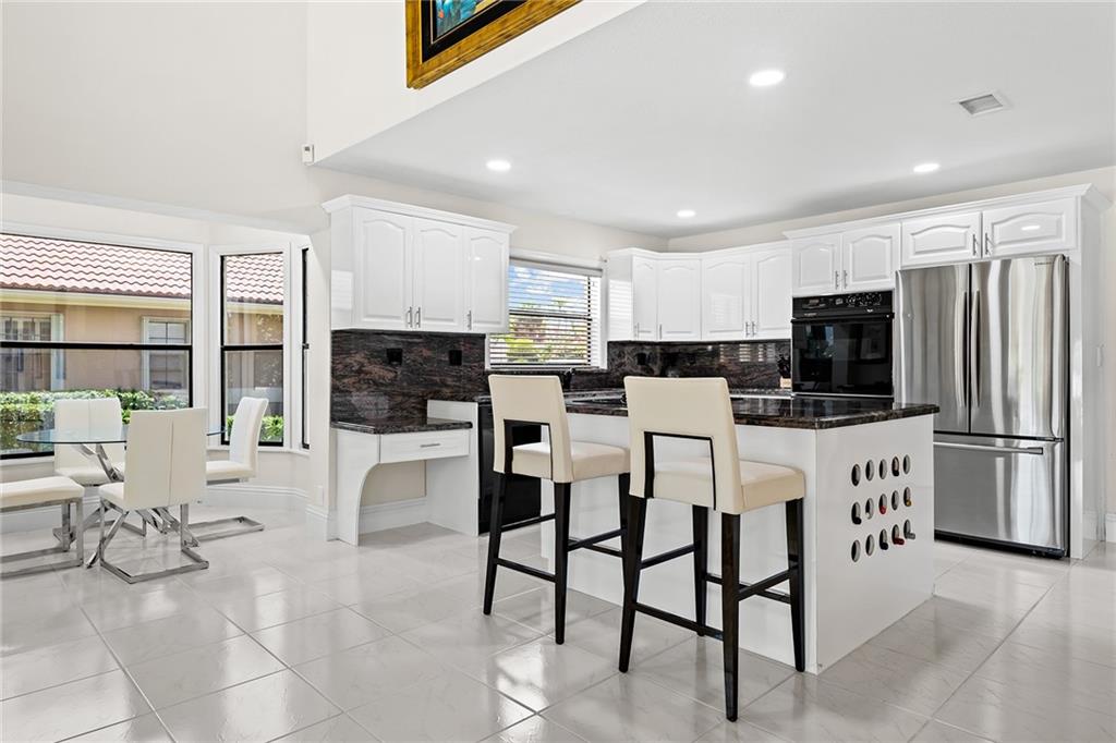 Located in sought after Boca Woods Country Club on highly desirable Old Bridge Trail. Exceptional home offers three bedrooms, plus an office, three and one half baths, two car plus golf cart garage. Property features an expansive open living area, kitchen with granite counter tops, island, counter seating, breakfast area, butlers pantry, dining room, fireplace, wet bar, cabana bath. Enjoy entertaining on the oversized patio with a pool/spa that over looks a spectacular lake and golf course view. Resort style living w/two 18 hole golf courses, tennis, pickelball, new state of the art fitness center, spa, game room, fine/casual dining & more! Mandatory membership $95,000 ($20,000 equity refundable when you sell home) paid to BWCC 10 days prior to closing. See attachments yearly dues and fees