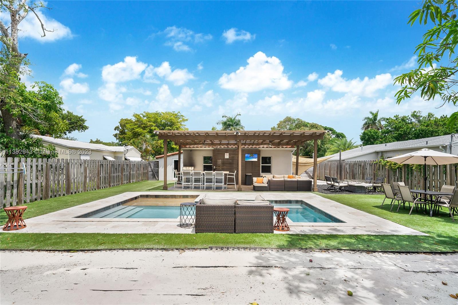 One-of-a-kind opportunity! Stunning 3/2 single family home in Croissant Park featuring the perfect outdoor space to entertain. The fully fenced yard provides privacy for the heated saltwater pool, the modern Pergola shelters a fully equipped summer kitchen with built in gas BBQ, ice maker, dining island & gas fire pit. Completed with a game and a and living room area, The spectacular indoor FEATURES & FINISHES includes Impact windows/doors, updated kitchen and baths, gas tankless H2O heater, 3 yrs AC w/ sanitizing UV light system, The entire home is under water filtration system, and features solar panels, as well as a large driveway to accommodate all guests. PRIME LOCATION in east Fort Lauderdale - minutes from airport, cruise port and the entertainment district.