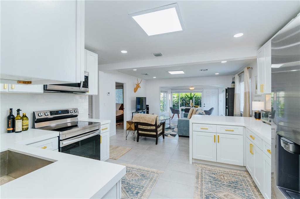 Take advantage of this completely updated less than 2 years ago! Charming 3 bedroom 2 bathroom corner home. Great location, walk to the Drive, and 13th st. Perfect layout for Airbnb with oversized primary suite set at back. All impact glass makes it very quiet, with updated plumbing, and 8 X 10 shed, set on a private and custom landscaped large lot! Beautiful bright interior, very comfortable.