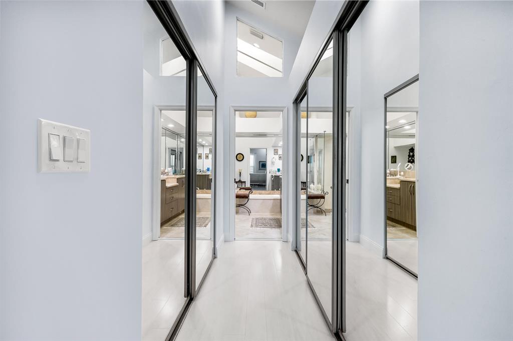 Introducing the Polo Club Hampton Court Community's stunningly renovated 3 bedroom, 3 full bath home spanning 2210 square feet and facing north. This exquisite property boasts a primary suite complete with two spacious walk-in closets, offering a breathtaking view of the surrounding golf course. Enjoy the beauty of soaring tray and vaulted ceilings with skylights that fill the space with natural light, creating a bright and airy ambiance. The property also features a 2-car garage for your convenience.